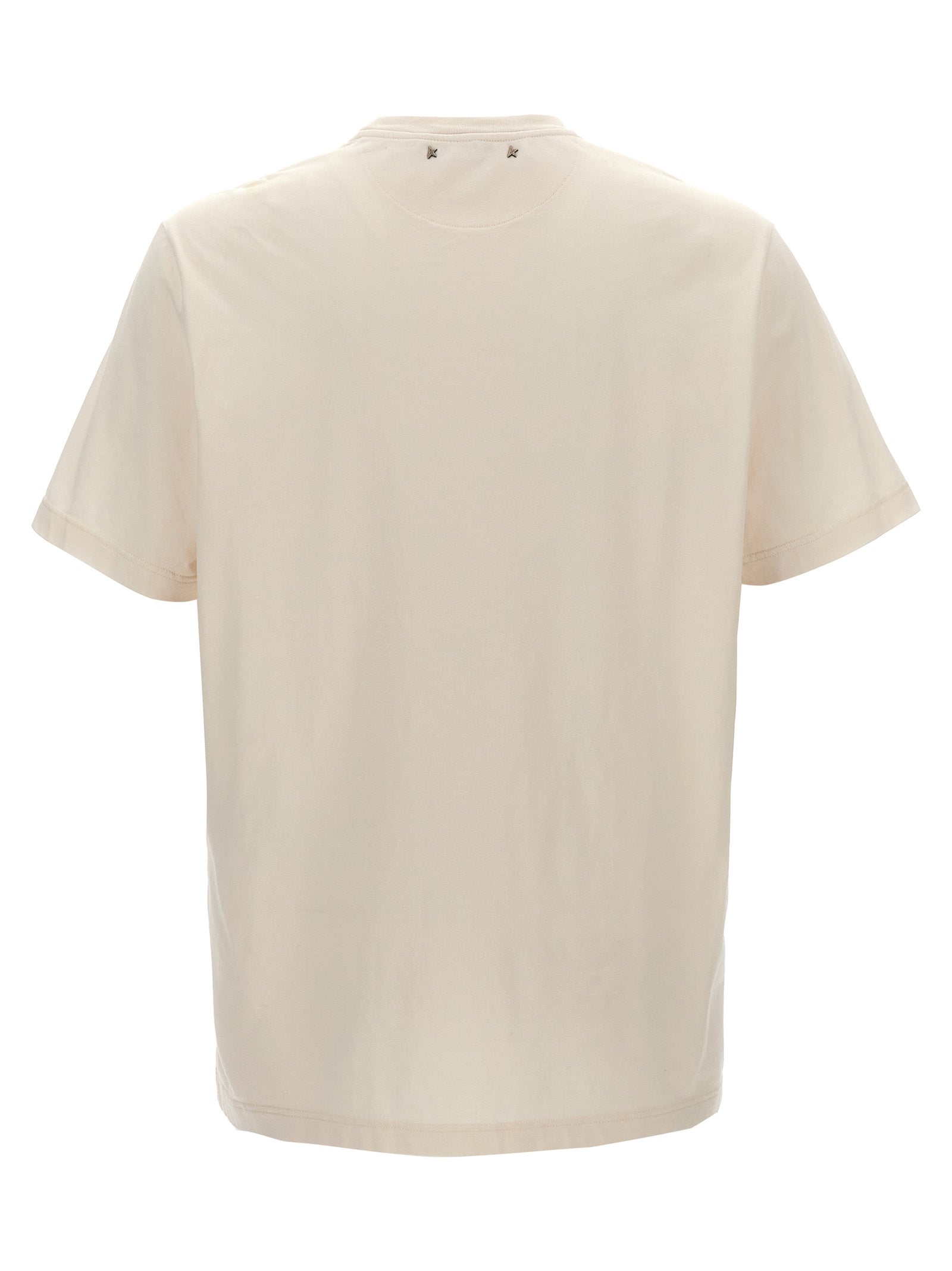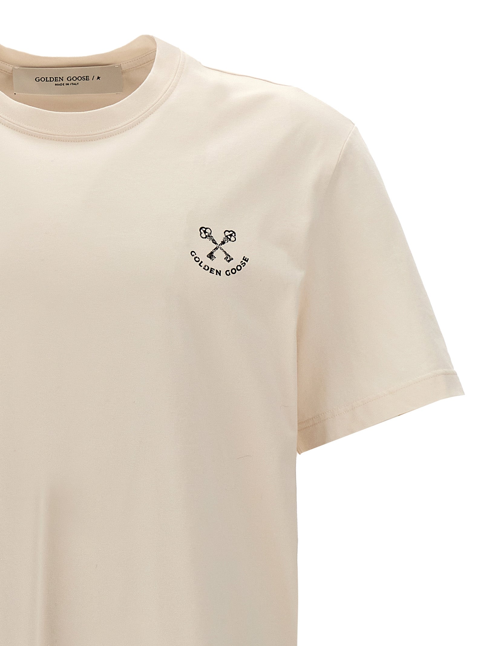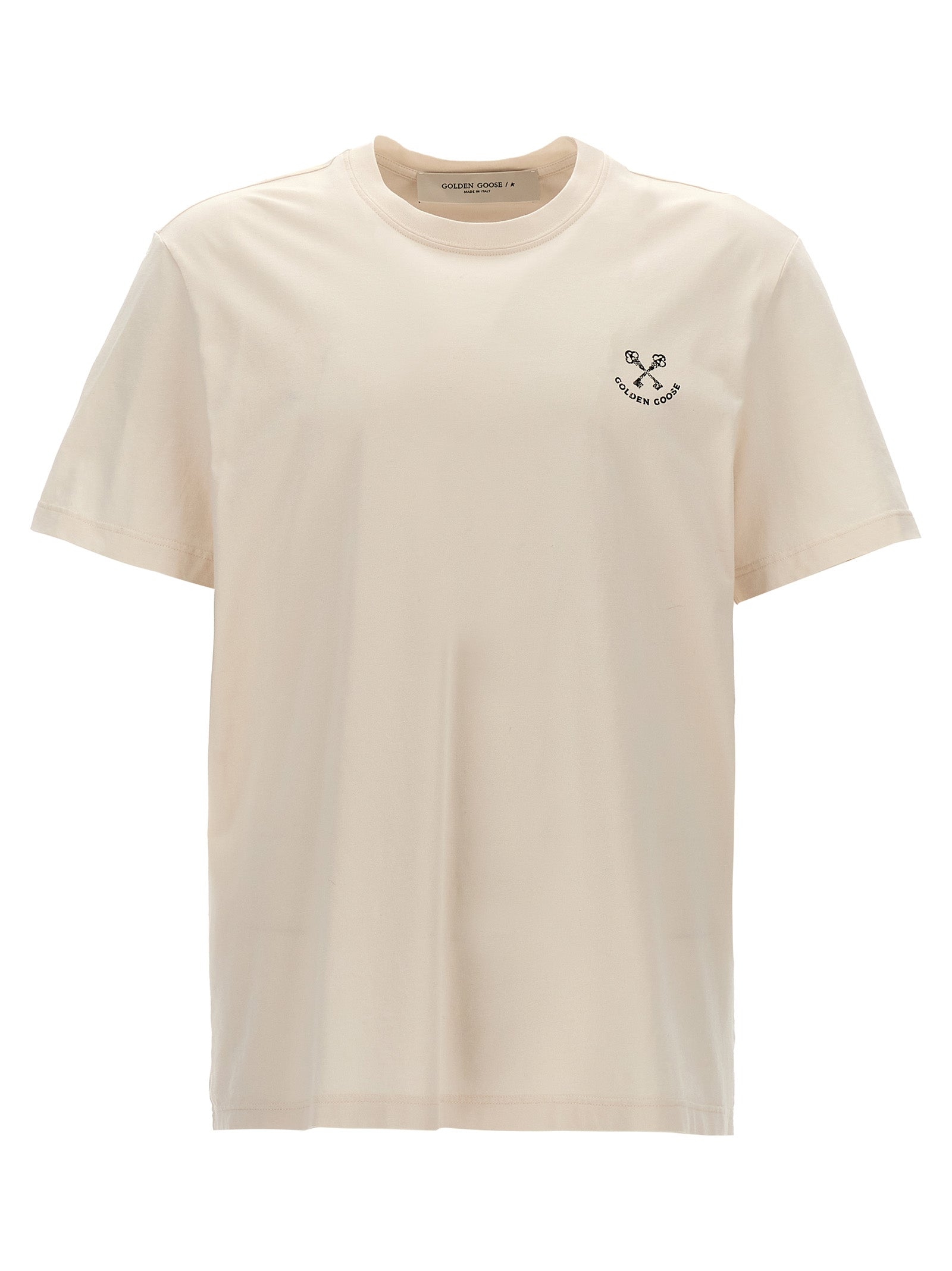 Camiseta de algodón con estampado del logotipo delantero, cuello de la tripulación, mangas cortas.