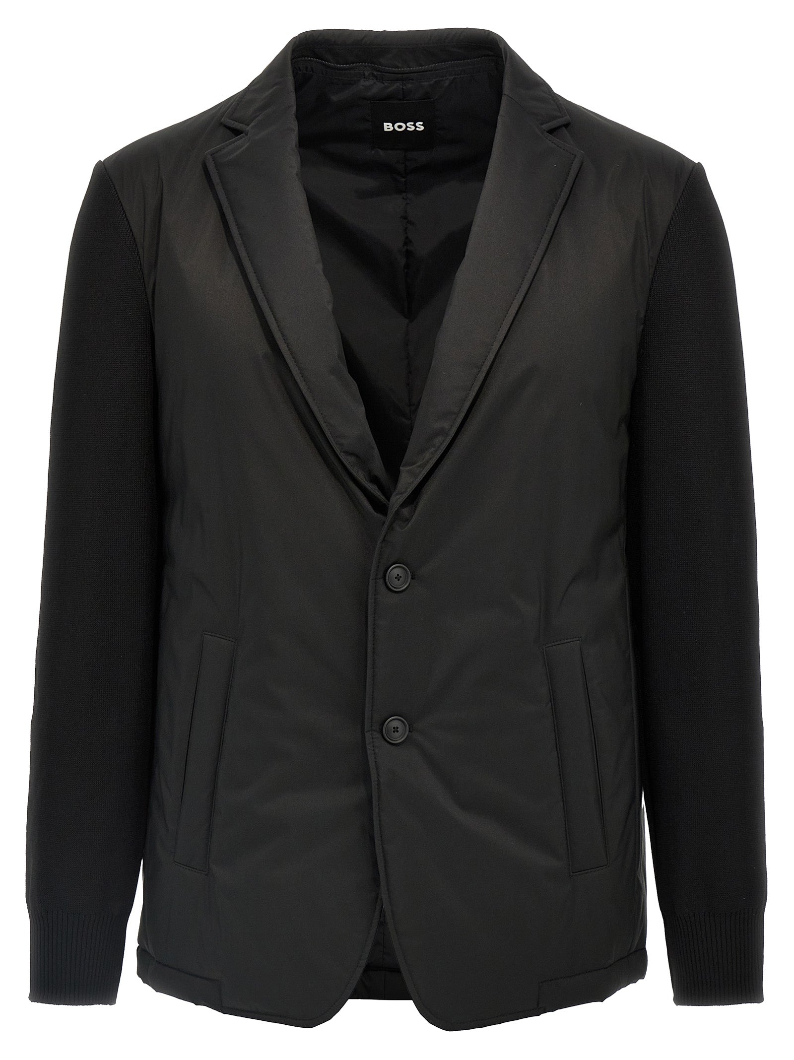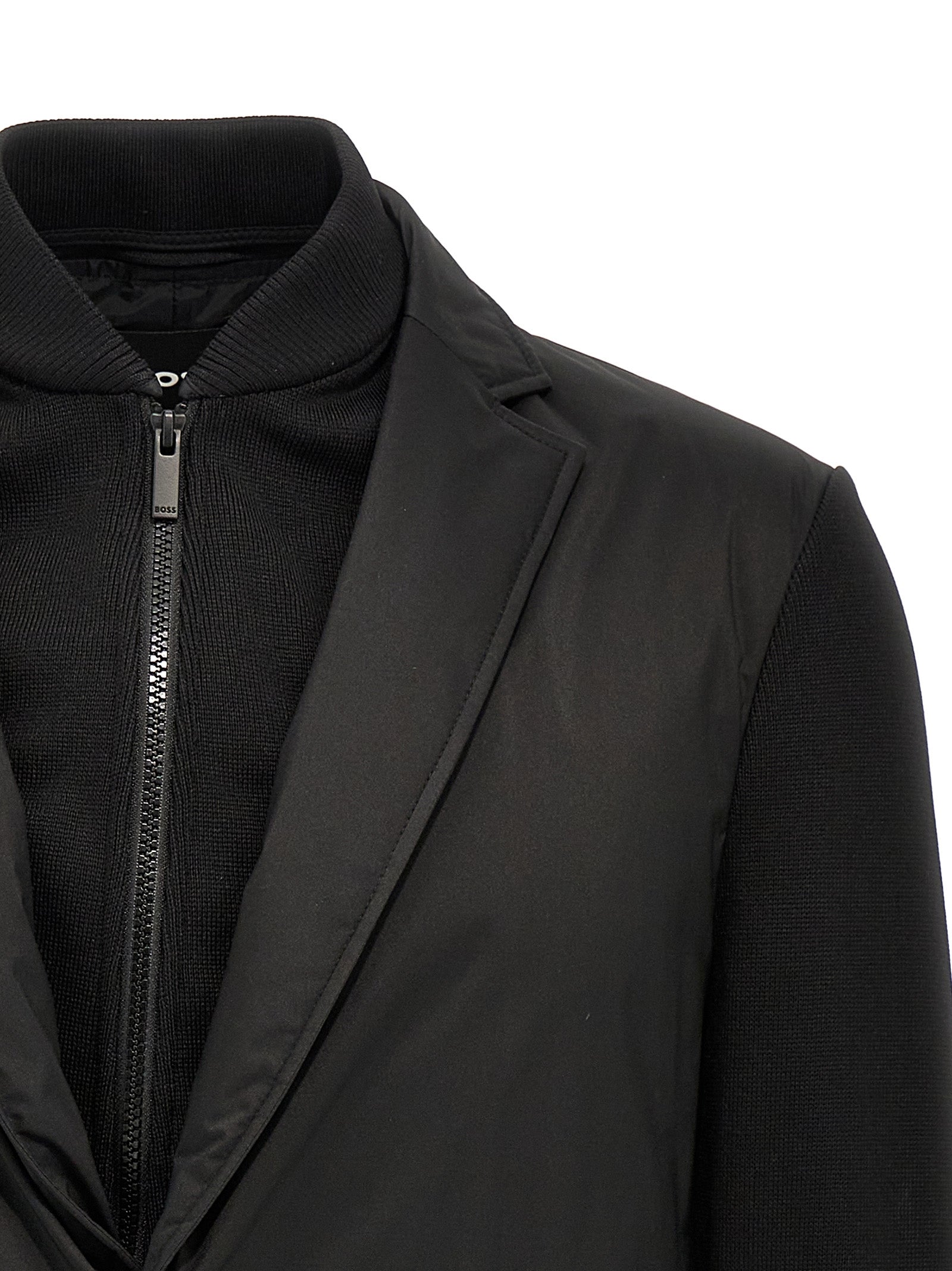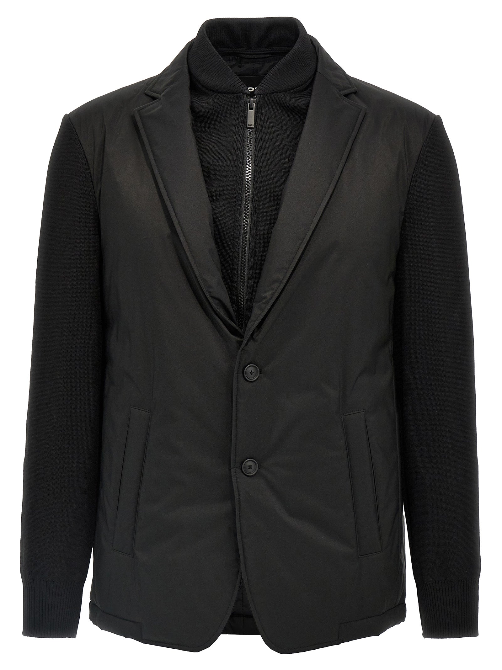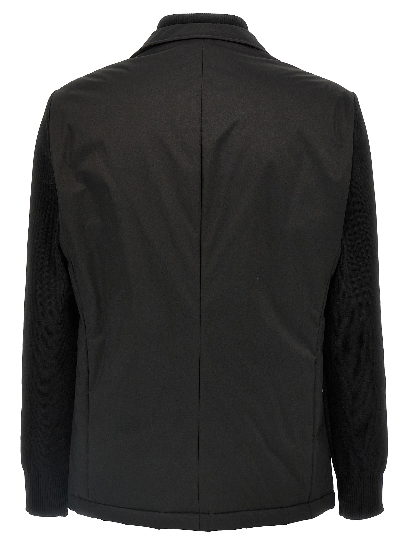 'Hanry Hybrid' single-breasted blazer in slightly padded technical fabric and jersey with removable zip front, button closure, mirror lapels, long cuffed sleeves, pockets.