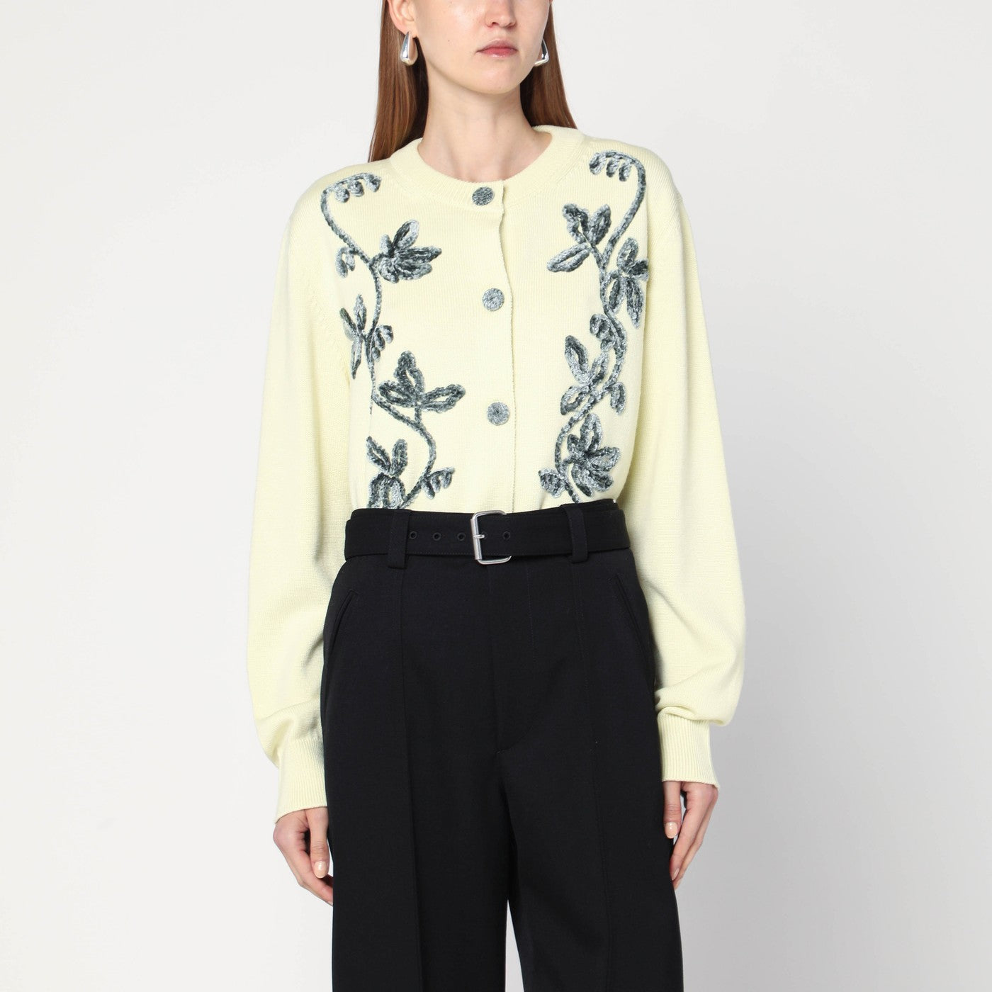 Jil Sander Cárdigan amarillo claro con bordado floral