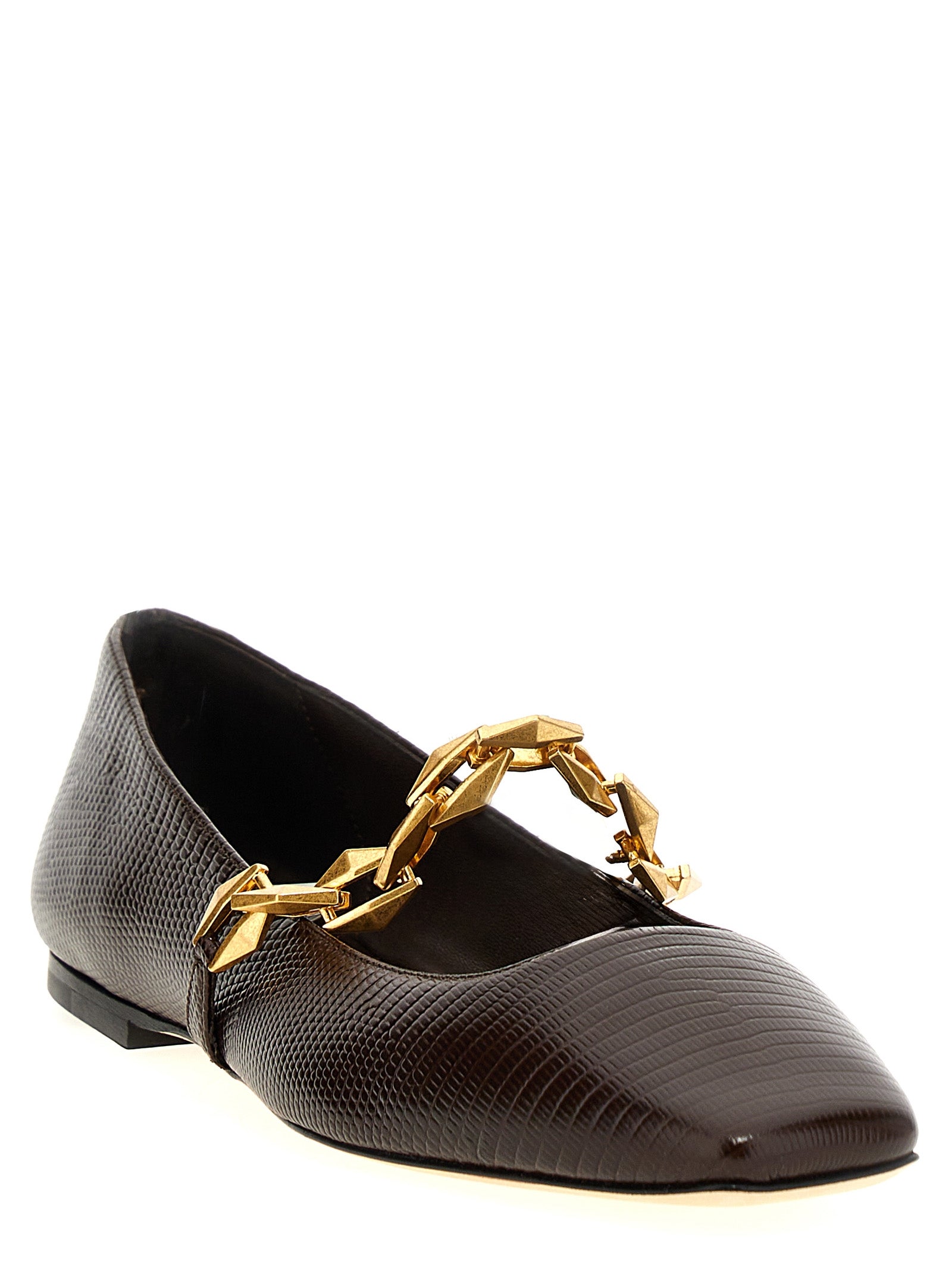 Pisas de ballet de cuero 'Diamond Tilda' con estampado de lagarto, cheque cuadrado, cadena de diamantes en metal antiguo en el instante, suela de cuero.