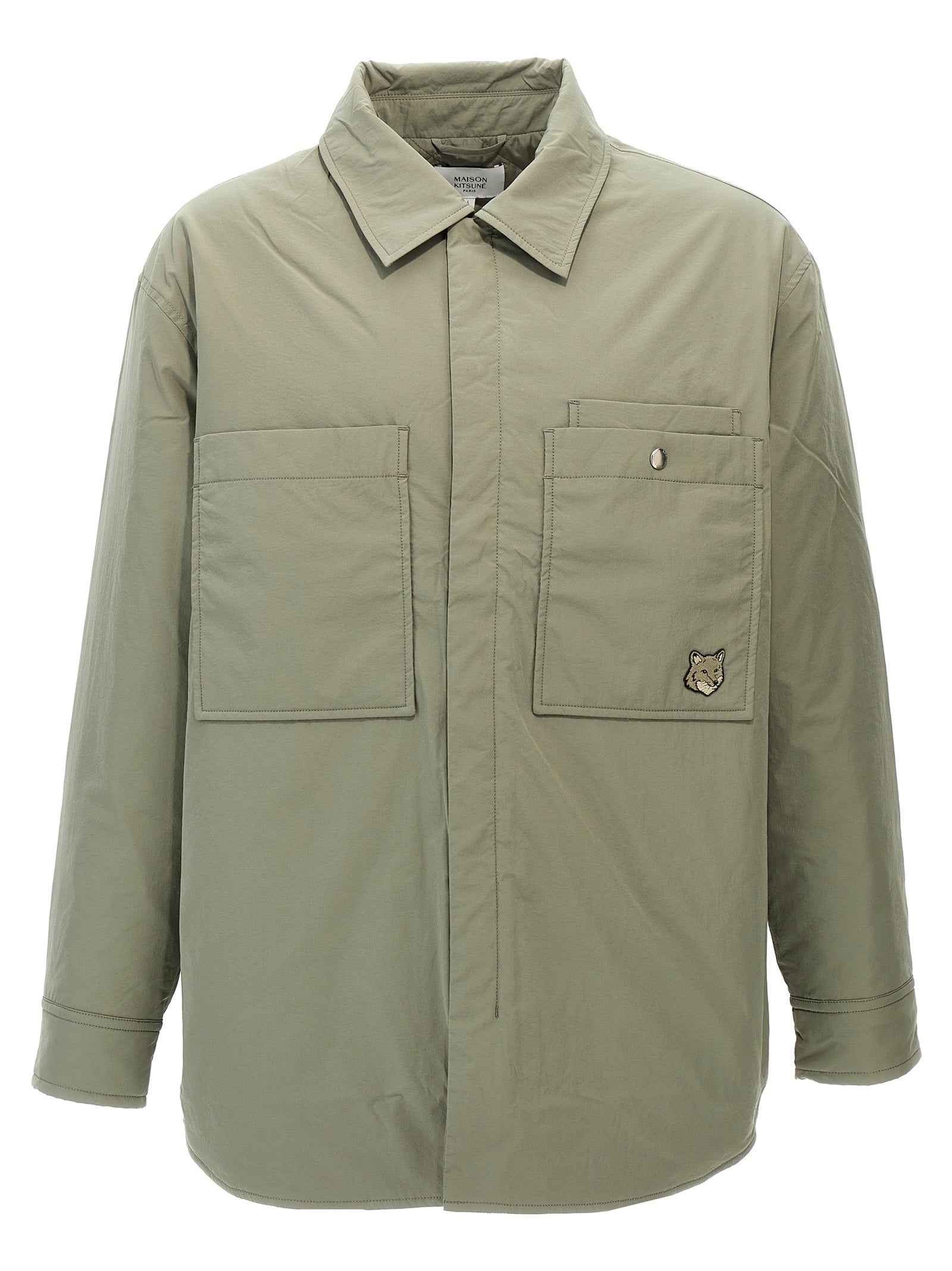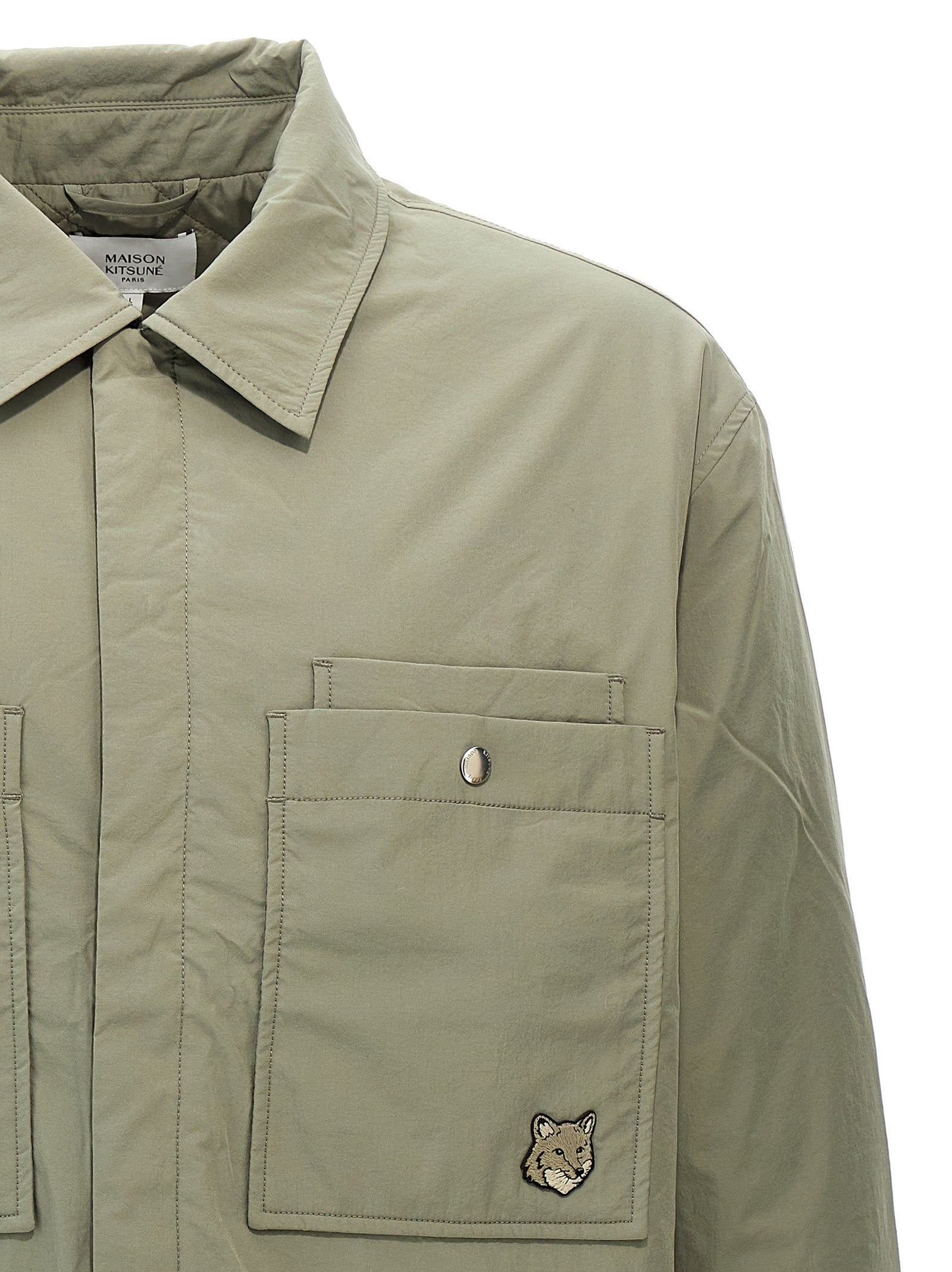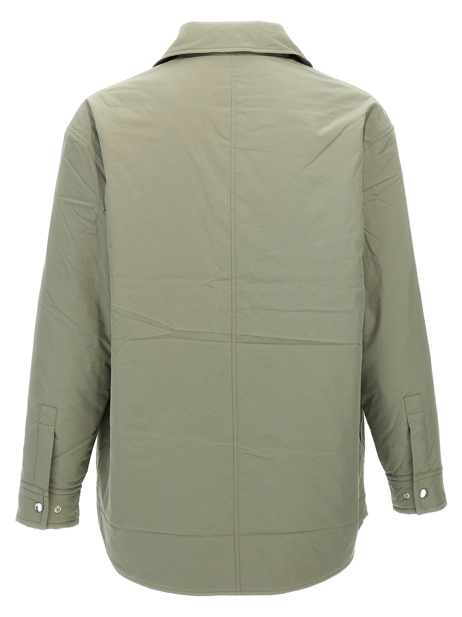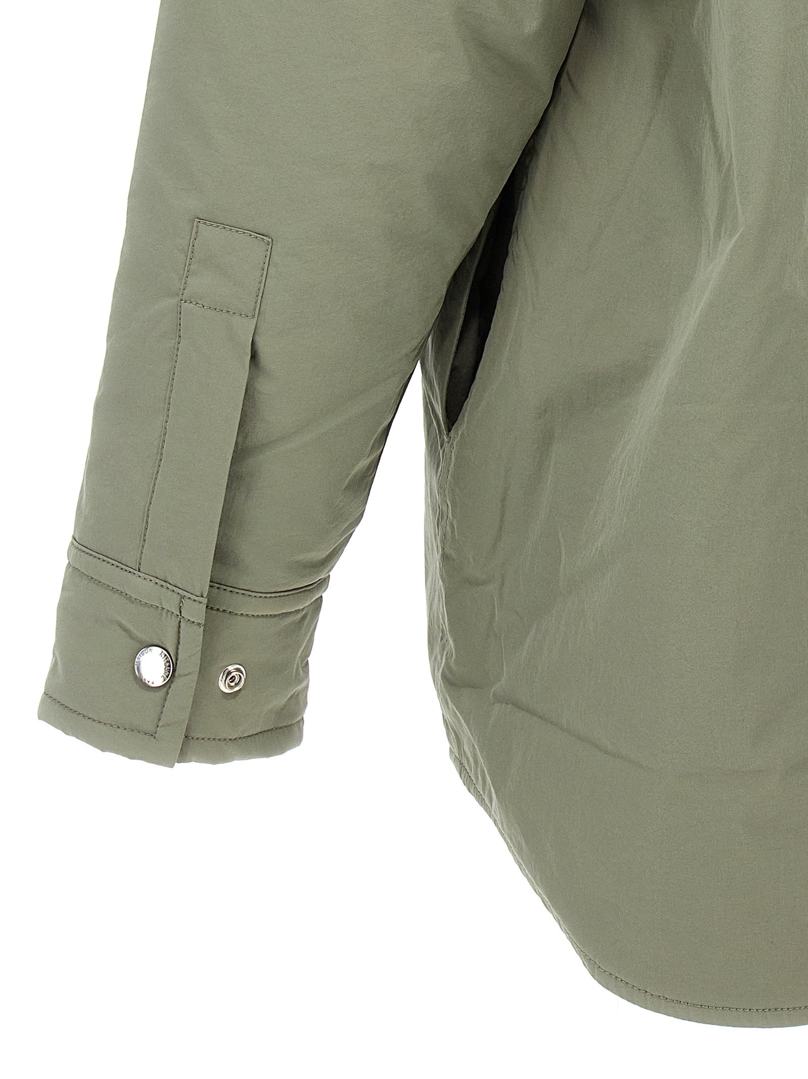 Chaqueta de nylon ligeramente acolchada, parche del logotipo delantero, cierre de botones a presión, mangas largas y espinisas, bolsillos.