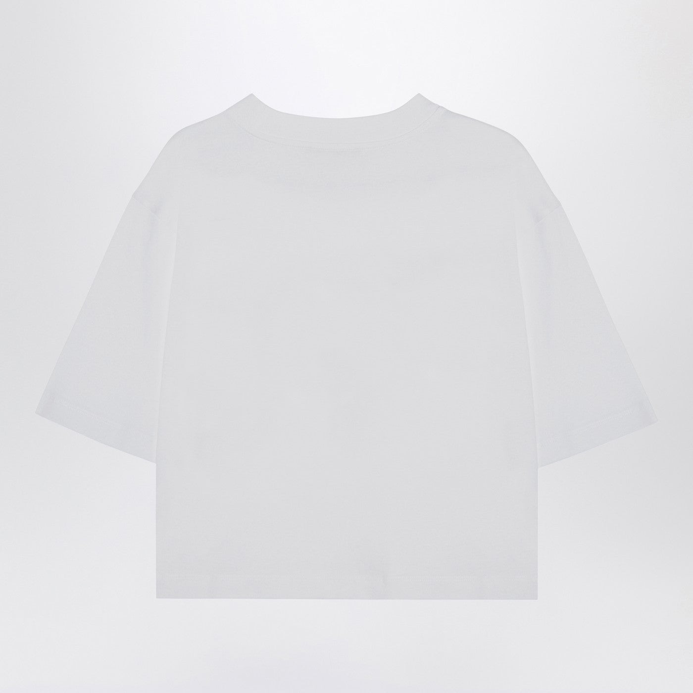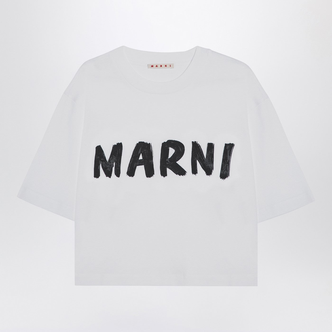 Camiseta de cuello de tripulación de algodón blanco de Marni con mangas cortas anchas, un estampado de logotipo de letras contrastante en la parte delantera y un dobladillo recto.