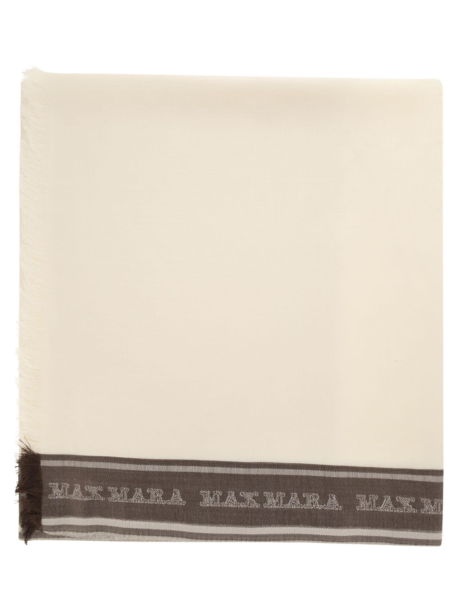 Roba hecha de una combinación fina y suave de seda, cachemira y lana. Terminado con un motivo de banda lateral contrastante y letras Jacquard Max Mara. - Rectangular - Bandas laterales contrastantes - ID de diseñador de letras: 2514541042600 003