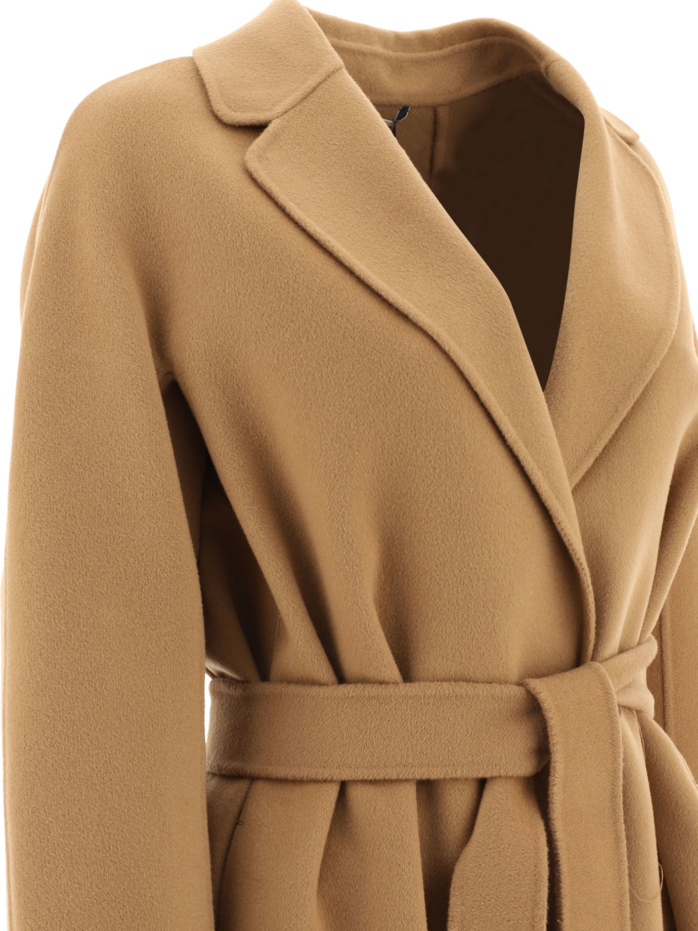 Max Mara SEl abrigo Midi de lana "Esturia" combina elegancia y funcionalidad en una prenda ideal para la mujer moderna. Hecho de tela de lana doble pura fina y cosida a mano, it Ofrece un ajuste regular que mejora la silueta femenina gracias al cinturón a juego. Perfecto para aquellos que desean un aspecto sofisticado y atemporal mientras mantienen una sensación cálida y cómoda durante los días más fríos. || - Línea recta ligeramente encendida en la parte inferior - tela de lana de doble pura preciosa - collar de solapa pequeña - Construcción sin forro - Bockets metidos en las caderas - mangas kimono - El cinturón a juego resalta la silueta - Color sólido - Ajuste regular - mangas largas || Para una apariencia perfecta, combine el abrigo Esturia con un bolso de hombro Max Mara y un par de botines de tacón en bloque. Complete el atuendo con un vestido MIDI y accesorios minimalistas para un toque de sofisticación atemporal.