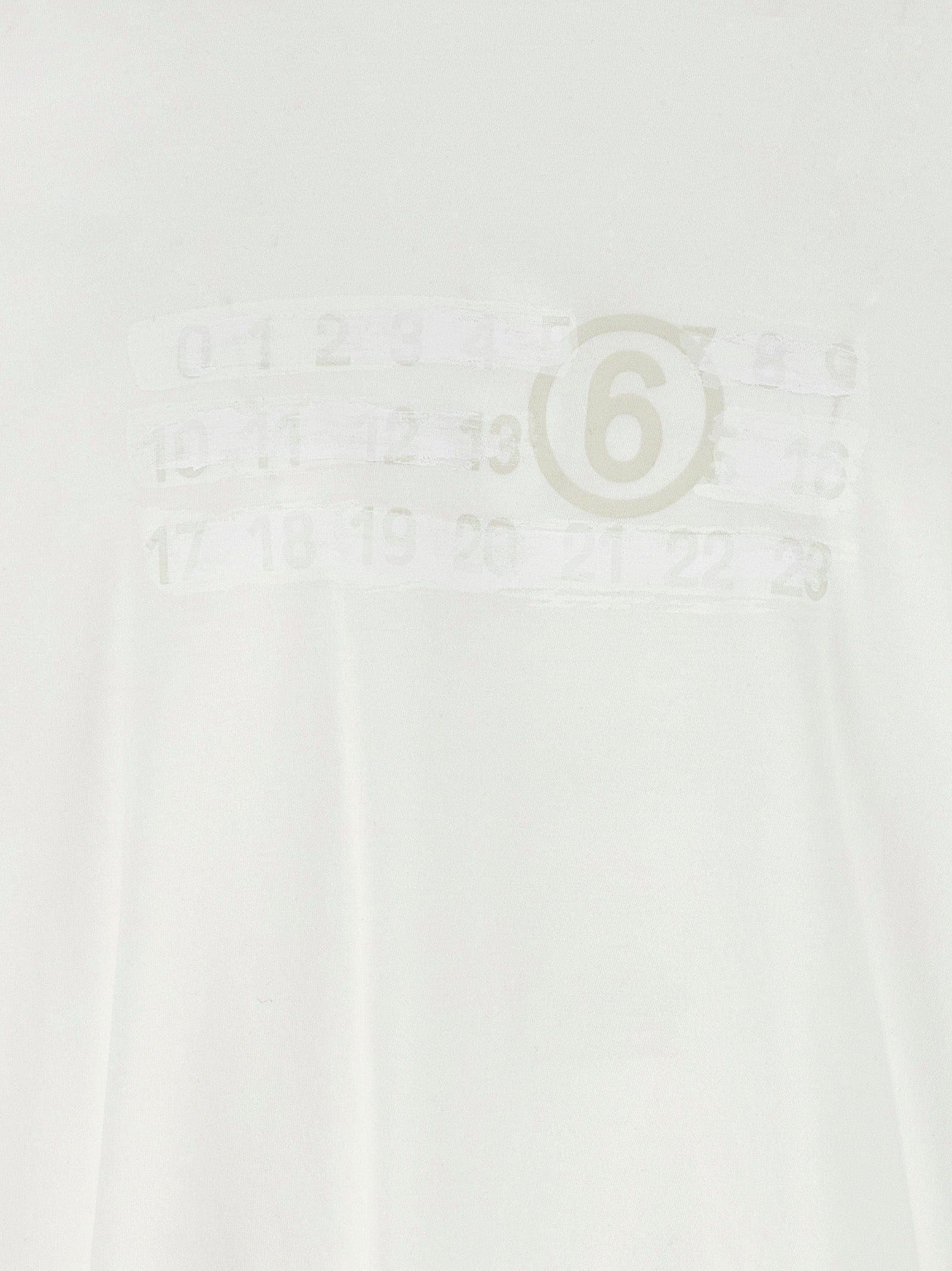 Camiseta de jersey de algodón 'numérica' con estampado delantero, cuello de la tripulación, mangas cortas con hombros caídos, línea de puntada blanca en la parte posterior.