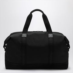 Bolsa de viaje de Moncler en nylon negro repelente al agua, caracterizado por detalles de cuero, dos manijas, correa de hombro ajustable y extraíble, cierre de cremallera, bolsillo interno de cremallera y logotipo de metal delantero.