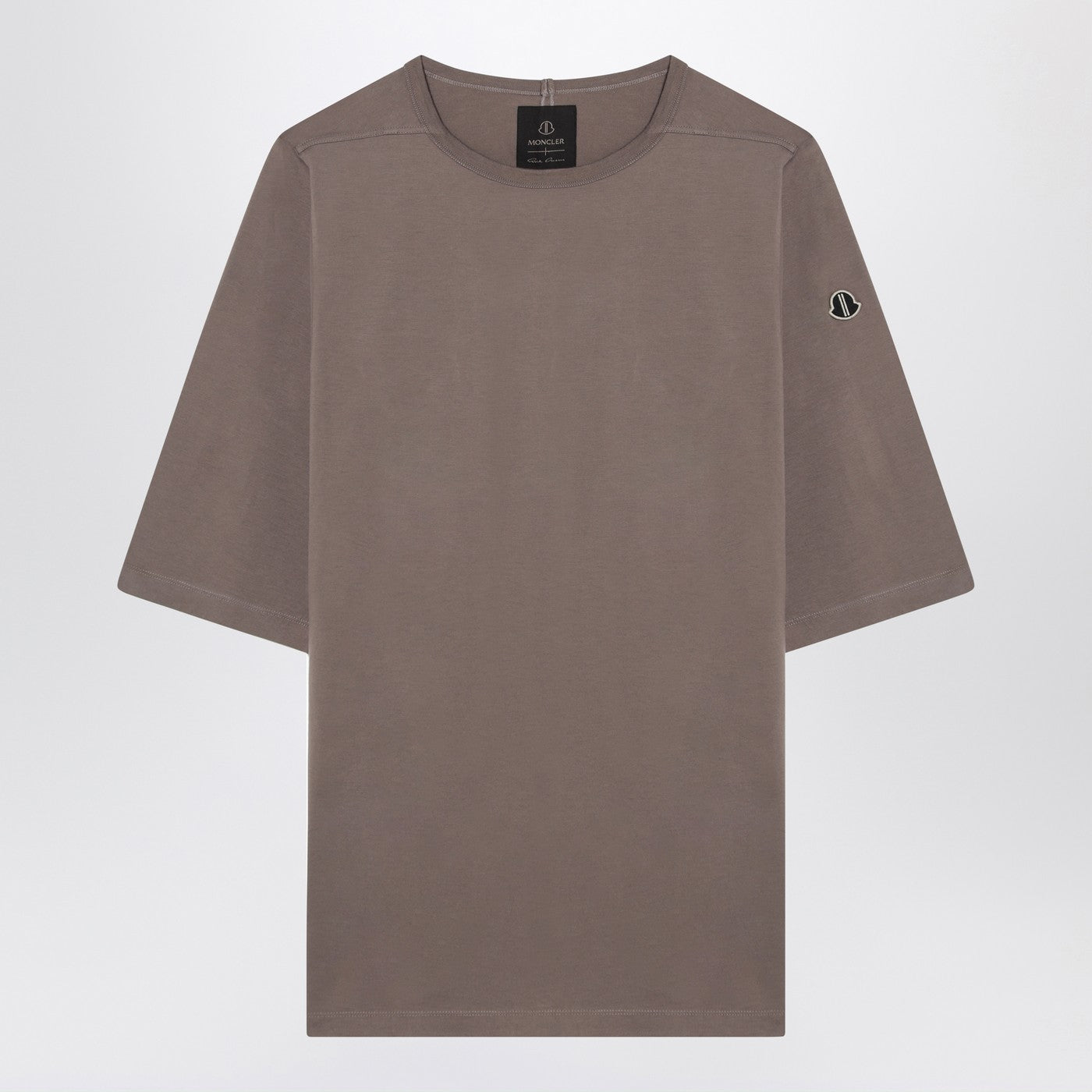 Camiseta de gran tamaño de Moncler en colaboración con Rick Owens con jersey de algodón de color polvo, con un diseño de cuello redacción, mangas cortas con parche de logotipo y dobladillo recto.