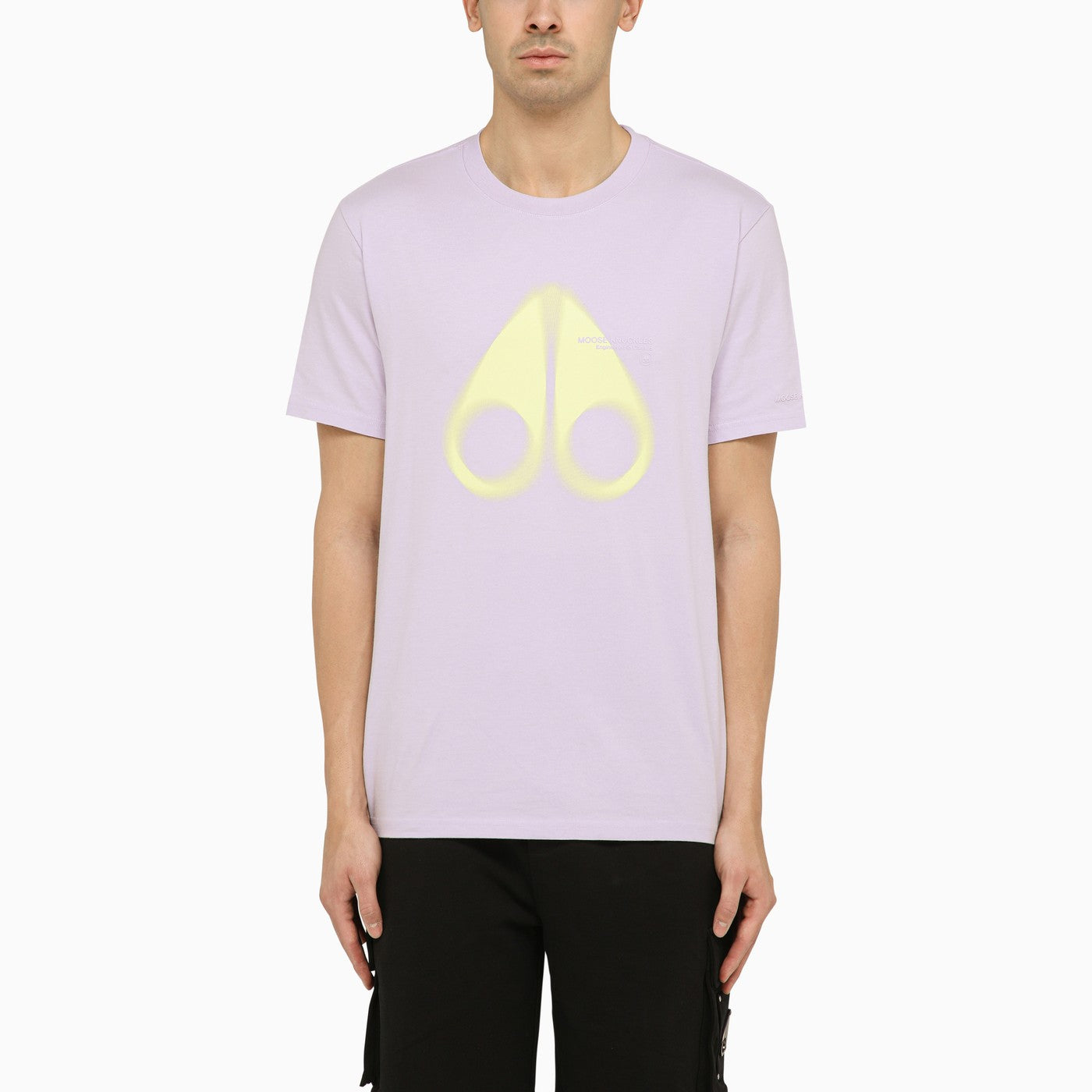 Camiseta de algodón con cuello de tripulación en orquídea de nudillos de alce, con mangas cortas, estampado de logotipo en contraste en la parte delantera y posterior y el dobladillo recto.