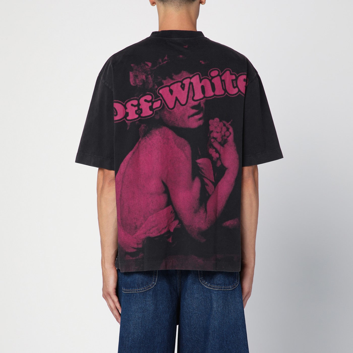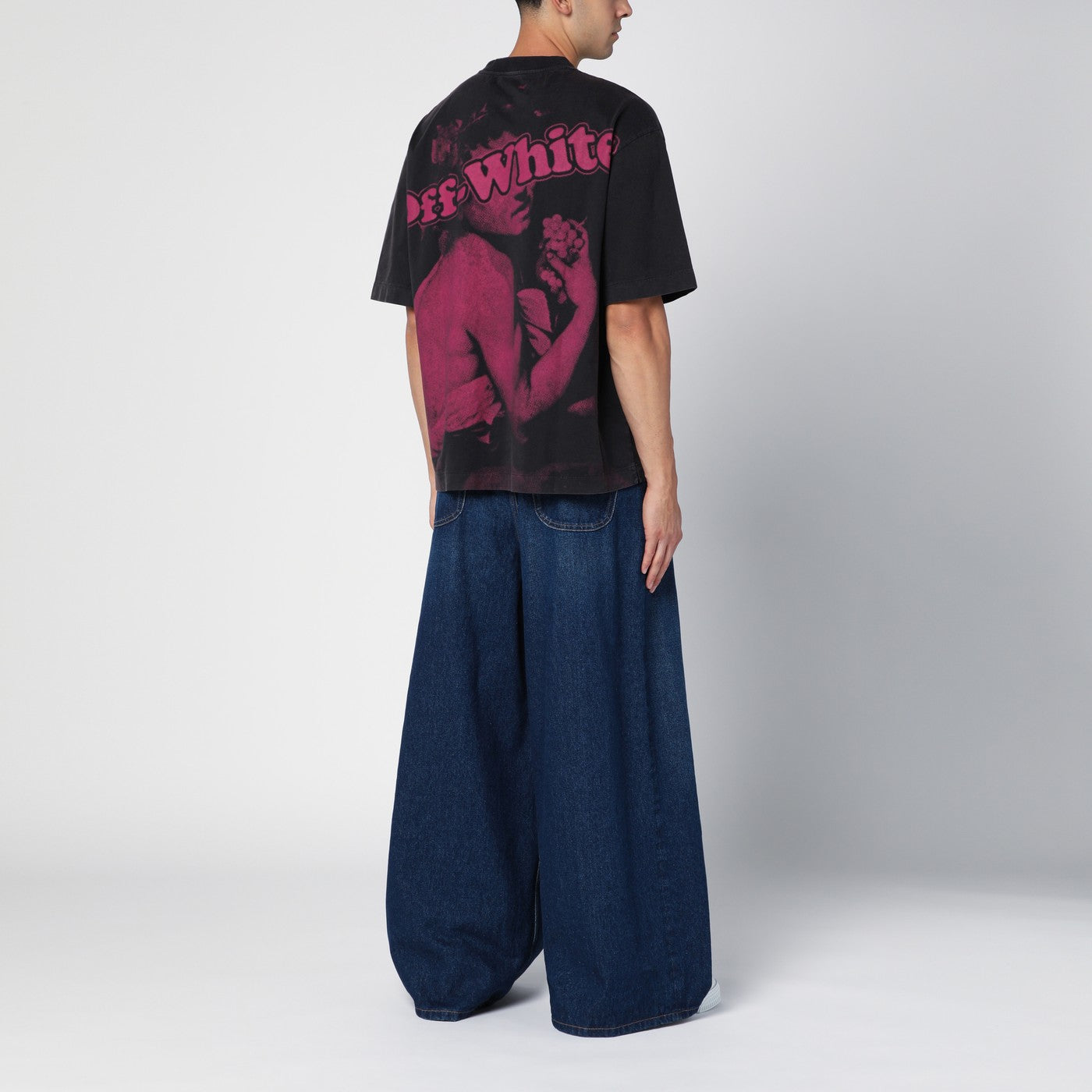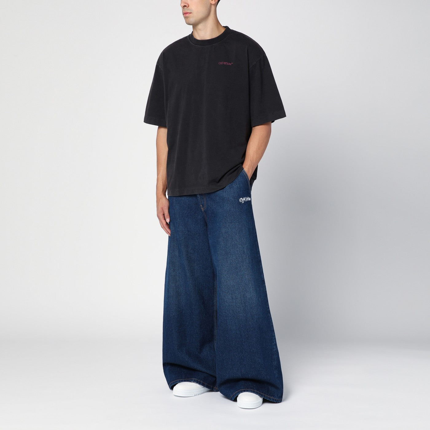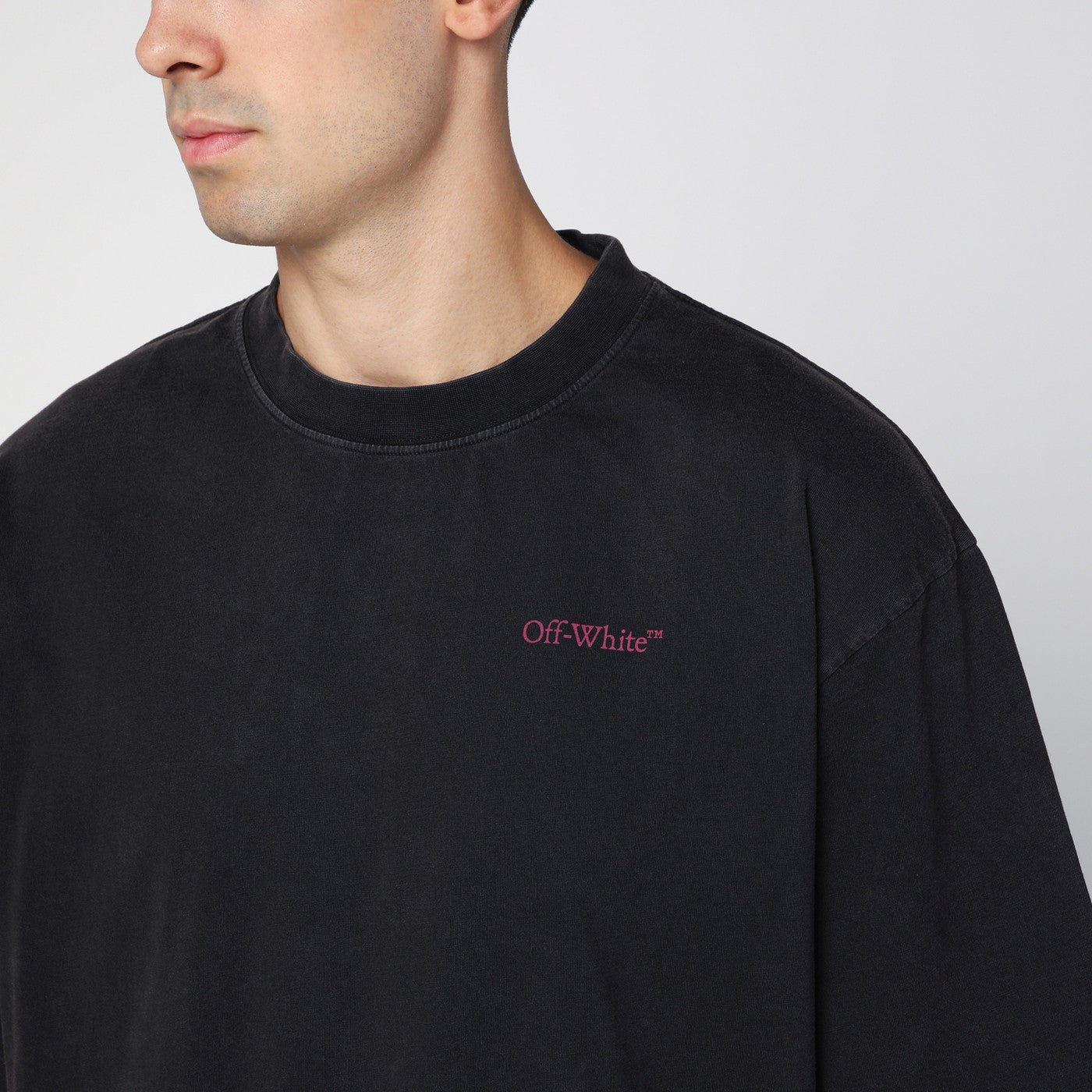 Camiseta de cuello de tripulación de algodón negro de Off-White con mangas cortas, logotipo de letras en el pecho, estampado del logotipo contrastante en la espalda y el ajuste de gran tamaño.