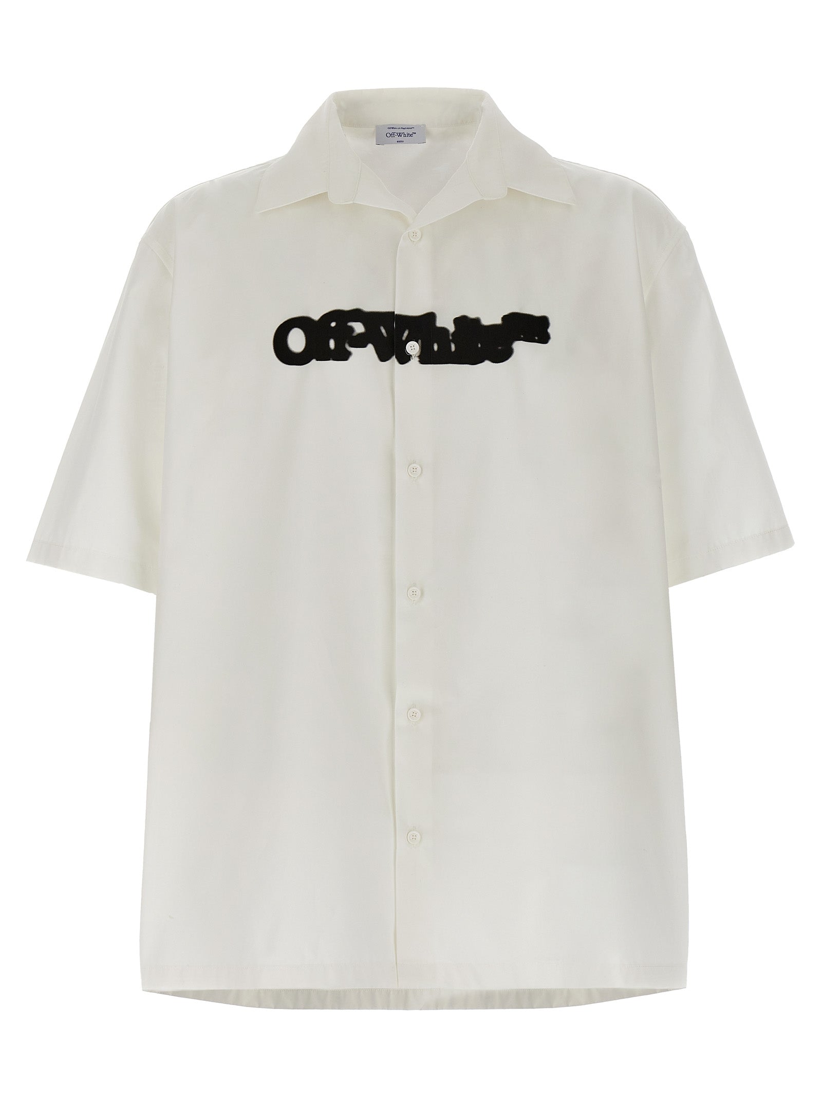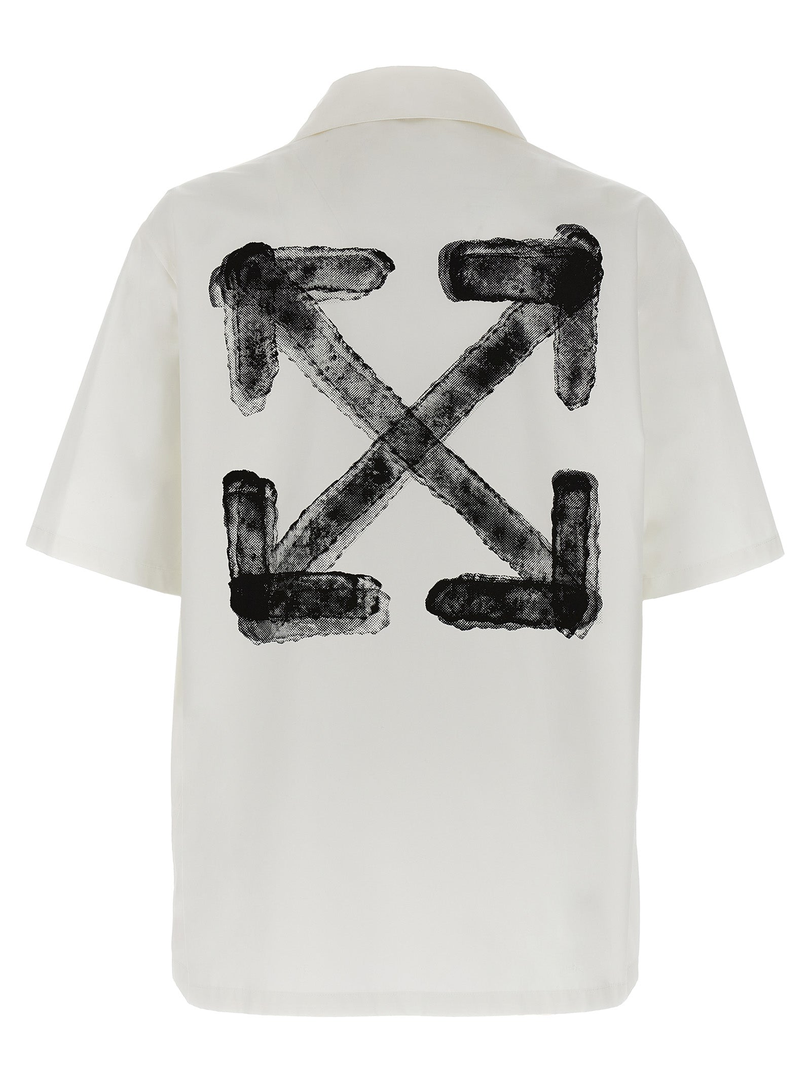 'Spray flecha' camisa de algodón de algodón con estampado en la parte delantera y trasera, estilo de boliche con mangas cortas y cierre de botones.
