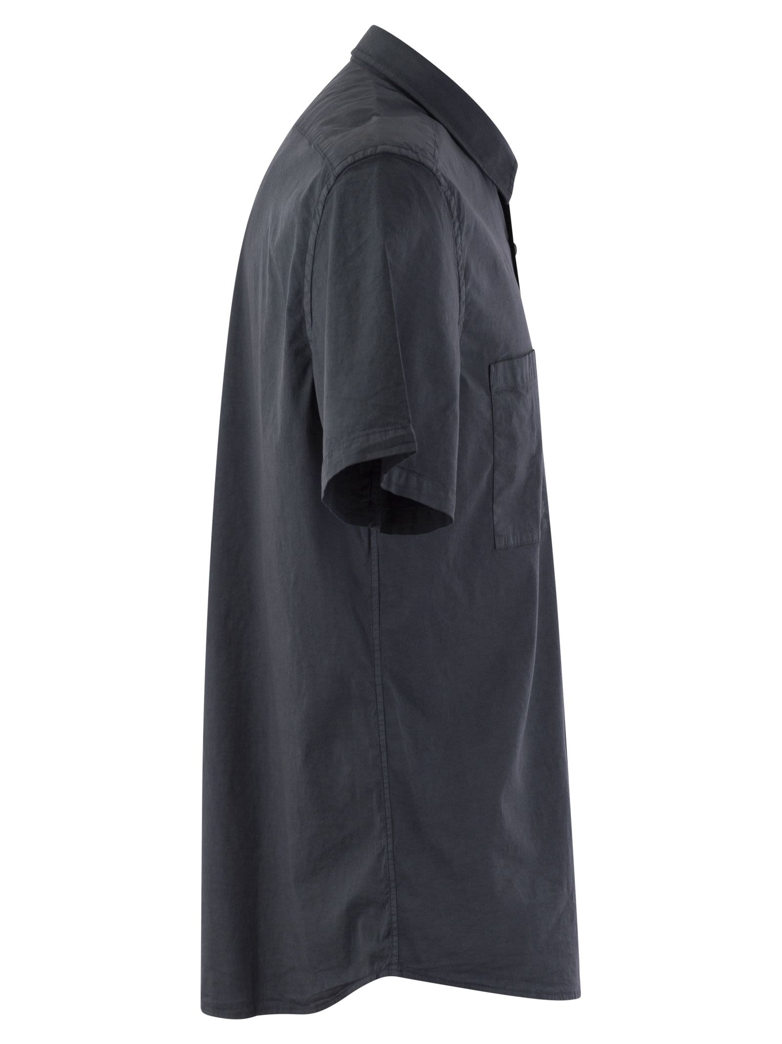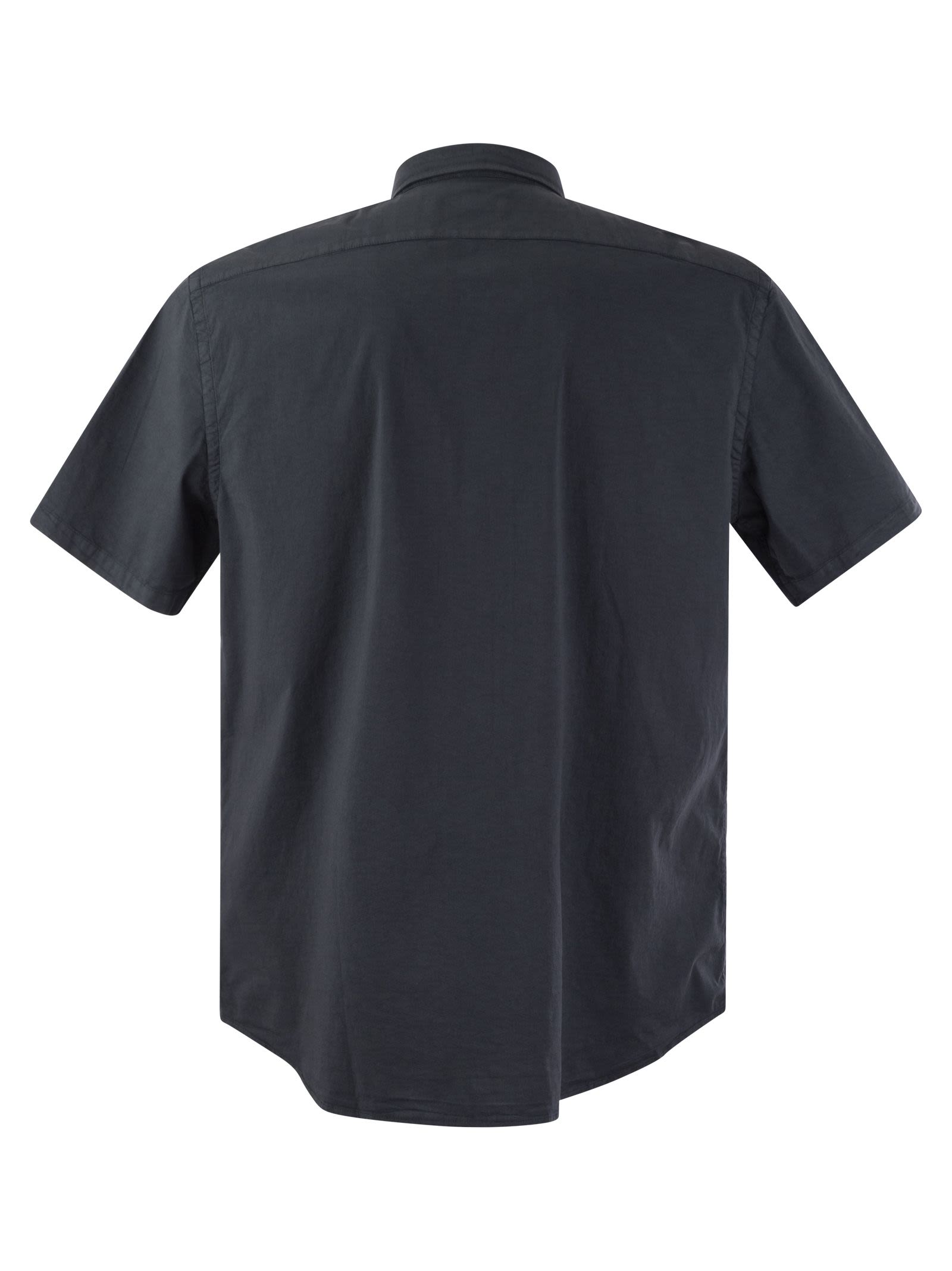 La camisa, hecha de poplina de algodón estirable teñida de prendas de vestir, es una elegante fusión de estilo y comodidad. El collar de vela agrega un toque de sofisticación y modernidad al diseño, creando una imagen contemporánea y distintiva. Con un ajuste regular it Ofrece una silueta cómoda y ordenada. - Camisa Poplin teñida de prendas - Mangas cortas redondeadas con dobladillo tejido - cuello extendido - ajuste regular - botón cosido Cierre delantero - Patch Breast Pockets Designer ID: R56540T0 08930 762