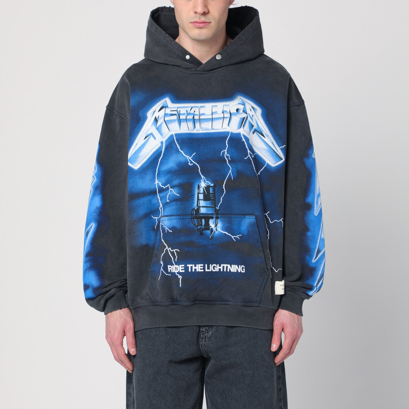 La sudadera con capucha Representa en algodón gris vintage, con un rayo de Metallica Ride the Lightning en la parte delantera y trasera, detalles angustiados, un bolsillo de canguro con una placa de logotipo metálico, parche del logotipo delantero, mangas largas y bordes acanalados.