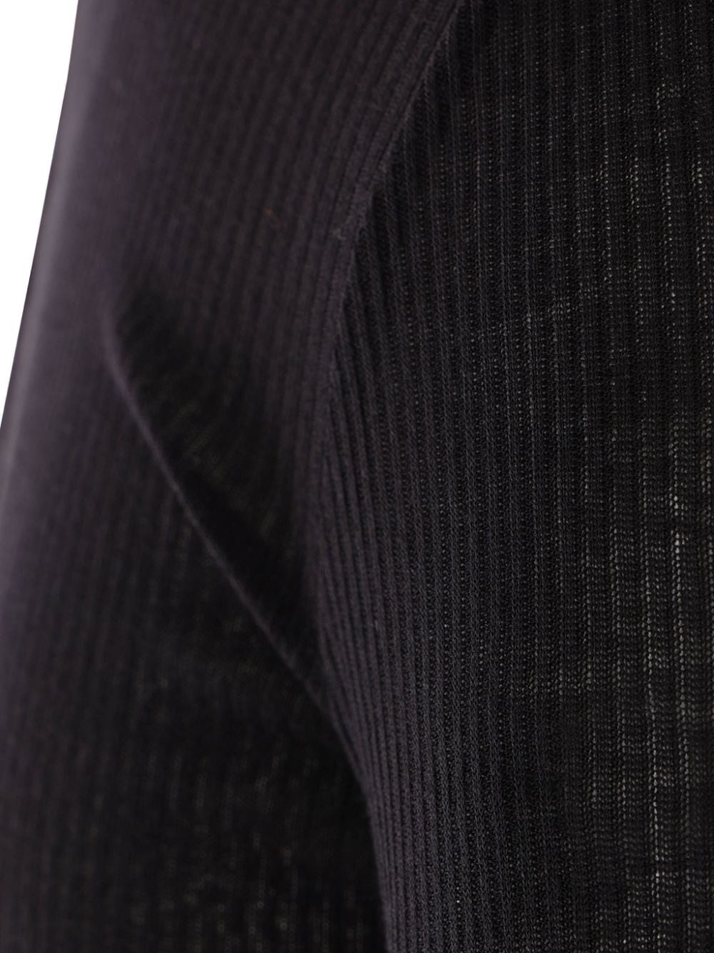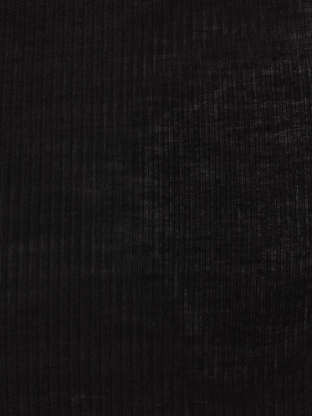 Black acanalado cuello redondo mangas largas dobladillo recto