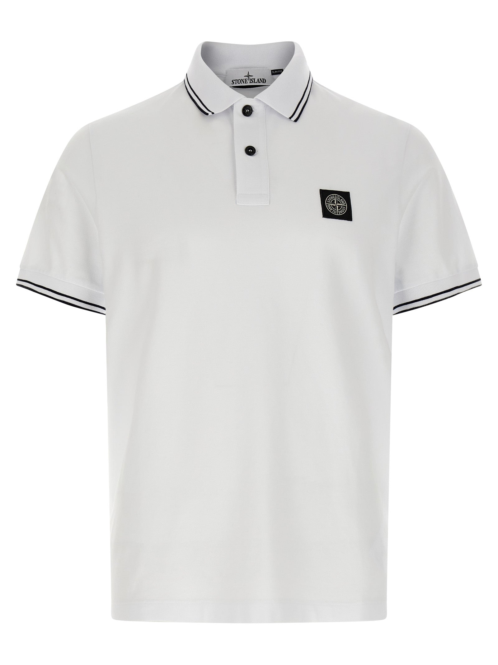 Polo del polo de algodón con tuberías contrastantes, parche de logotipo en el cofre.