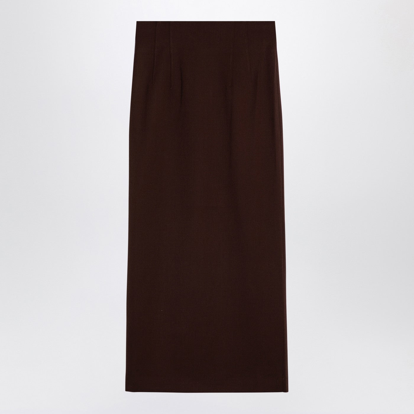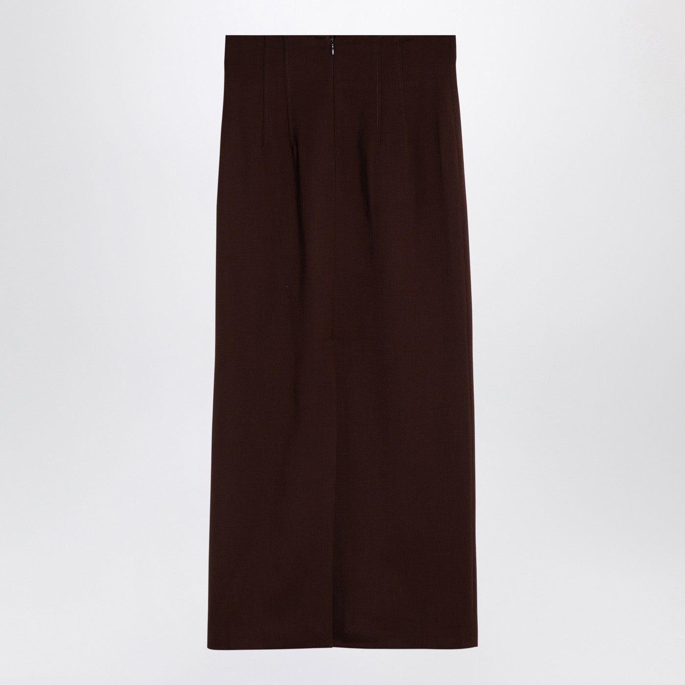 Falda Maxi por la mezcla de lana de chocolate caliente de Andamane, con un diseño de cintura alta, cierre de cremallera y una hendidura central.