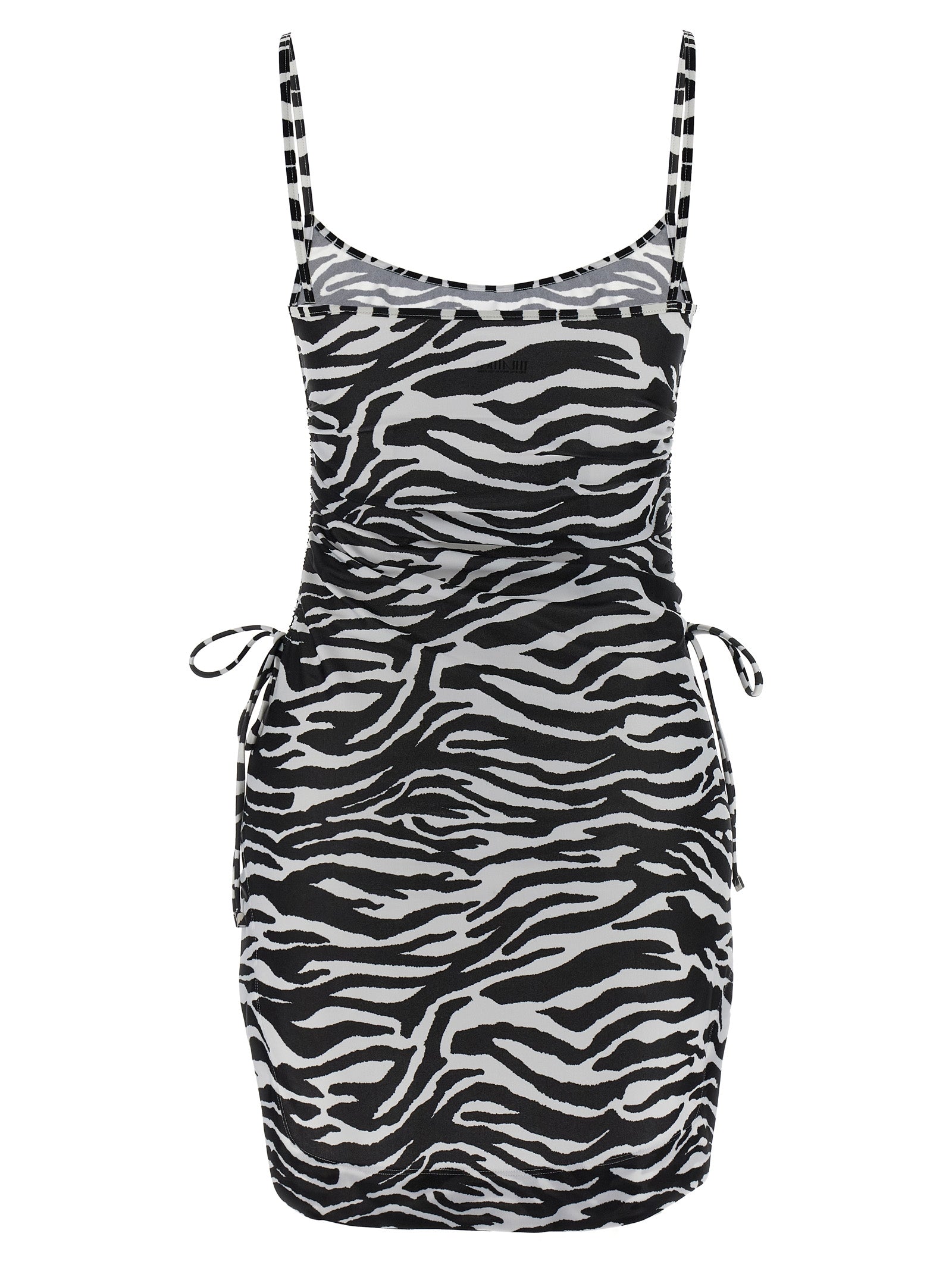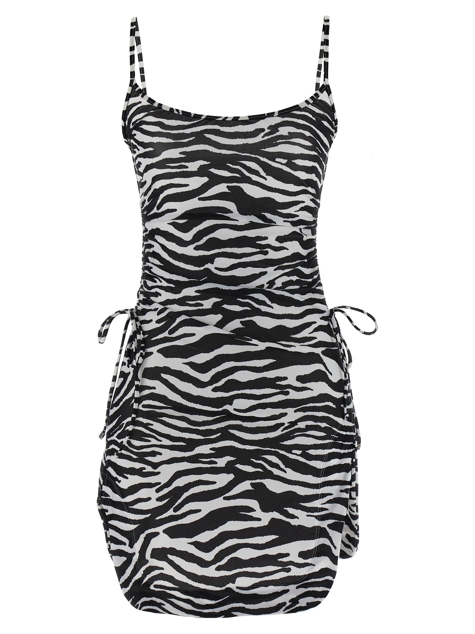 Mini vestido 'Estate Meravigliosa' en Lycra estirado, cordón lateral con drapeado, sin mangas, correas delgadas, ranuras laterales con forma.