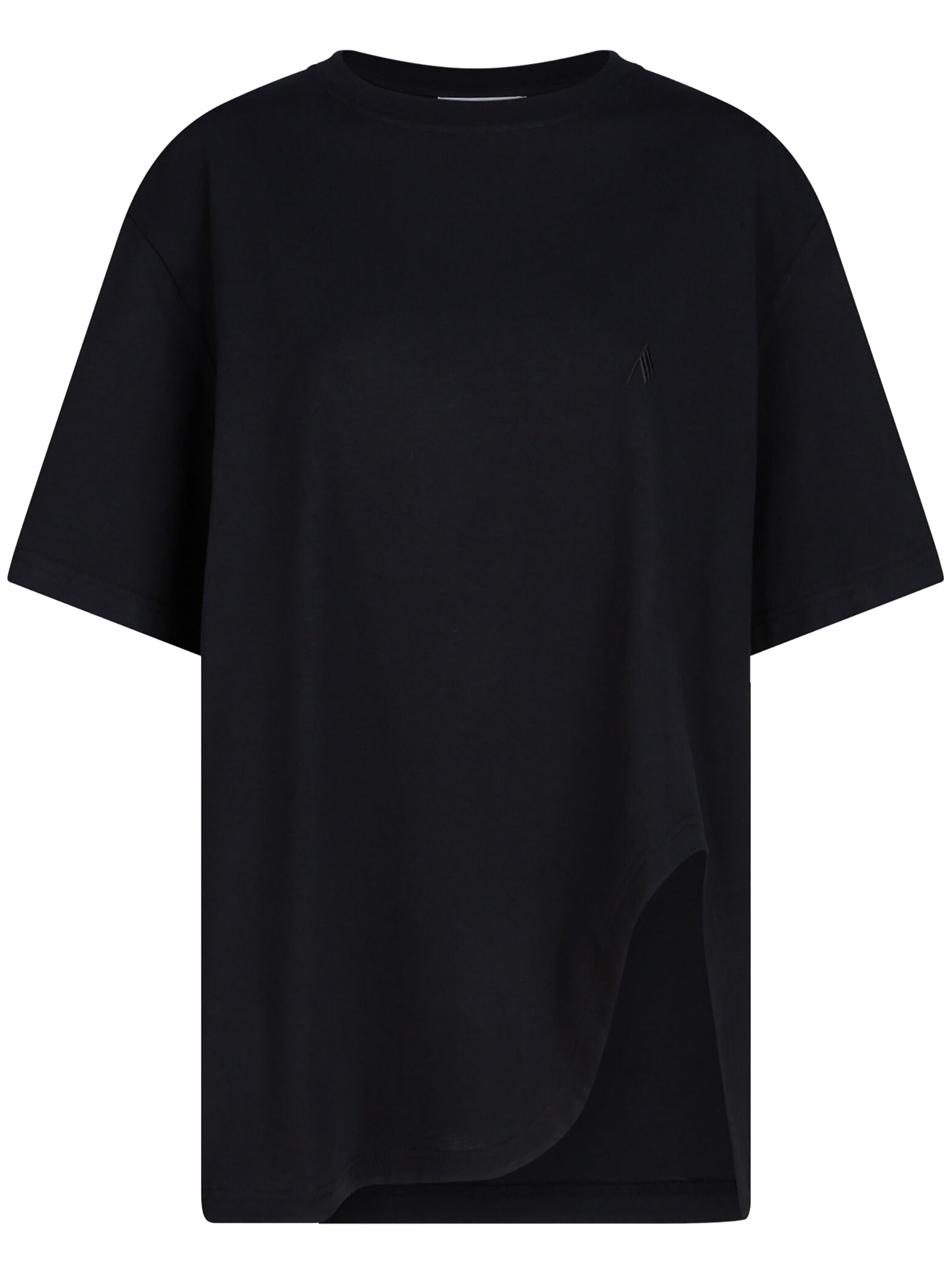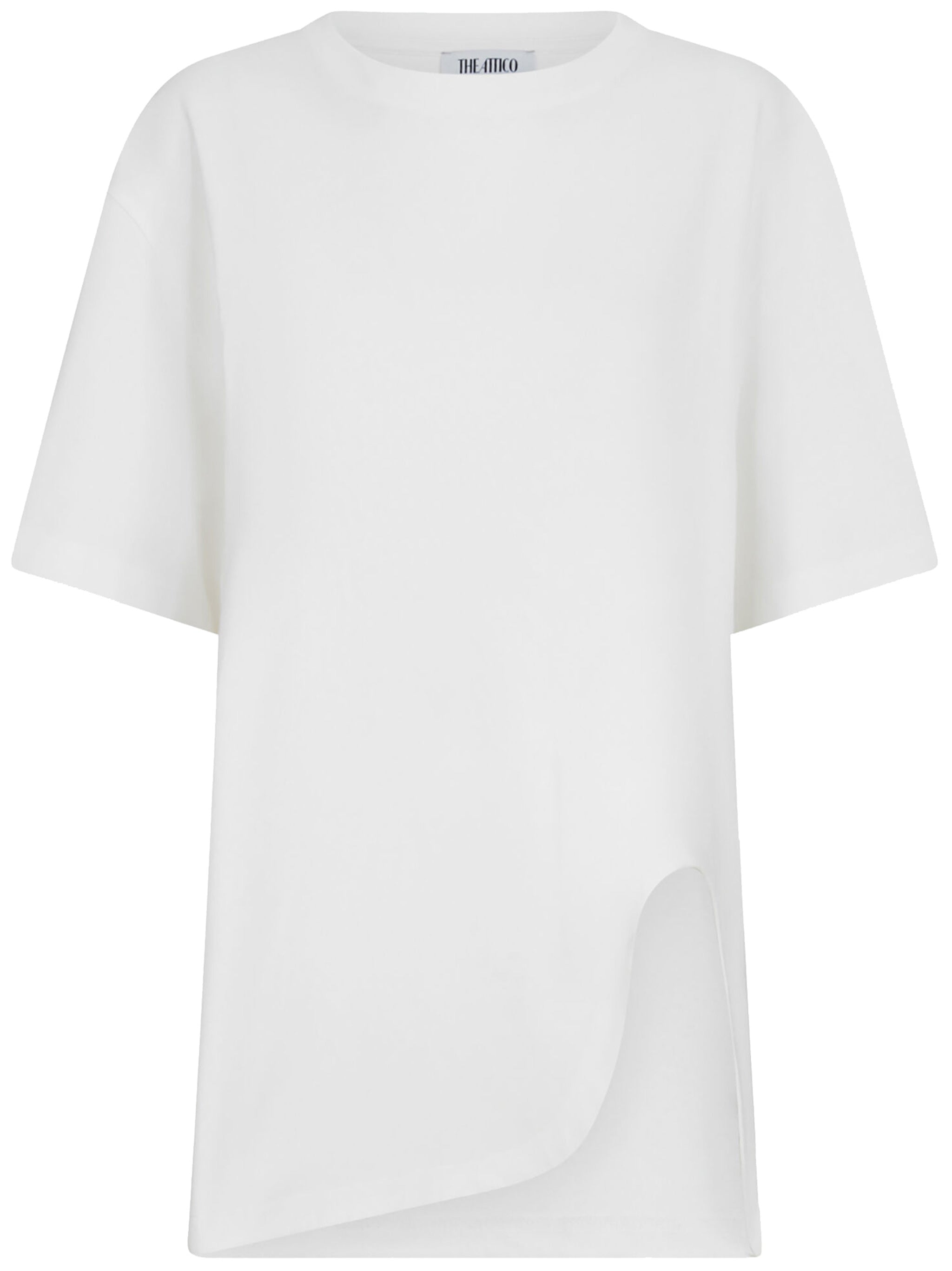 Camiseta de gran tamaño de Jersey, caracterizada por una brecha con forma para un diseño único y moderno.