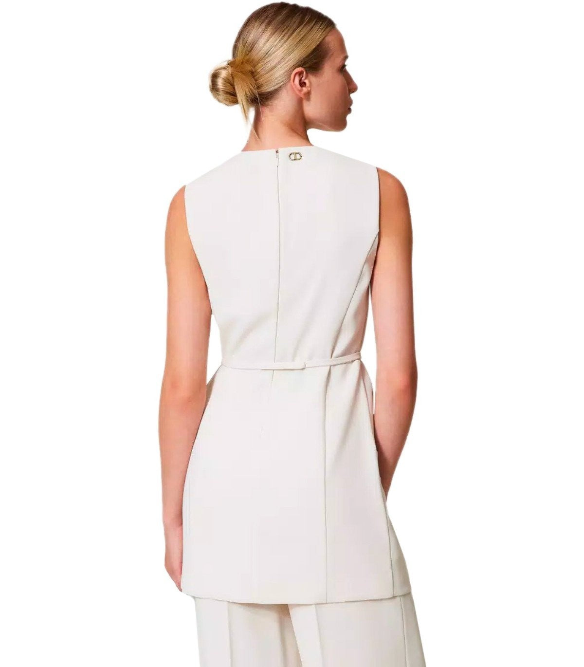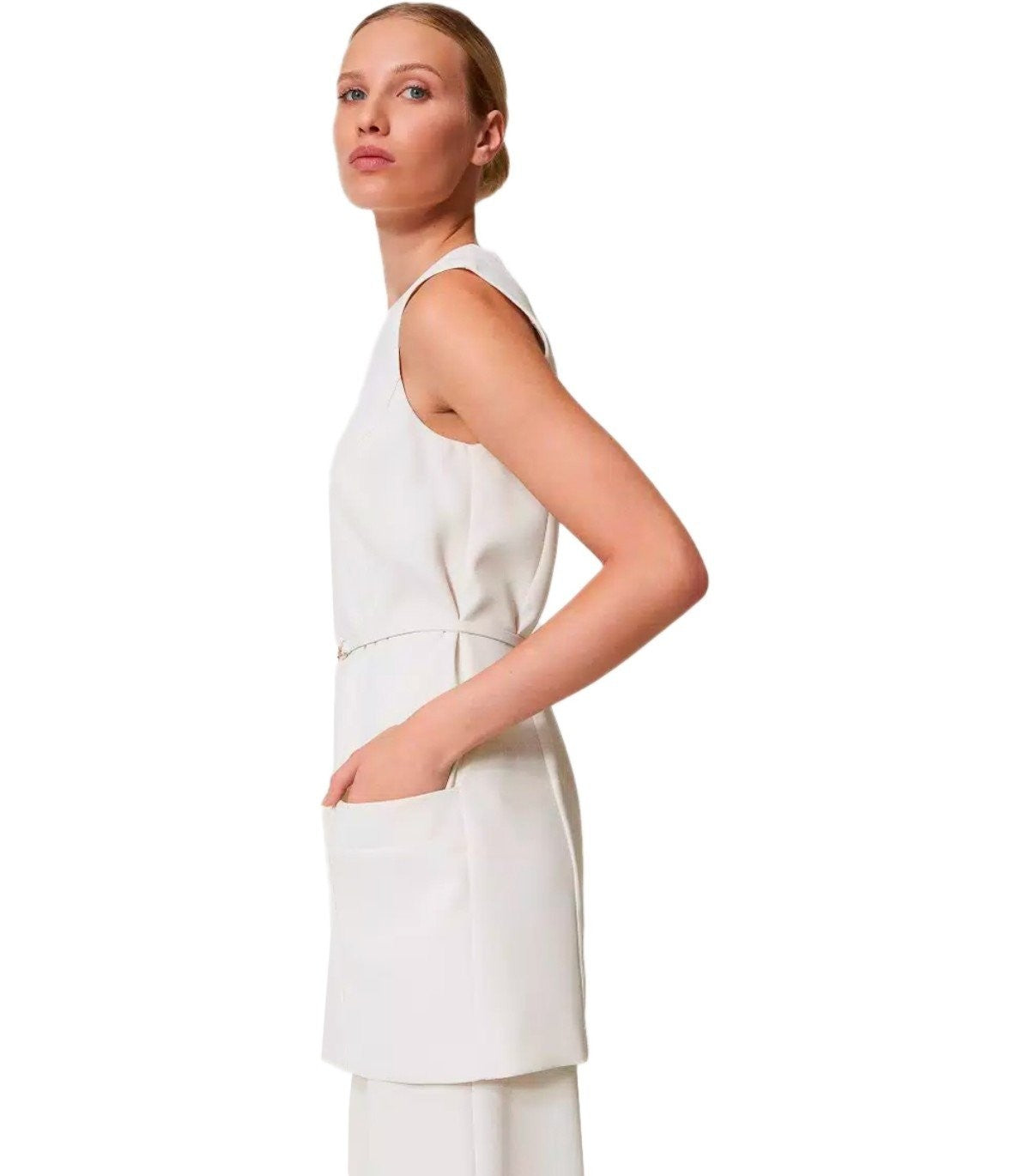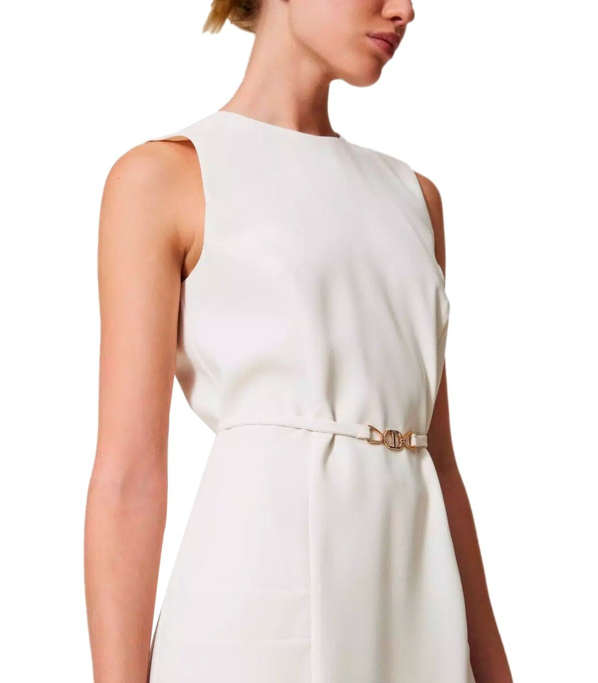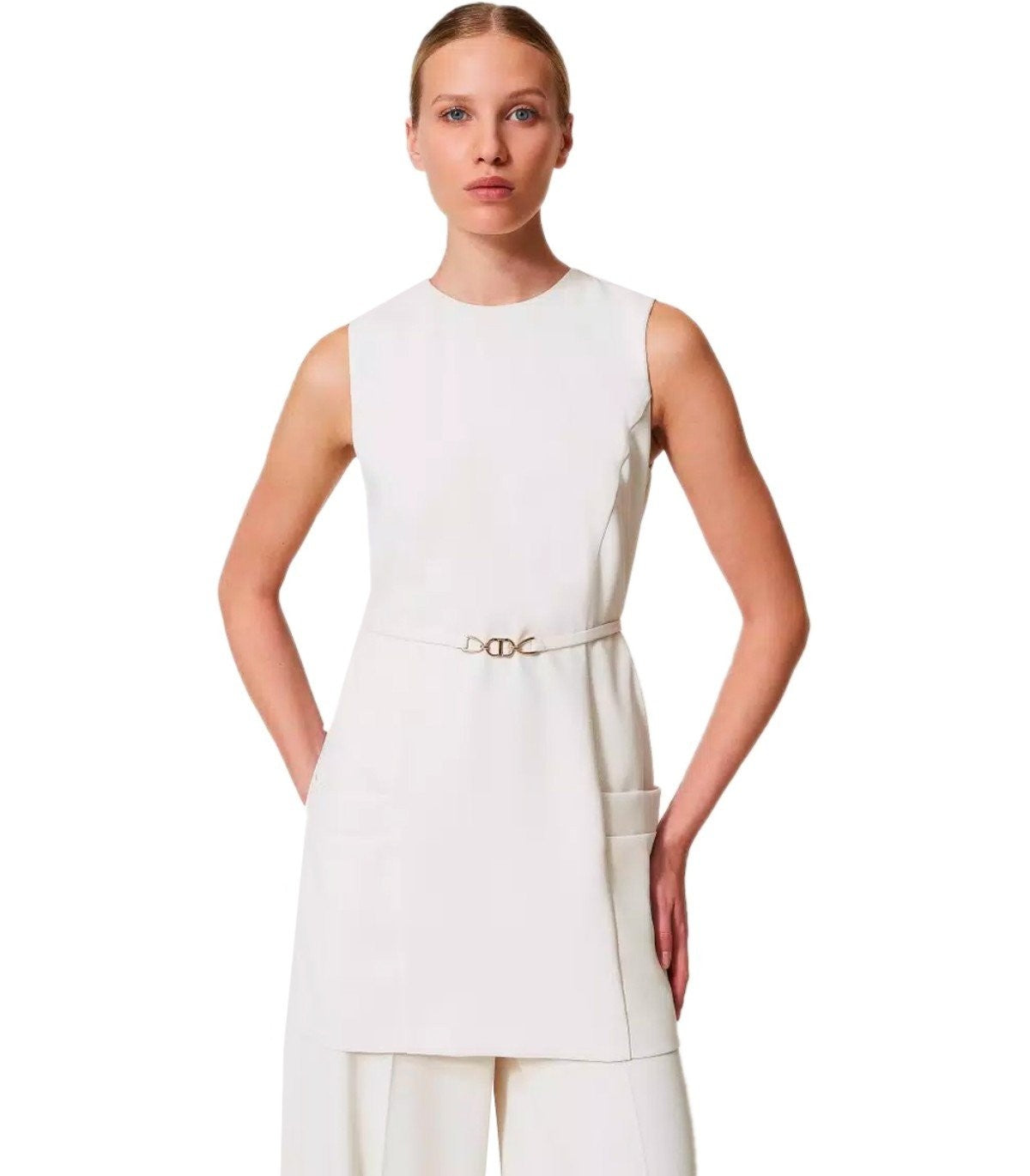 Vestido de gemelos hecha de crema estirada fluida en tonos de nácar blanca. Caracterizado por un cierre de cremallera en la parte posterior, presenta bolsillos de aleta horizontales y un escote redondo. Adornado con un cinturón coordinado extraíble gracias al gancho de la marca cerrado en la parte posterior con los botones de presionar. Mejorada por una placa de metal de marca en oro en la parte posterior. Fit delgado. El modelo mide 178 cm de alto y usa tamaño 40 IT. Composición: 100% de poliéster. Revestimiento: 68% de acetato, 32% de poliéster. Cinturón: 100% de poliéster.