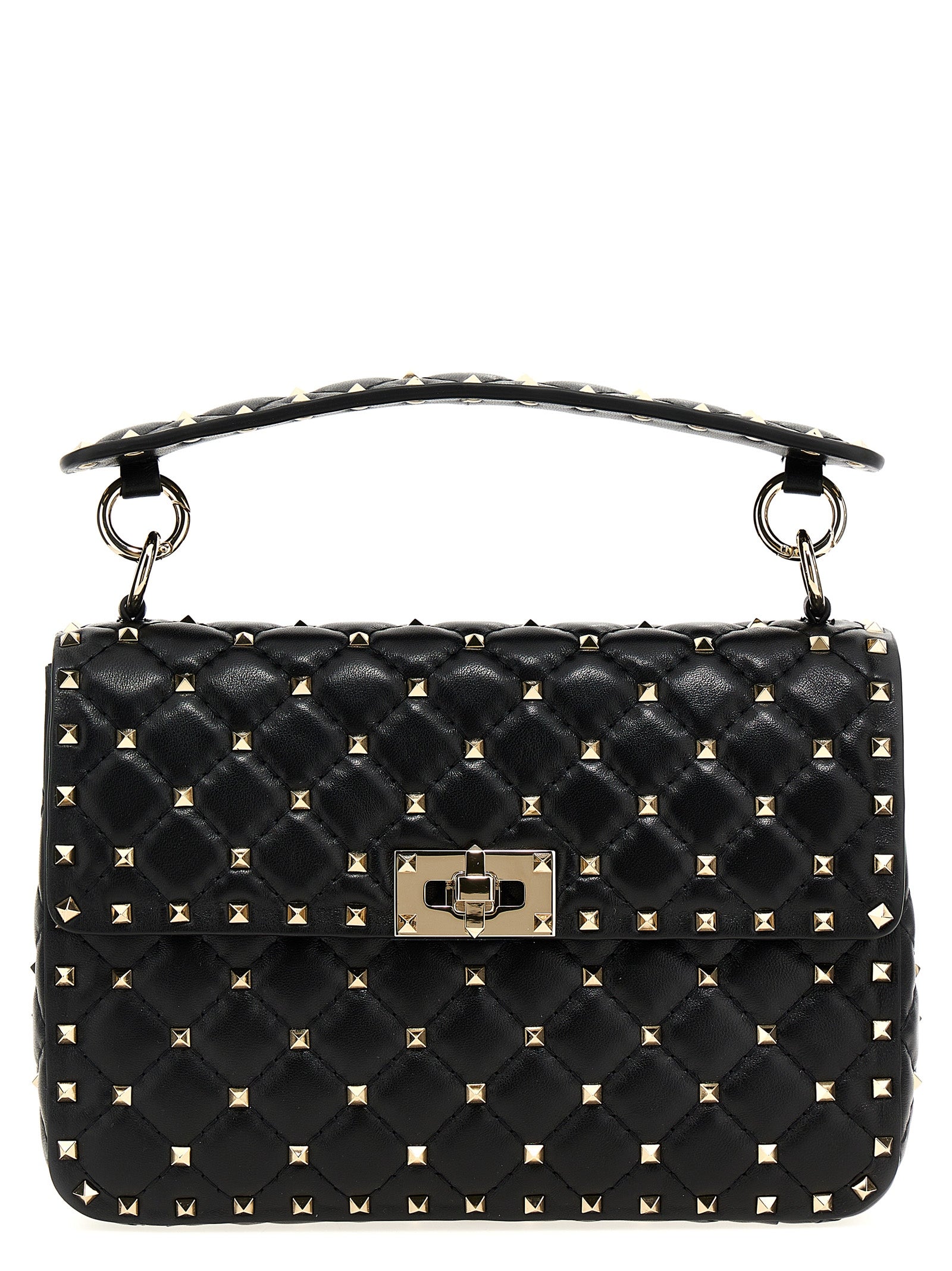 Rockstud Spike Nappa Shoulder con pernos, cierre de colgajo con giro, mango extraíble y correa de hombro de cadena extraíble.