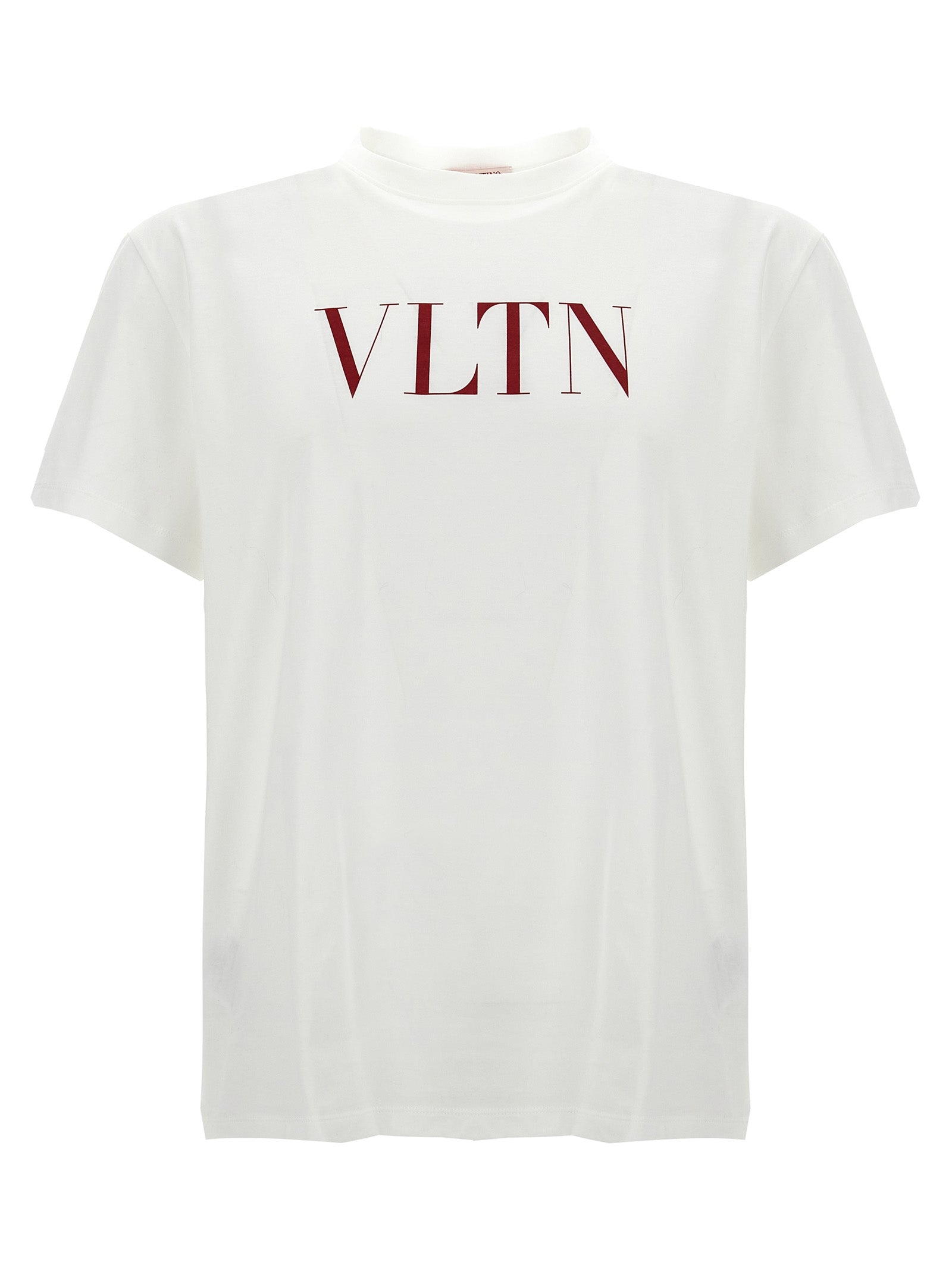 Camiseta de cuello de la tripulación de algodón con estampado del logotipo delantero 'Vltn' y mangas cortas.