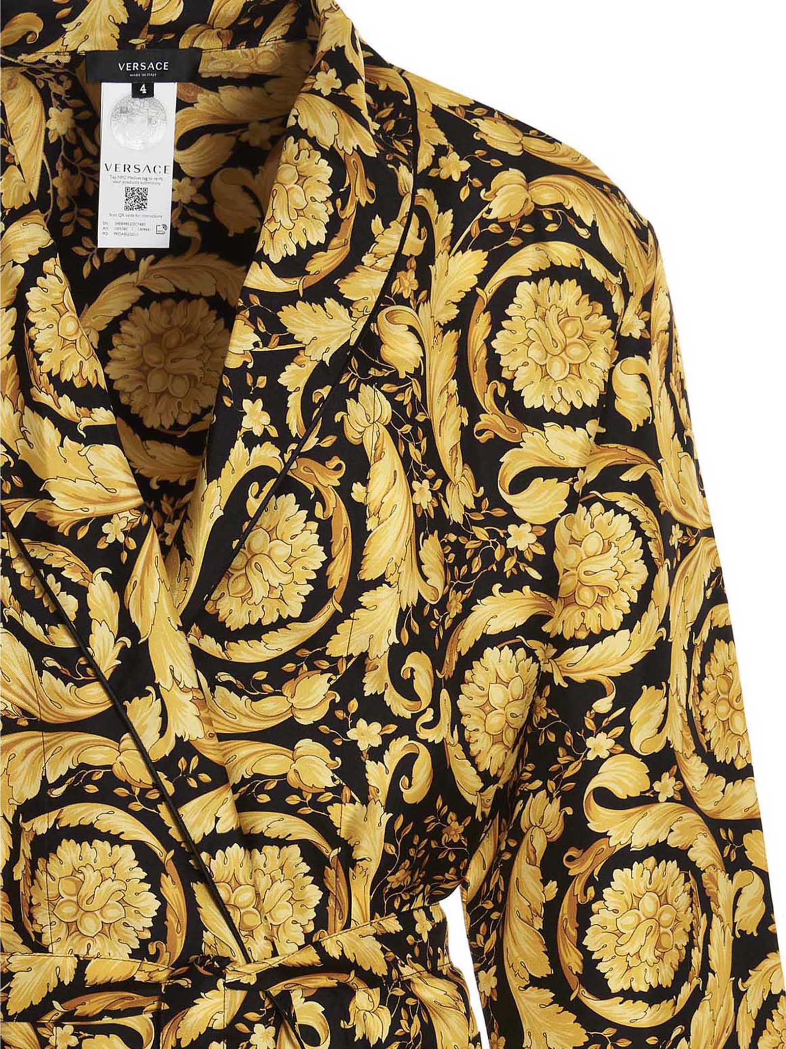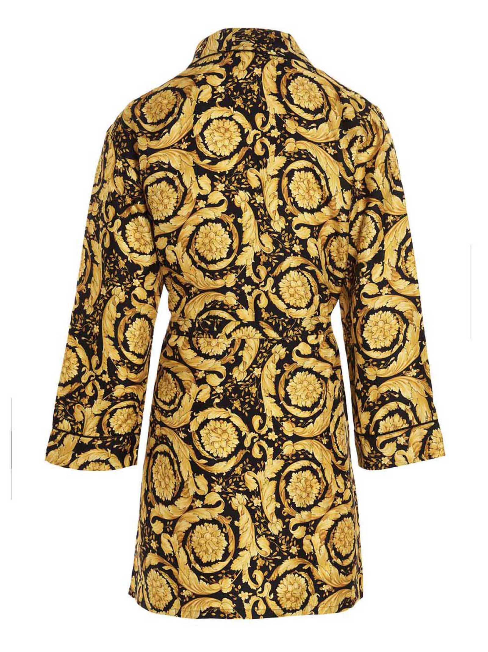 Bata de seda con estampado 'Barocco', bolsillos, cierre de cintura con cintura, mangas largas.