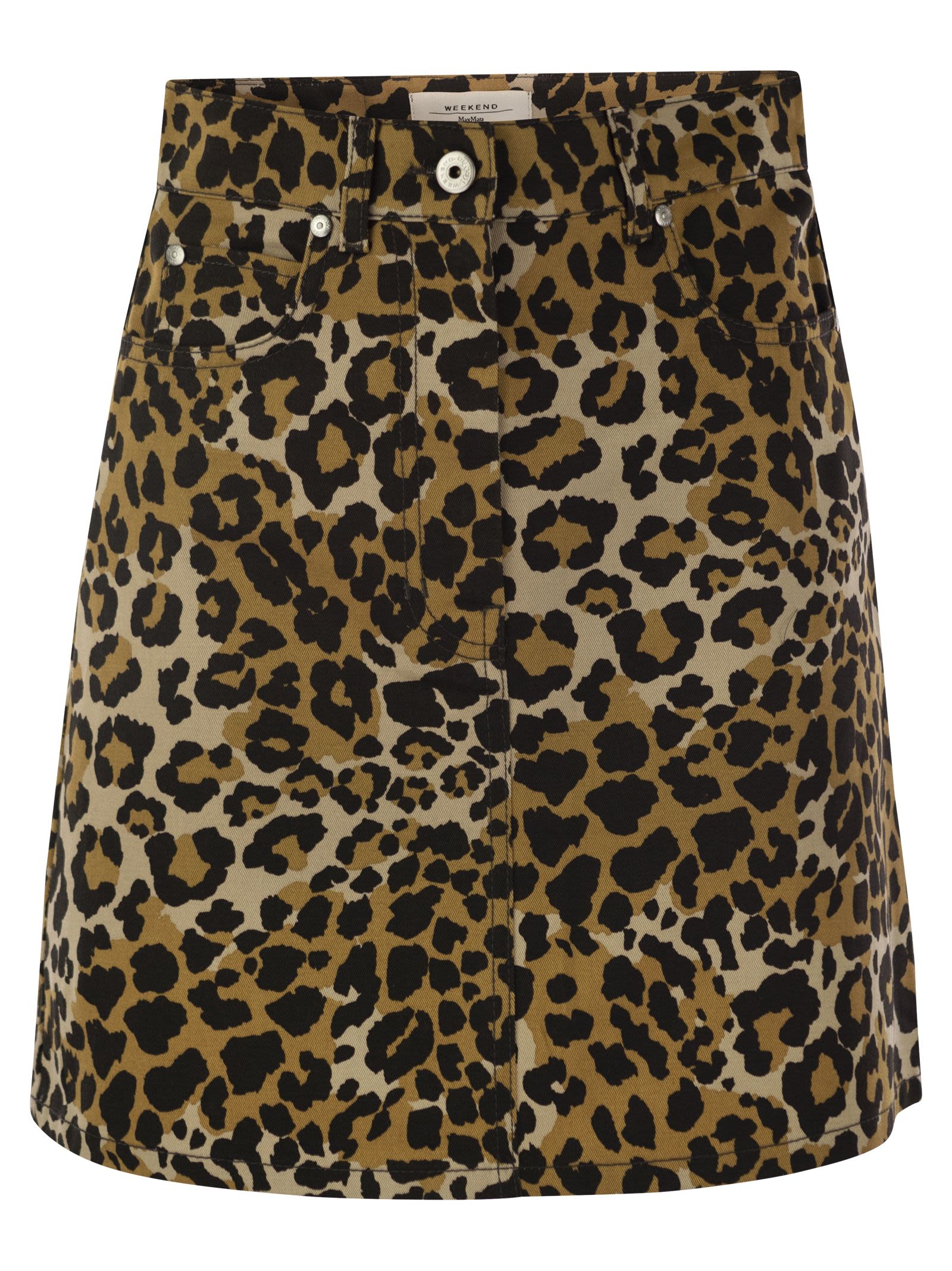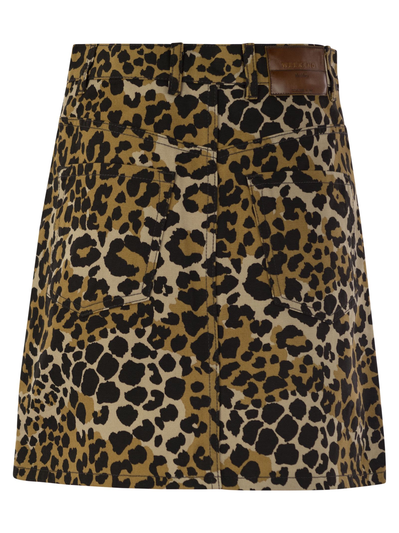 Mini falda de 5 bolsillos en taladro de algodón impreso, con una silueta ligeramente acampanada con detalles clásicos de estilo de mezclilla. Modelo sin frase, terminado con remaches de metal, bolsillos vascos y de parche en la parte posterior. - cierre delantero con cremallera y botón cubierto - Longitud sobre la rodilla - 5 bolsillos ID de diseñador: 2415101072600 001