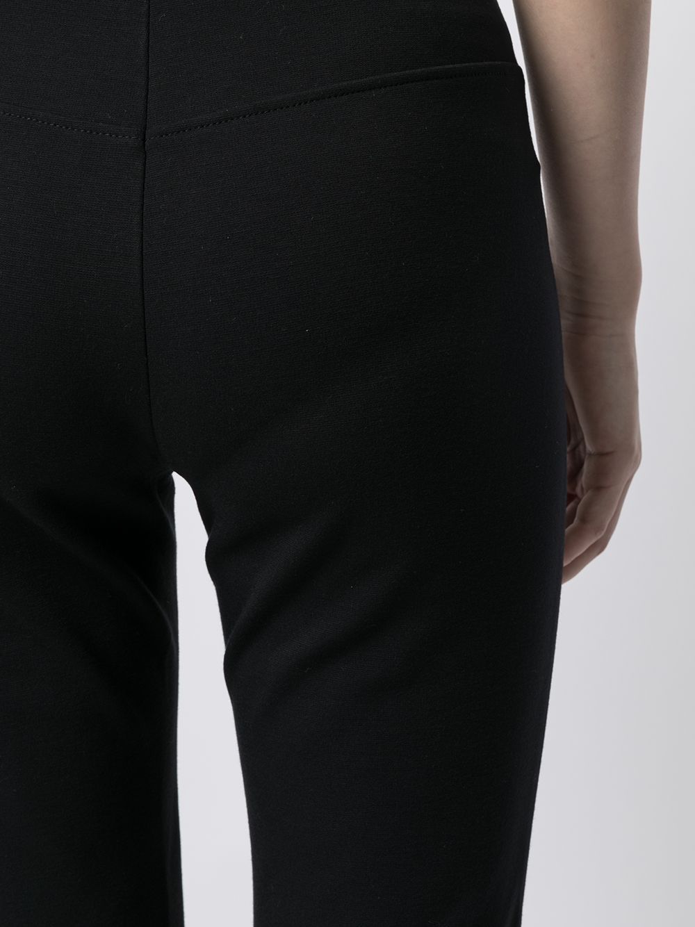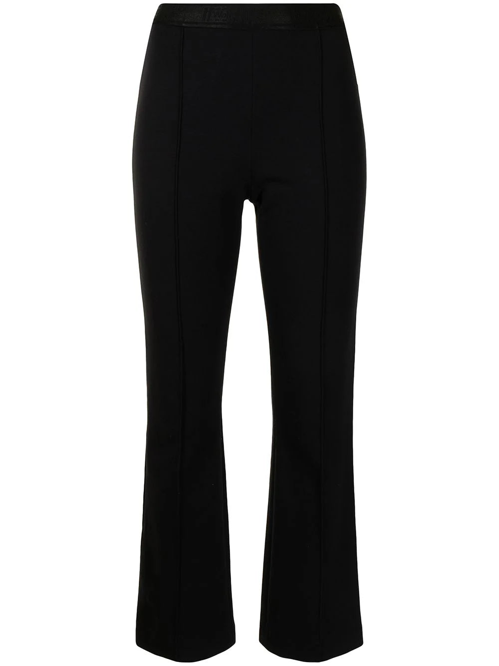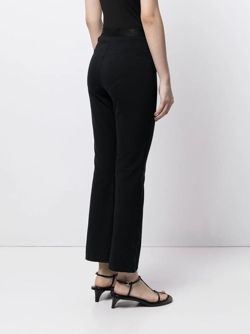 Cintura alta, corte delgado y diseño recortado. De color negro.