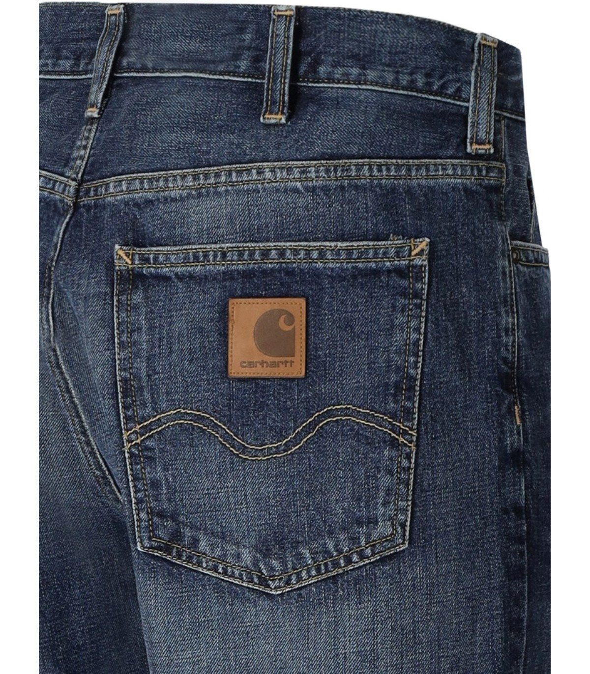Le jean Marlow Wip Marlow Carhartt est fabriqué à partir de coton de lavage moyen. Cinq poches, boucles de ceinture, patch de logo sur la poche arrière. Taille régulière, fermeture éclair et fermeture de bouton. Ajustement droit détendu, longueur 32. Composition: 100% coton. Doublure de poche: 65% de polyester, 35% de coton.
