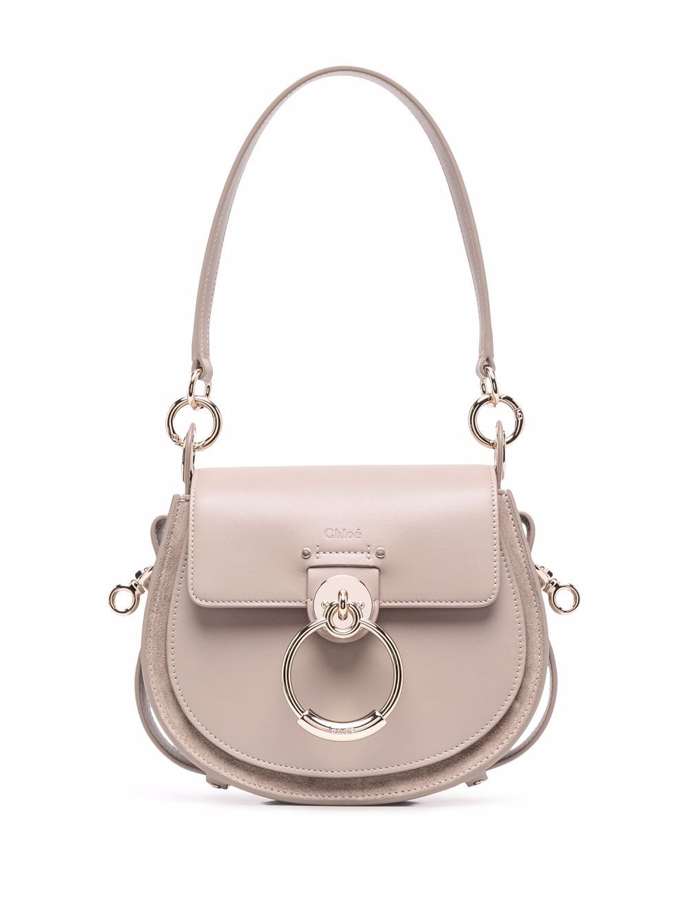 Sac à corps crossbody Tess Small Crossbody de pierre de Chloé avec des détails sur la quincaillerie en anneau, un logo en relief à l'avant, des coutures tonales, un compartiment principal, une poche coulissante interne, une poche de glissement à l'avant, un haut de pliage avec une fixation magnétique, une poignée supérieure détachable et une épaule détachable et épaule détachable sangle.