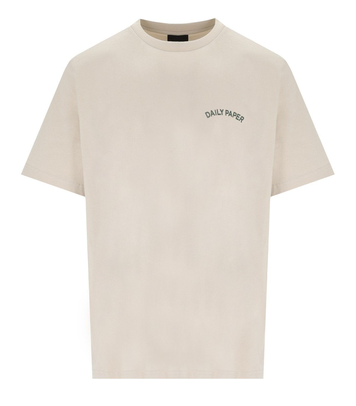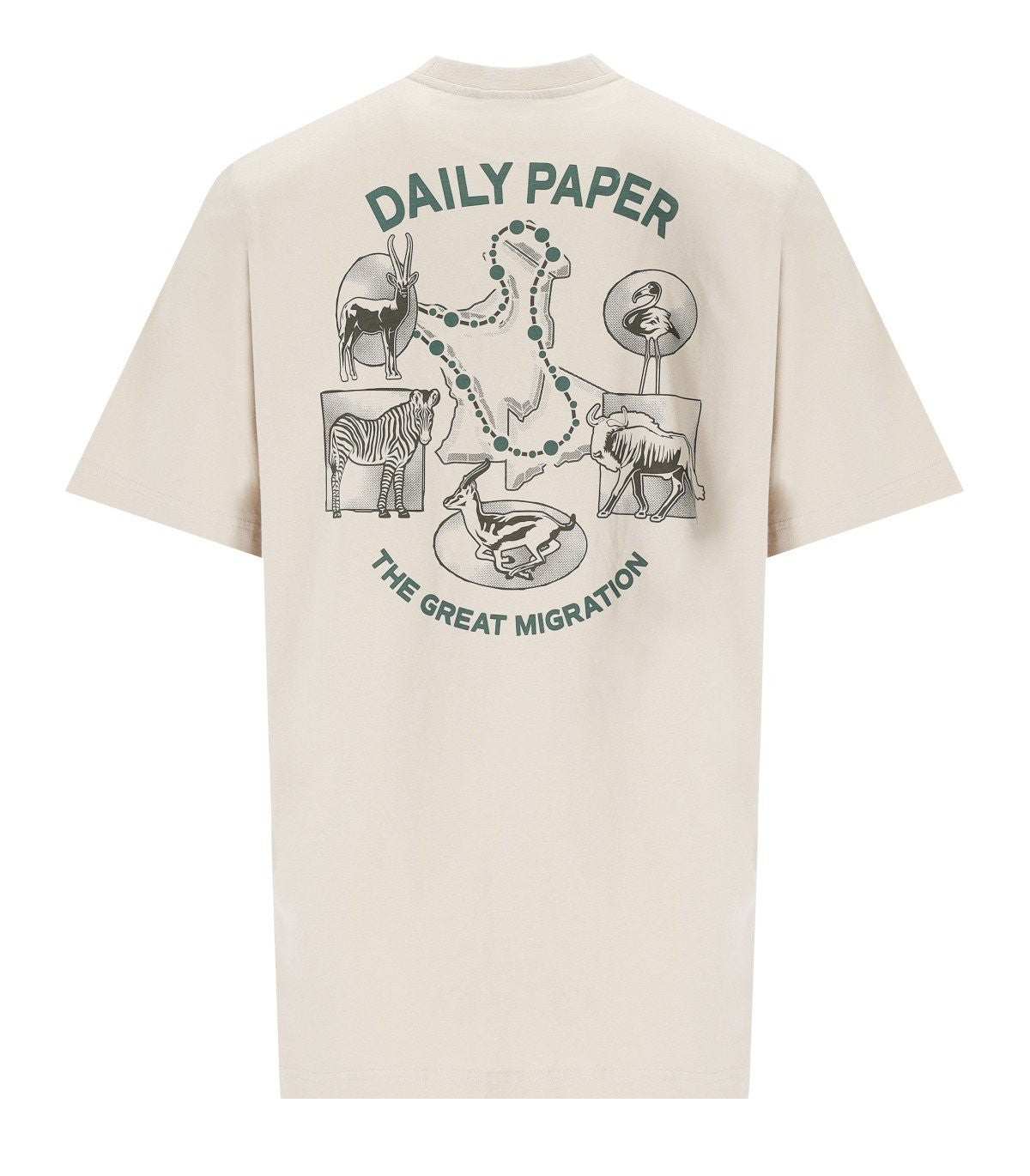 T-shirt de migration par papier quotidien fabriqué en coton beige avec des impressions de logo contrastées sur la poitrine et le dos. Ajustement détendu. Composition: 100% coton.