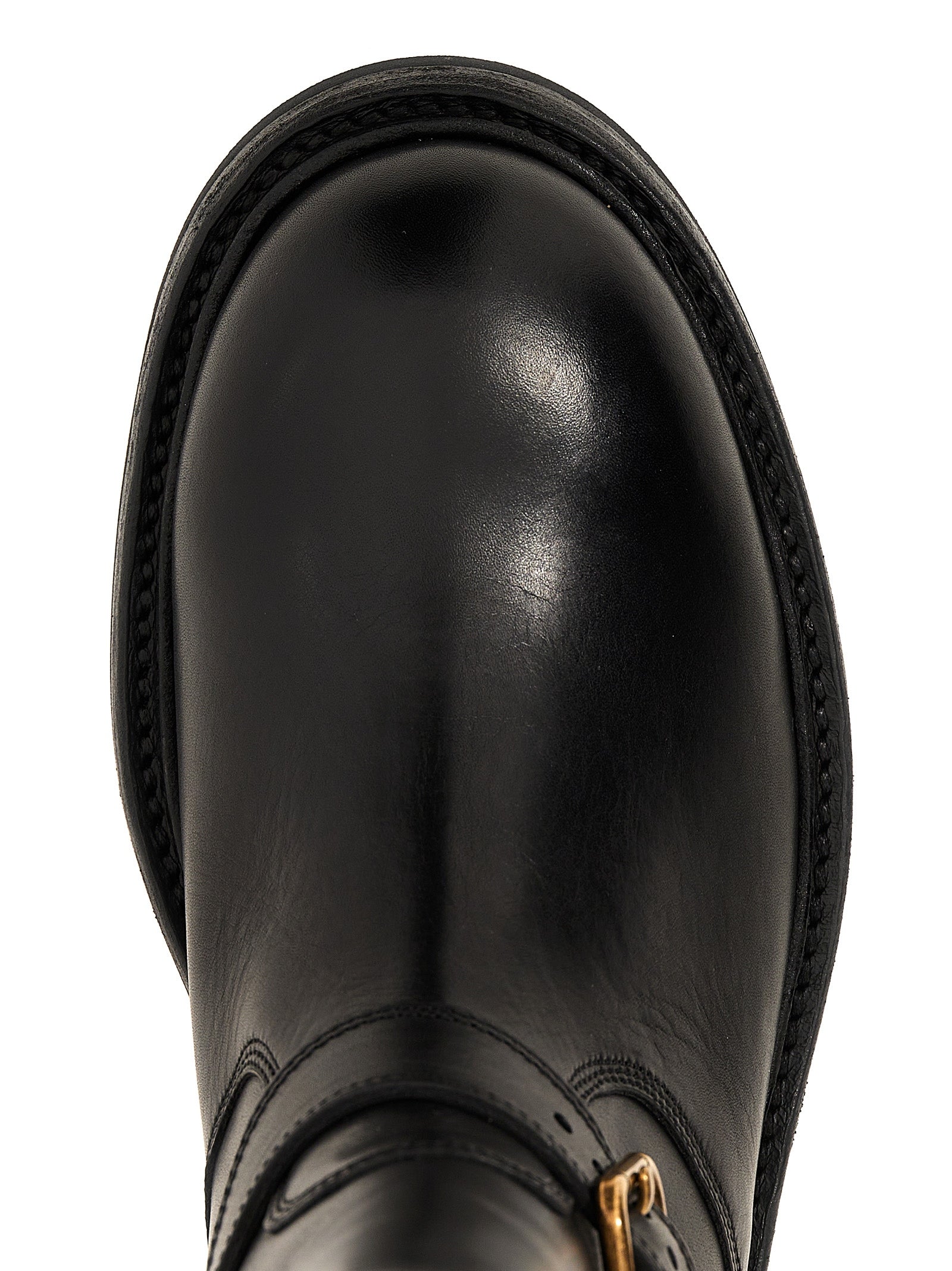 Bottes en cuir avec fermeture de fermeture éclair arrière, semelle en caoutchouc.
