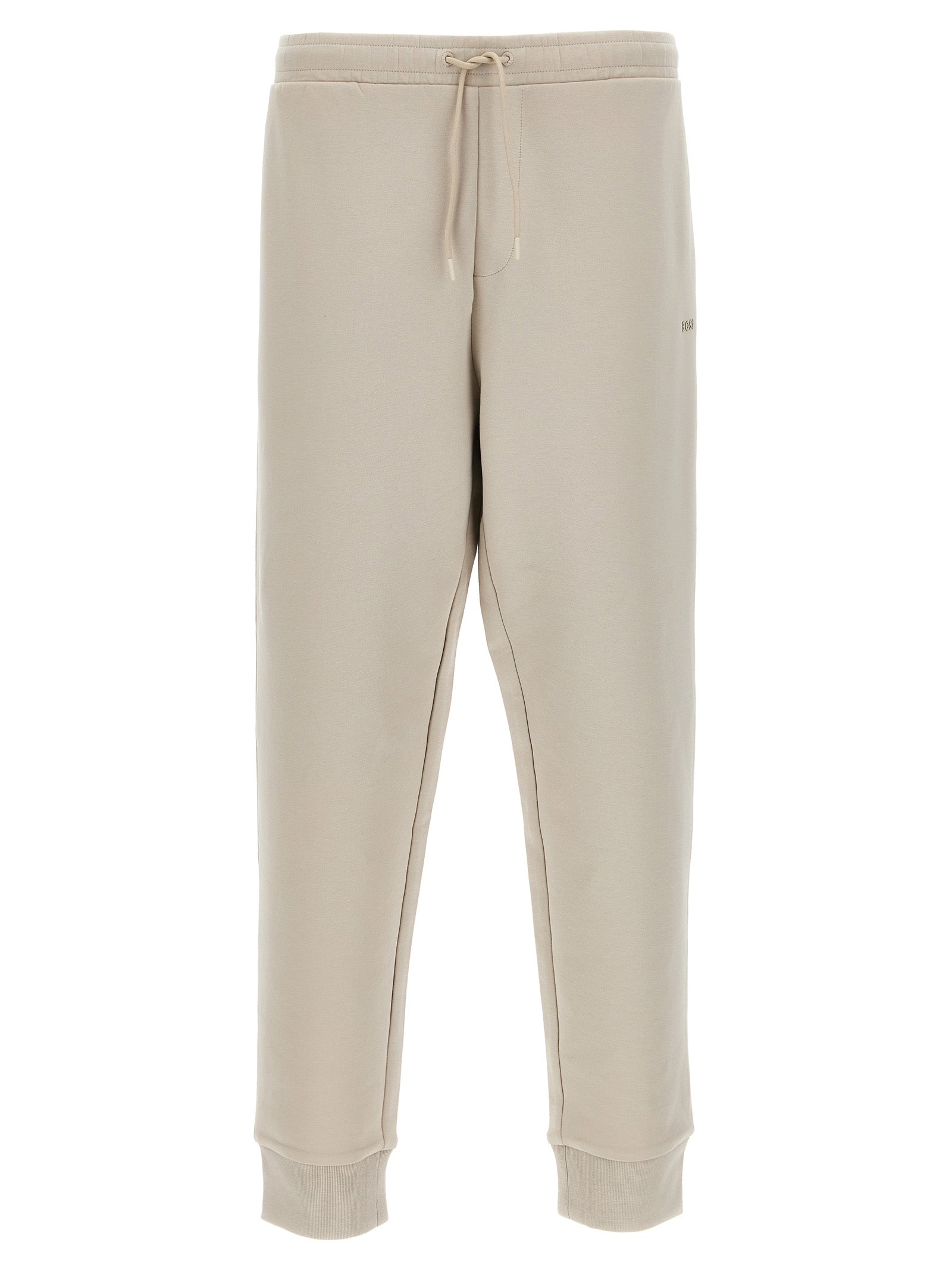 Les joggeurs de coton stretch 'hadiko' avec logo en relief avant, ceinture élastique avec cordon réglable, poches, jambe droite avec poignets élastiques. Sustainable: Ce produit est fabriqué avec du coton à partir de l'agriculture régénérative.