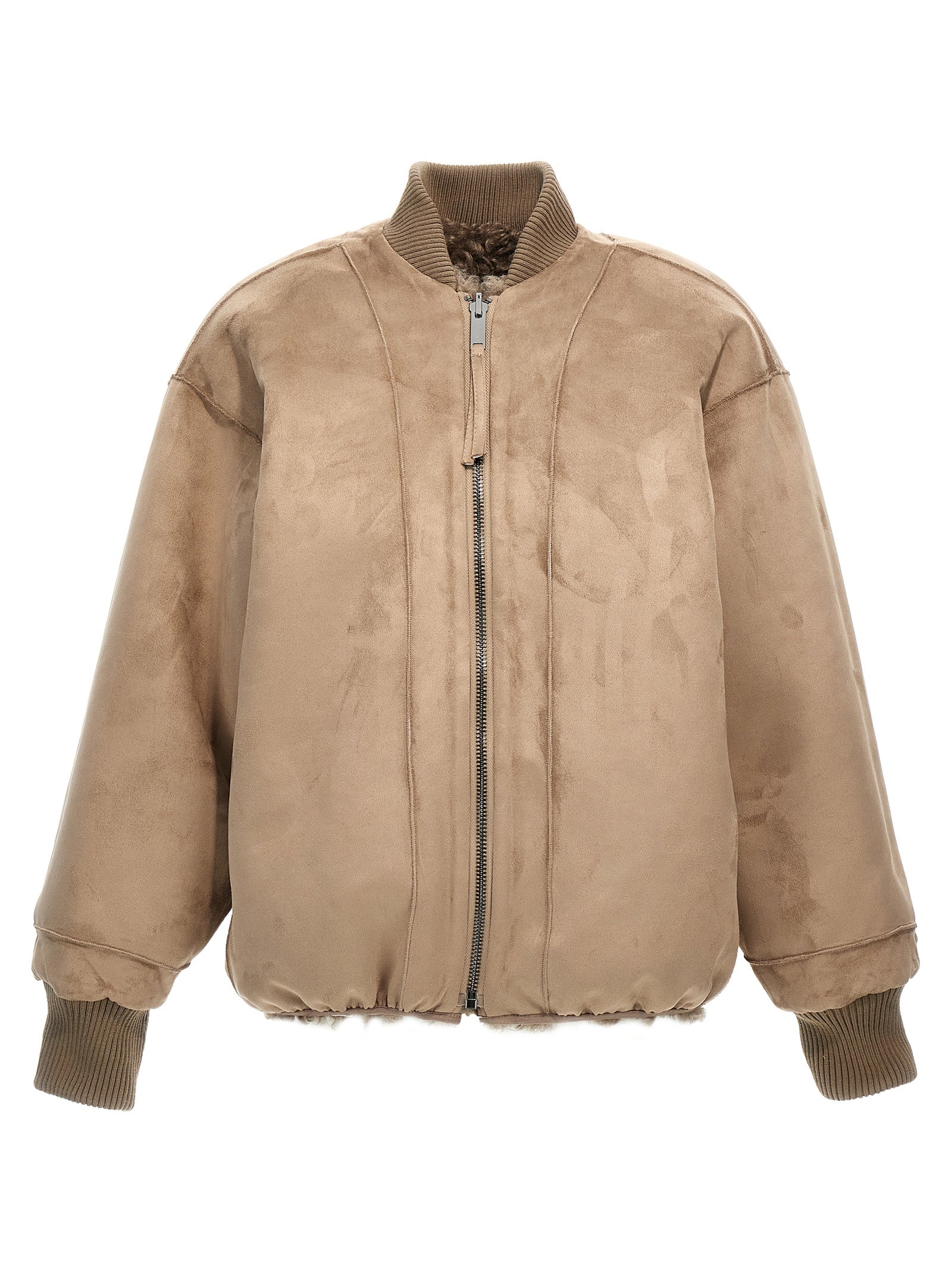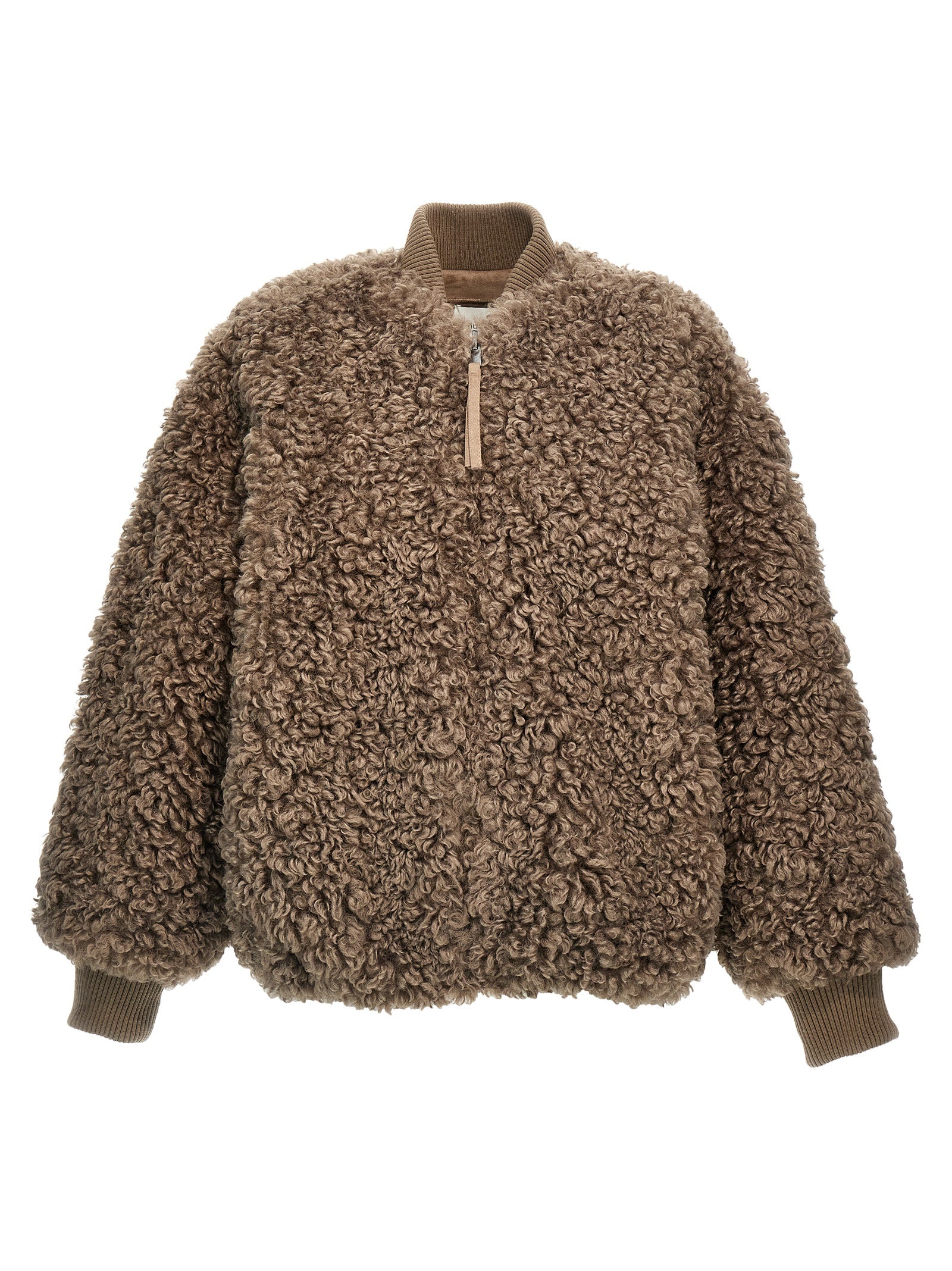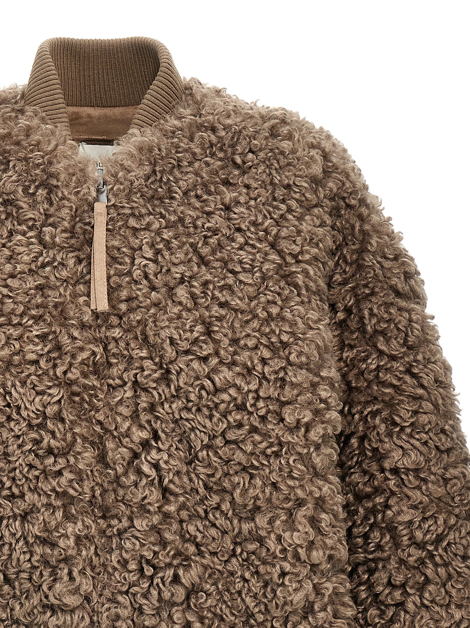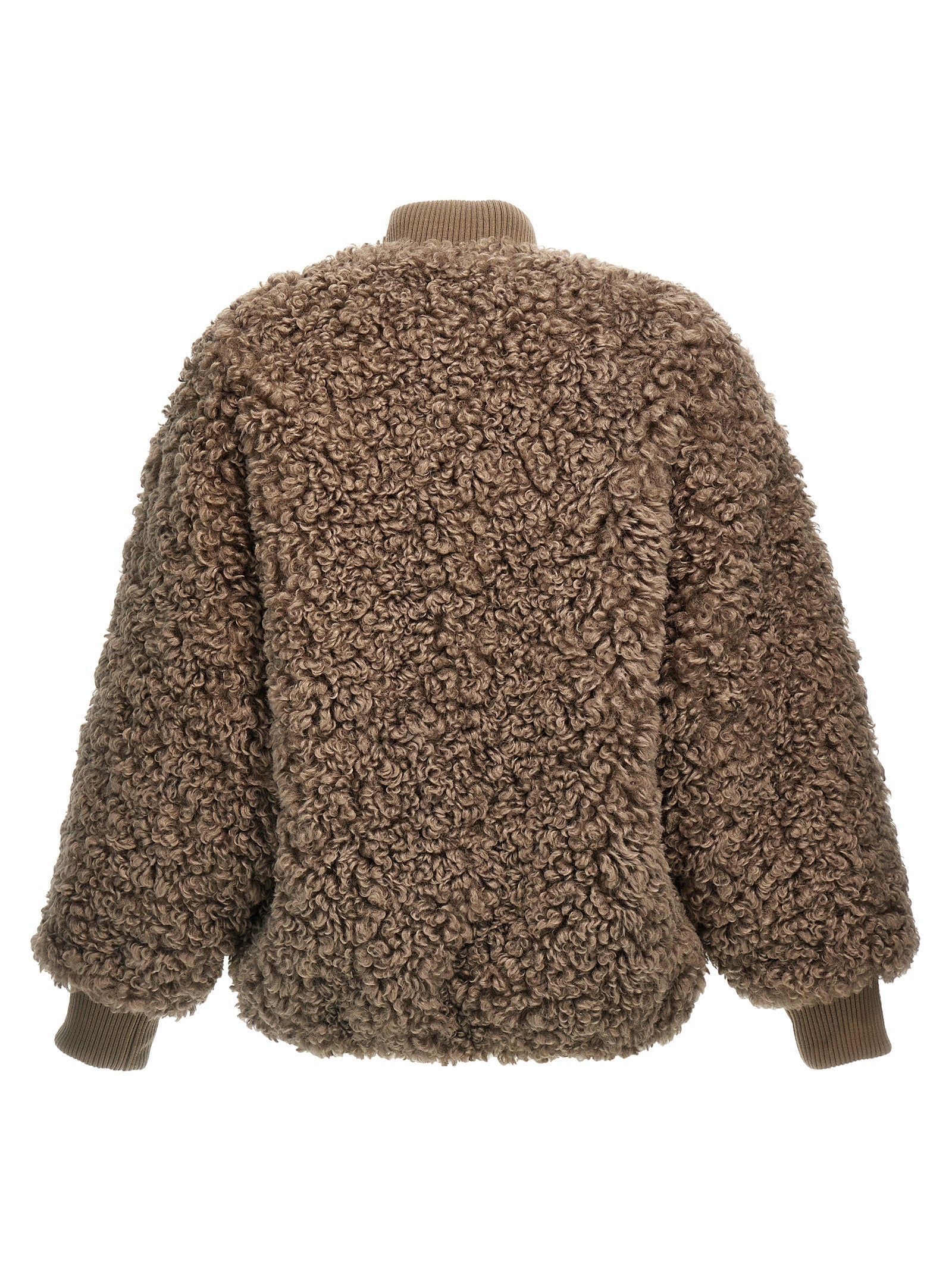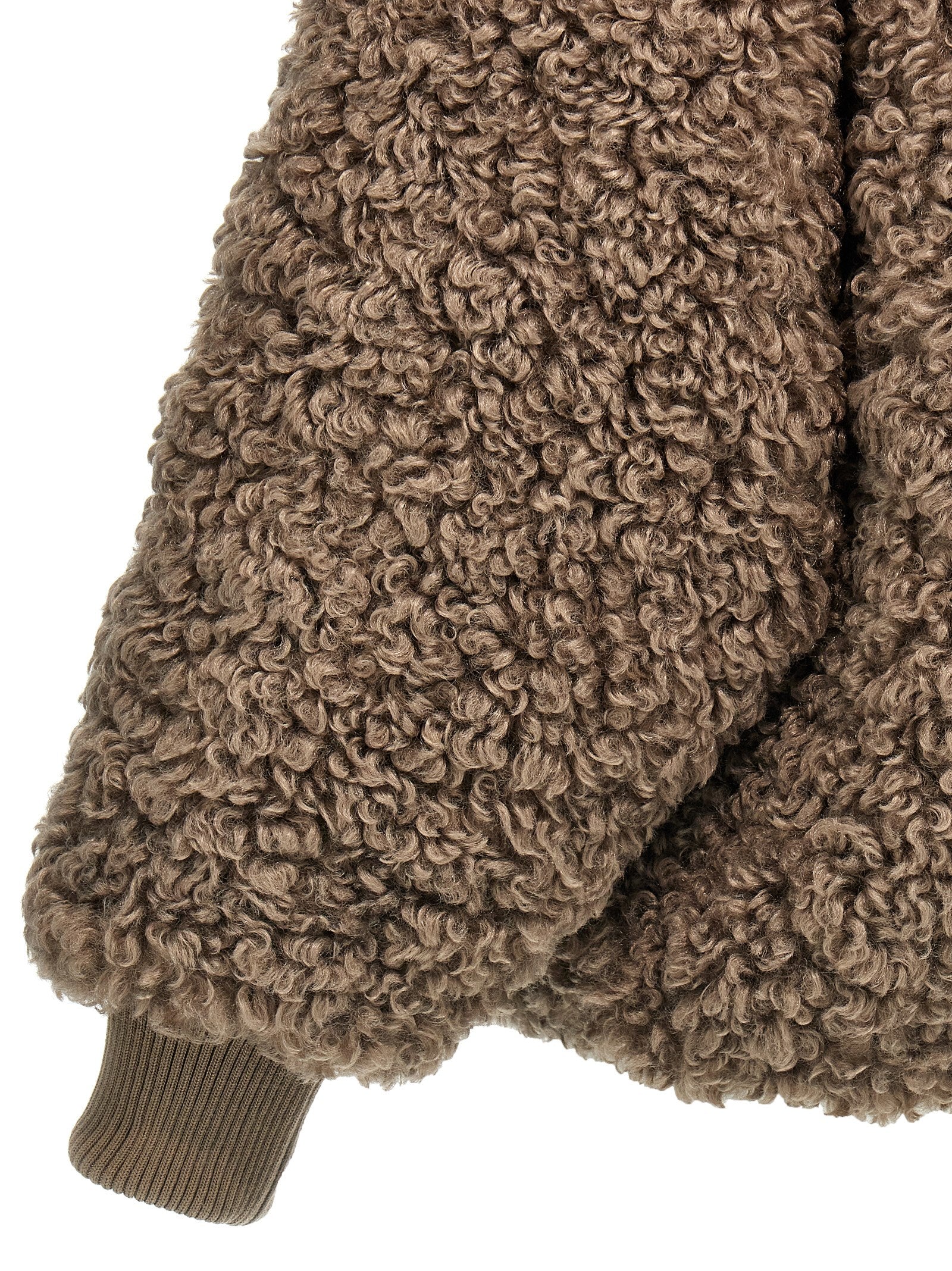 Bomber à fourrure en fausse fourrure hérisson, fermeture à fermeture éclair, poches, manches longues avec poignets tricotés.