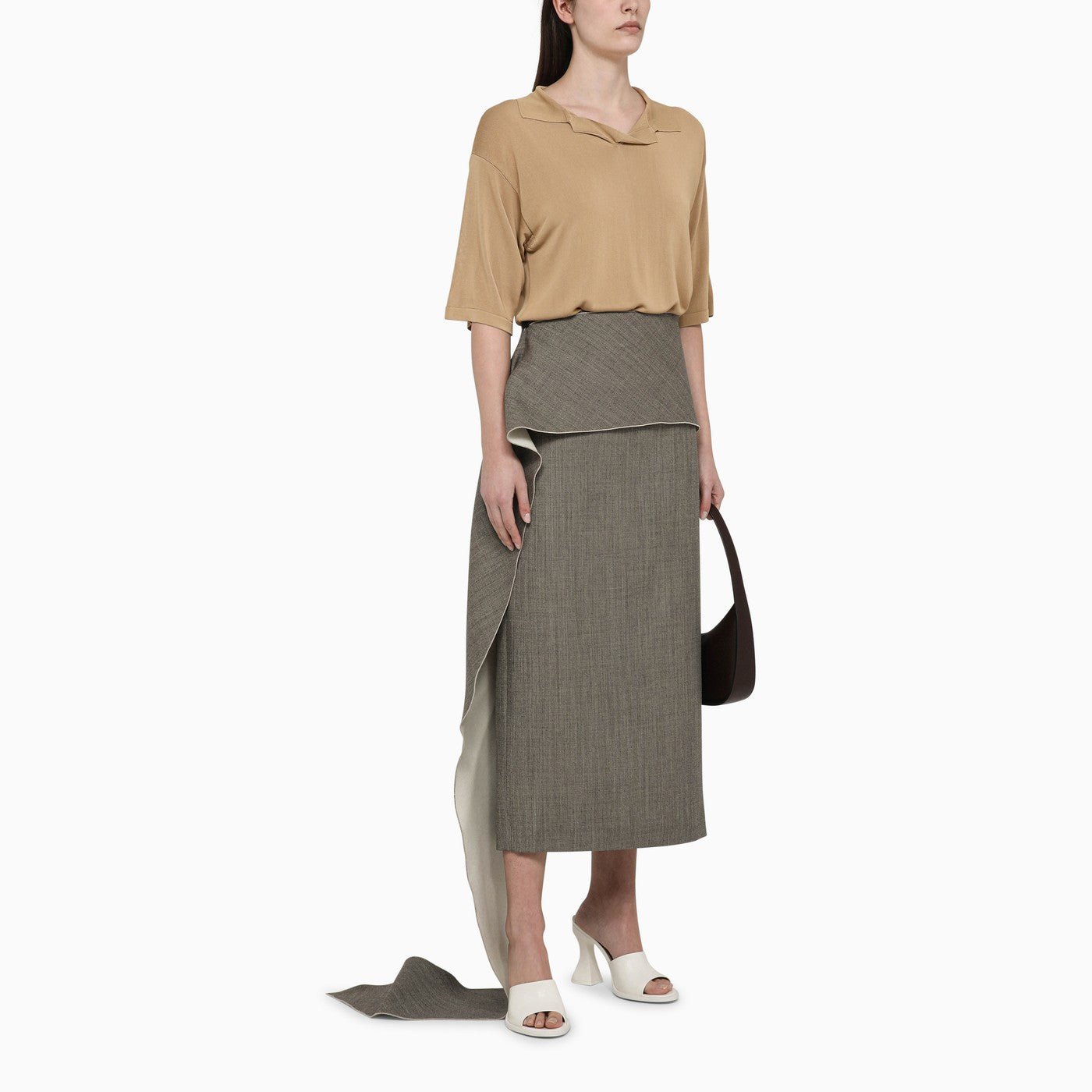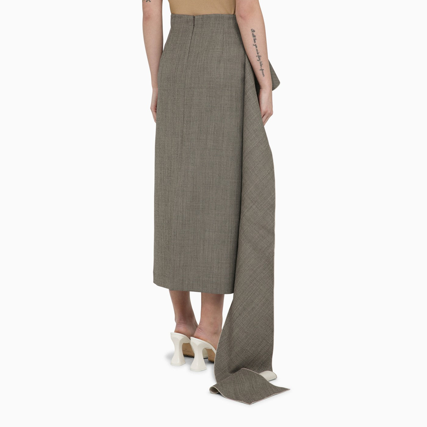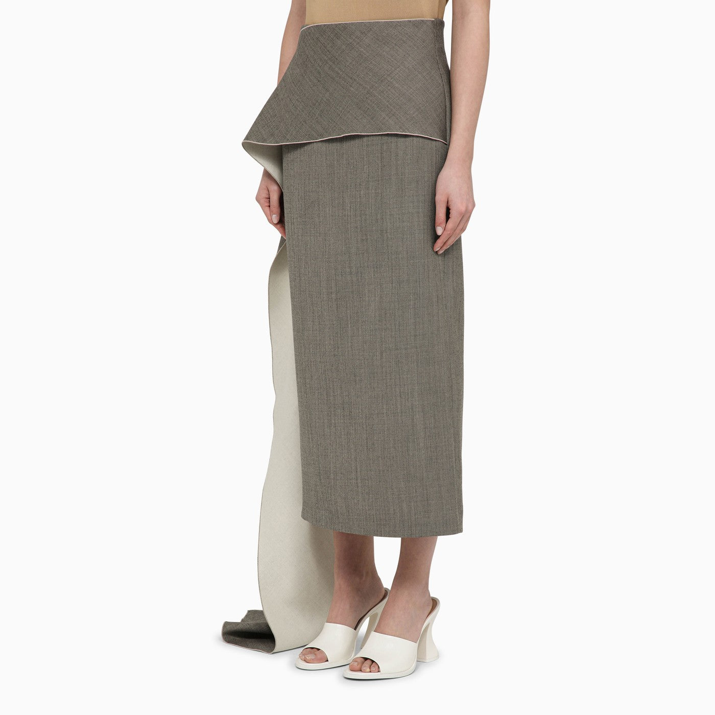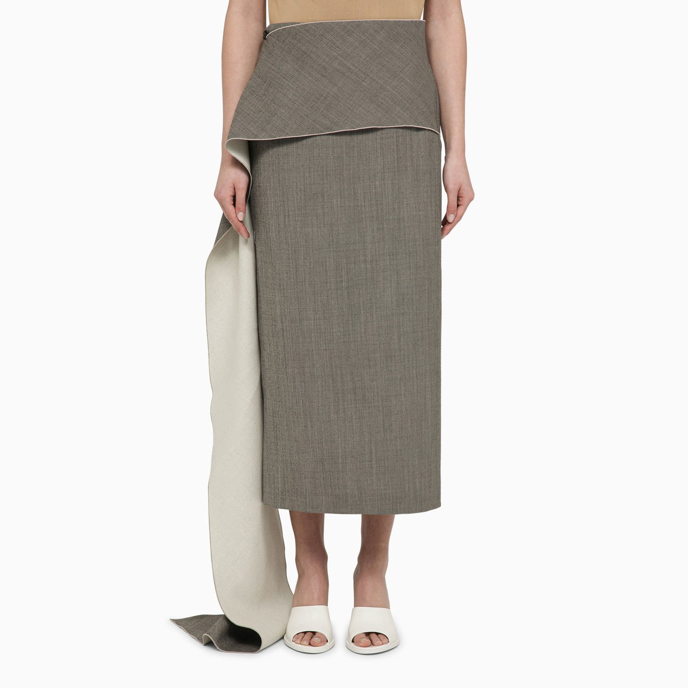 La jupe en laine blanche / noire avec train latéral