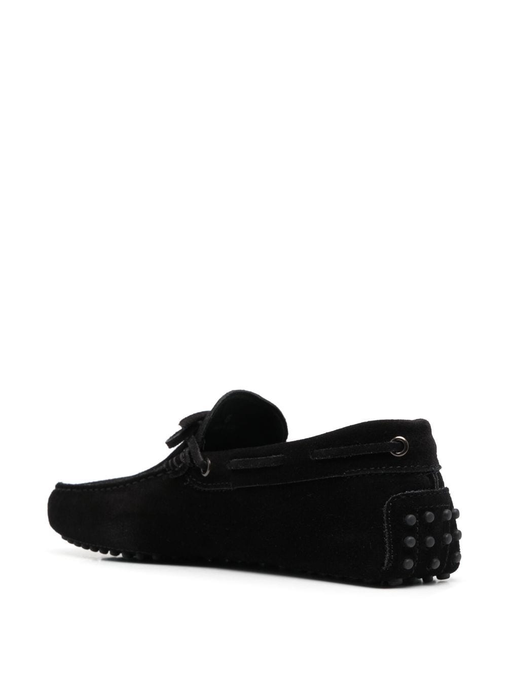 Modages en daim à l'arc de Tod 'S Avec du noir, du cuir veau, des détails d'arc, des coutures tonales, de l'orteil carré, de la semelle intérieure en cuir de marque et de la semelle en caoutchouc plat.