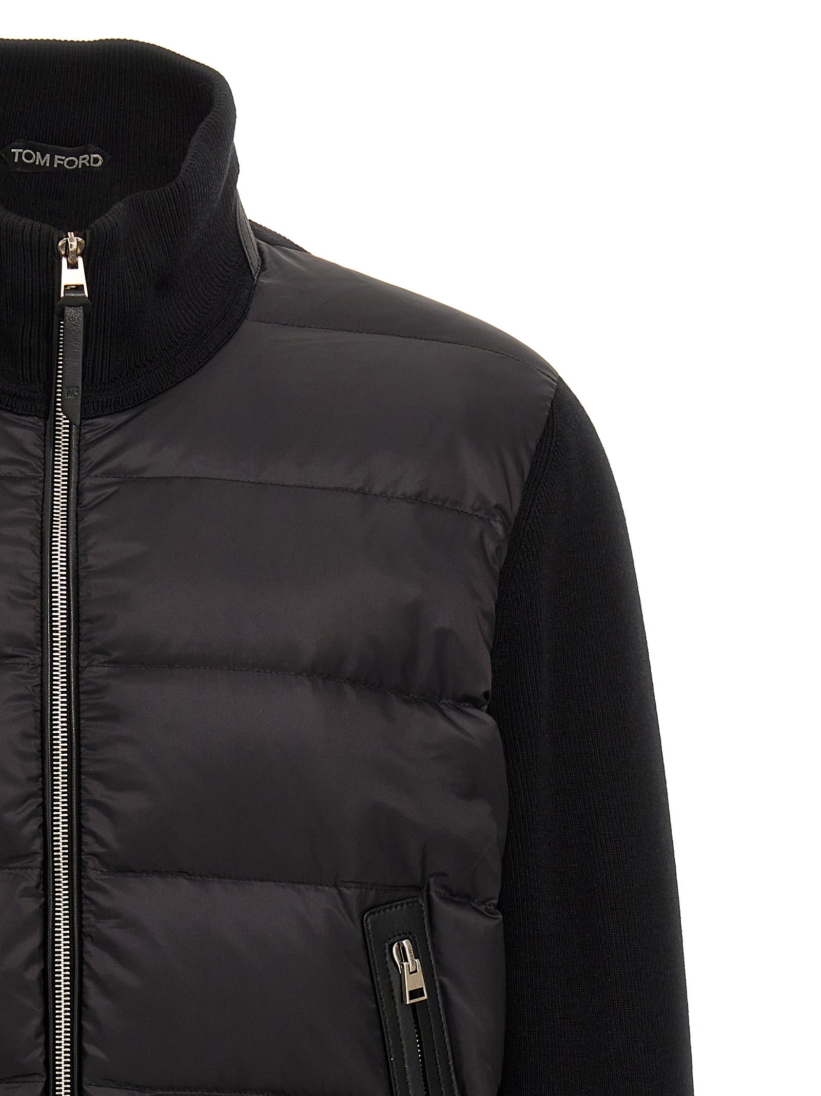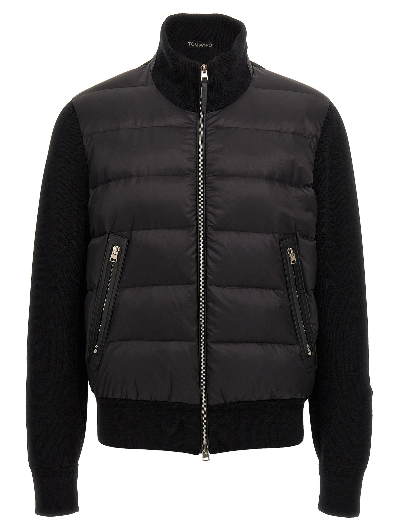 Veste en nylon matelassé, insert en tricot, fermeture de fermeture éclair, poches, manches longues.