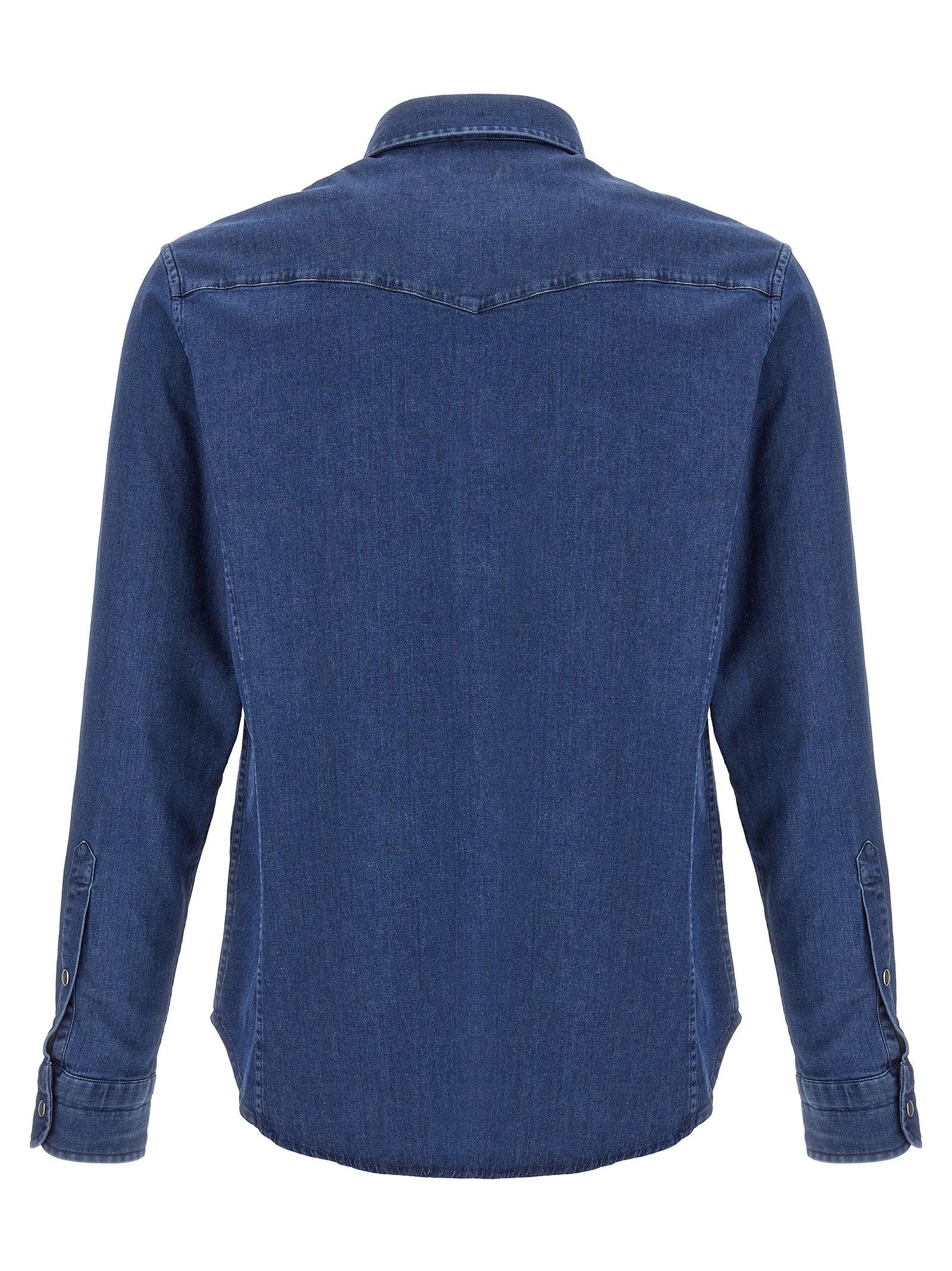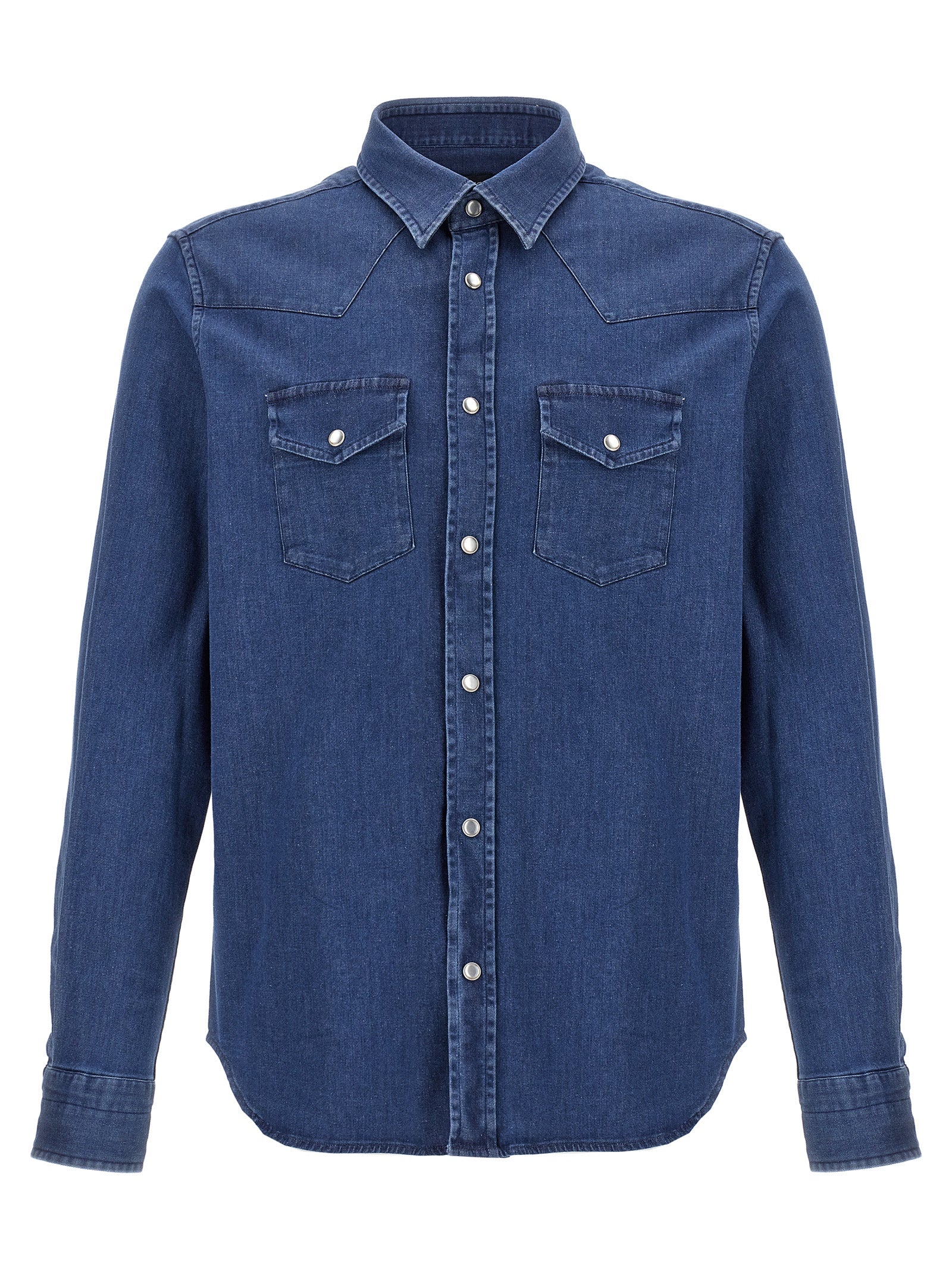 Chemise en denim en coton «Western» avec fermeture de bouton, poches avant, manches à revers longues.