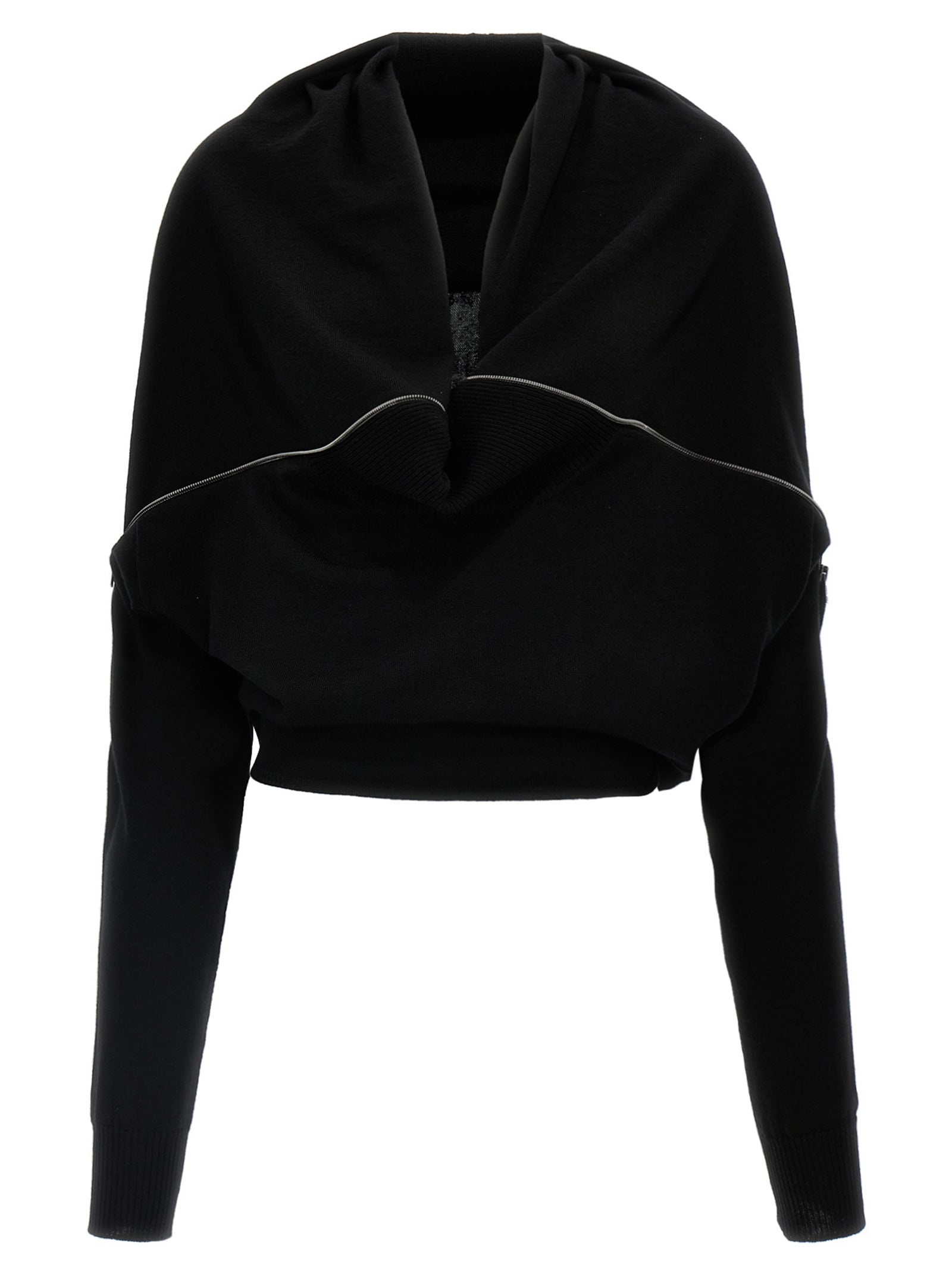 Pull en laine mérinos avec trrompe l«L'Oeil Zip, le col en V, les longues manches de chauve-souris avec des poignets.