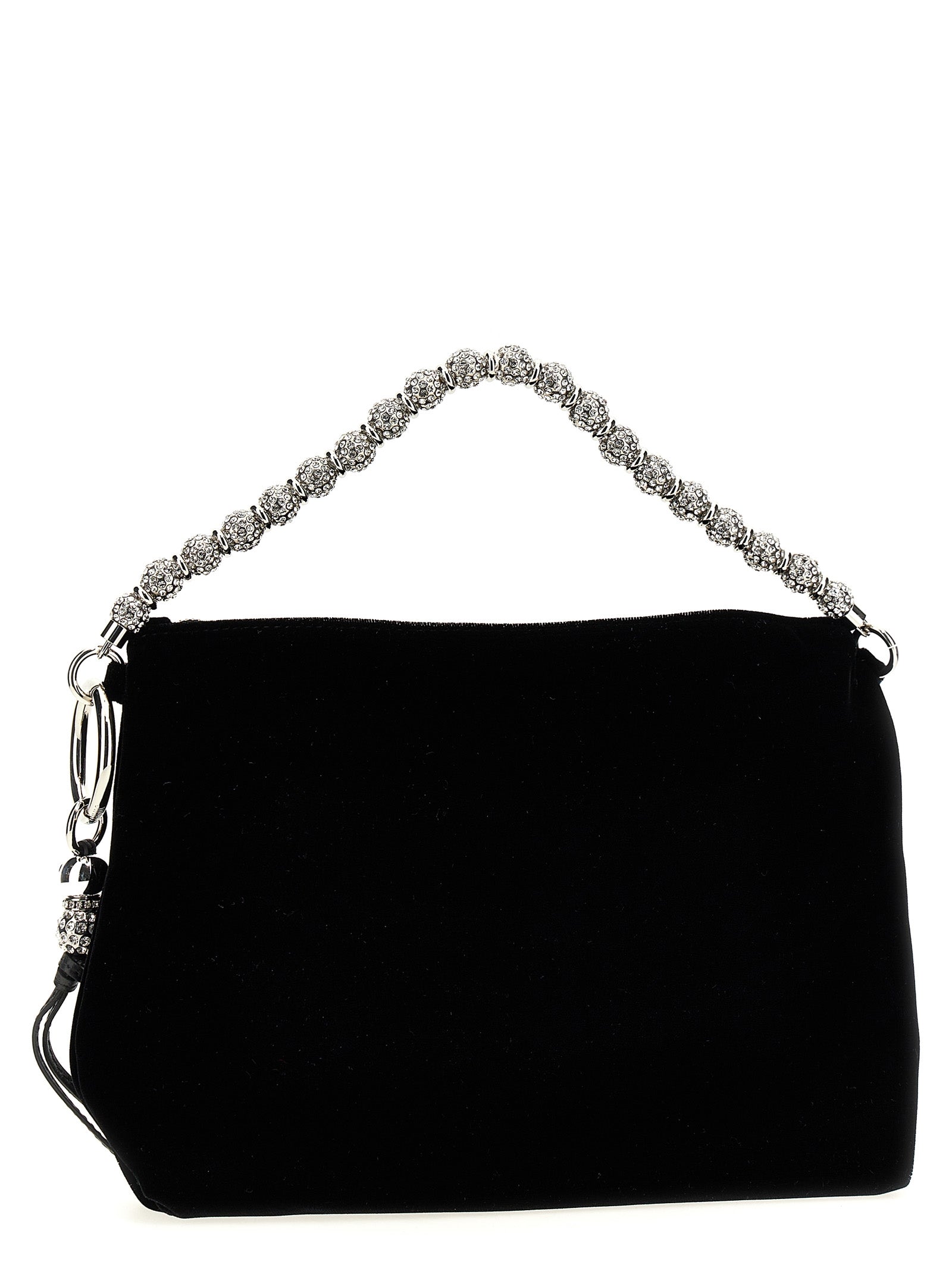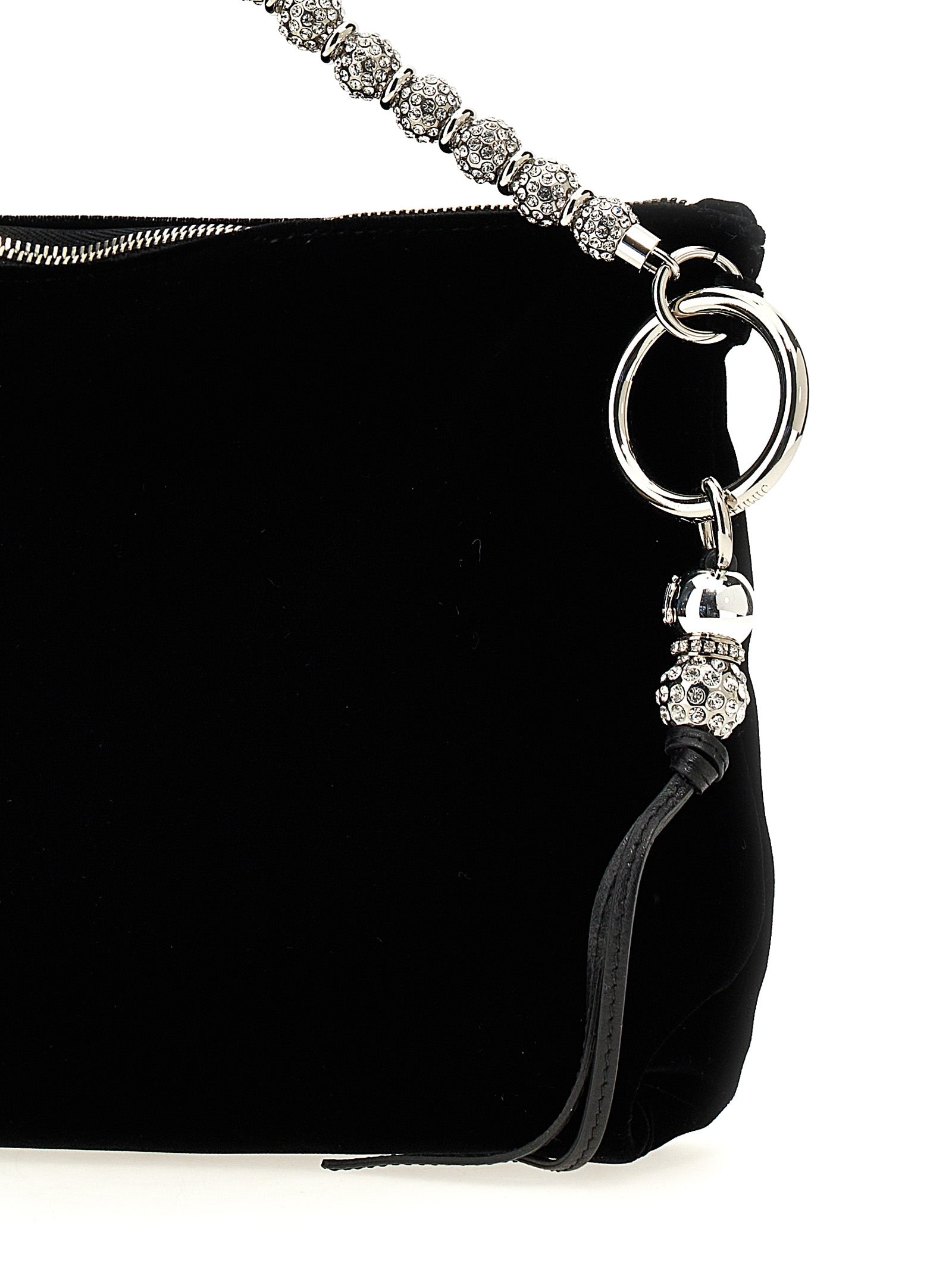 Le sac à main «Callie» dans Piqué Retourné Velvet, chaîne avec pavé en cristal, bandoulière à chaîne amovible, bague à glace, fermeture de fermeture éclair. Il peut être porté sur l'épaule en utilisant le bandoulière avec du pavé en cristal, ou vous pouvez obtenir une sangle en passant la chaîne dans le ring avec un gland.