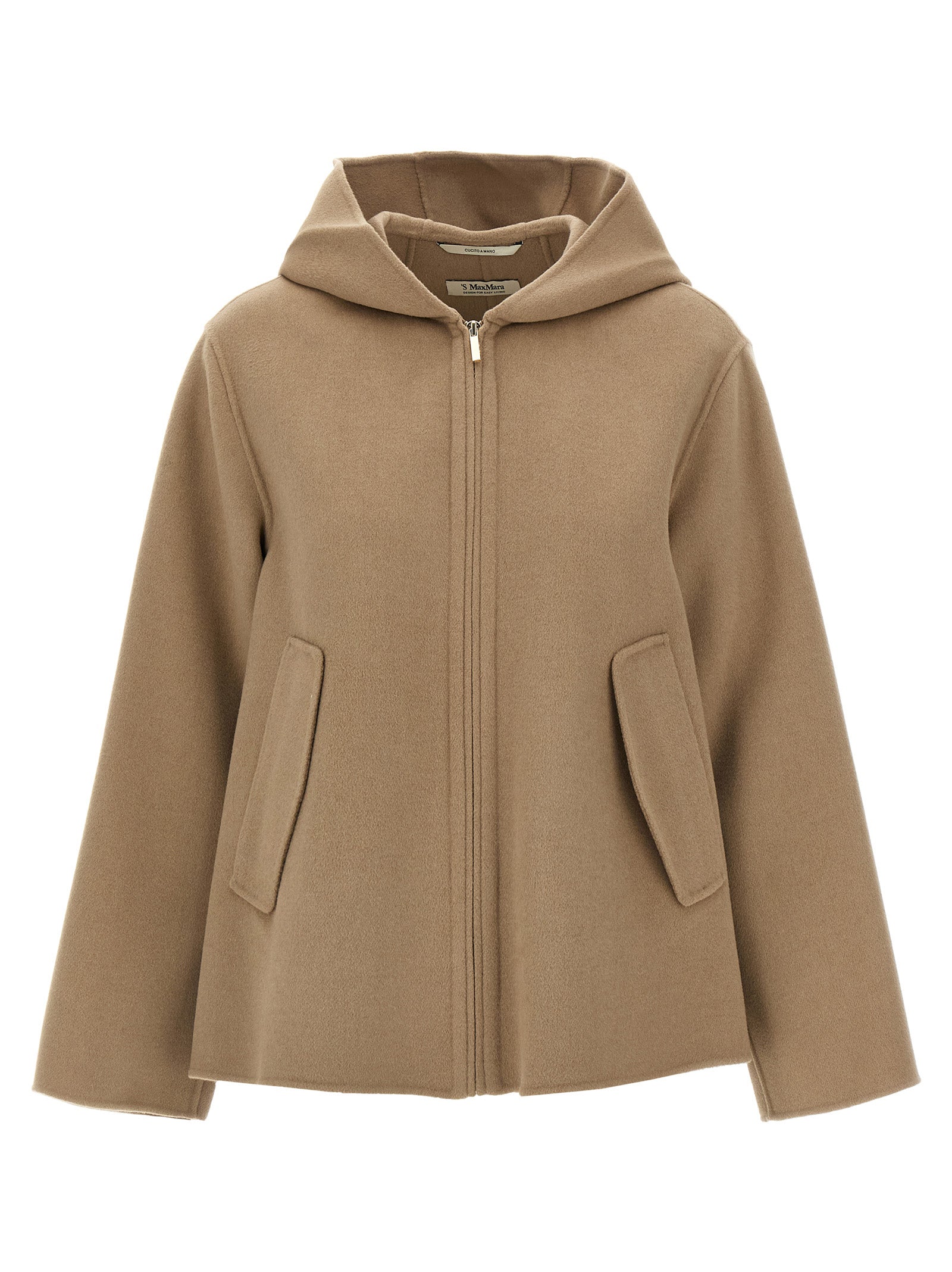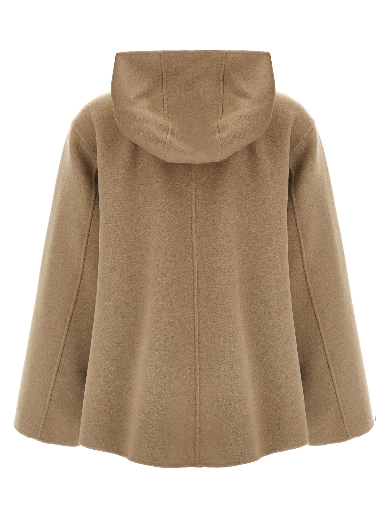 Veste 'Roland' en drap de pure laine cousu main, silhouette légèrement évasée, capuche, fermeture zippée sur le devant, poches, manches longues à épaules descendues, doublure en soie.