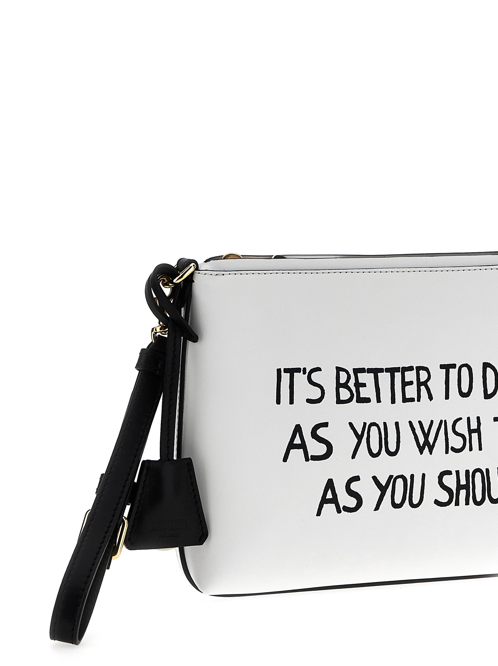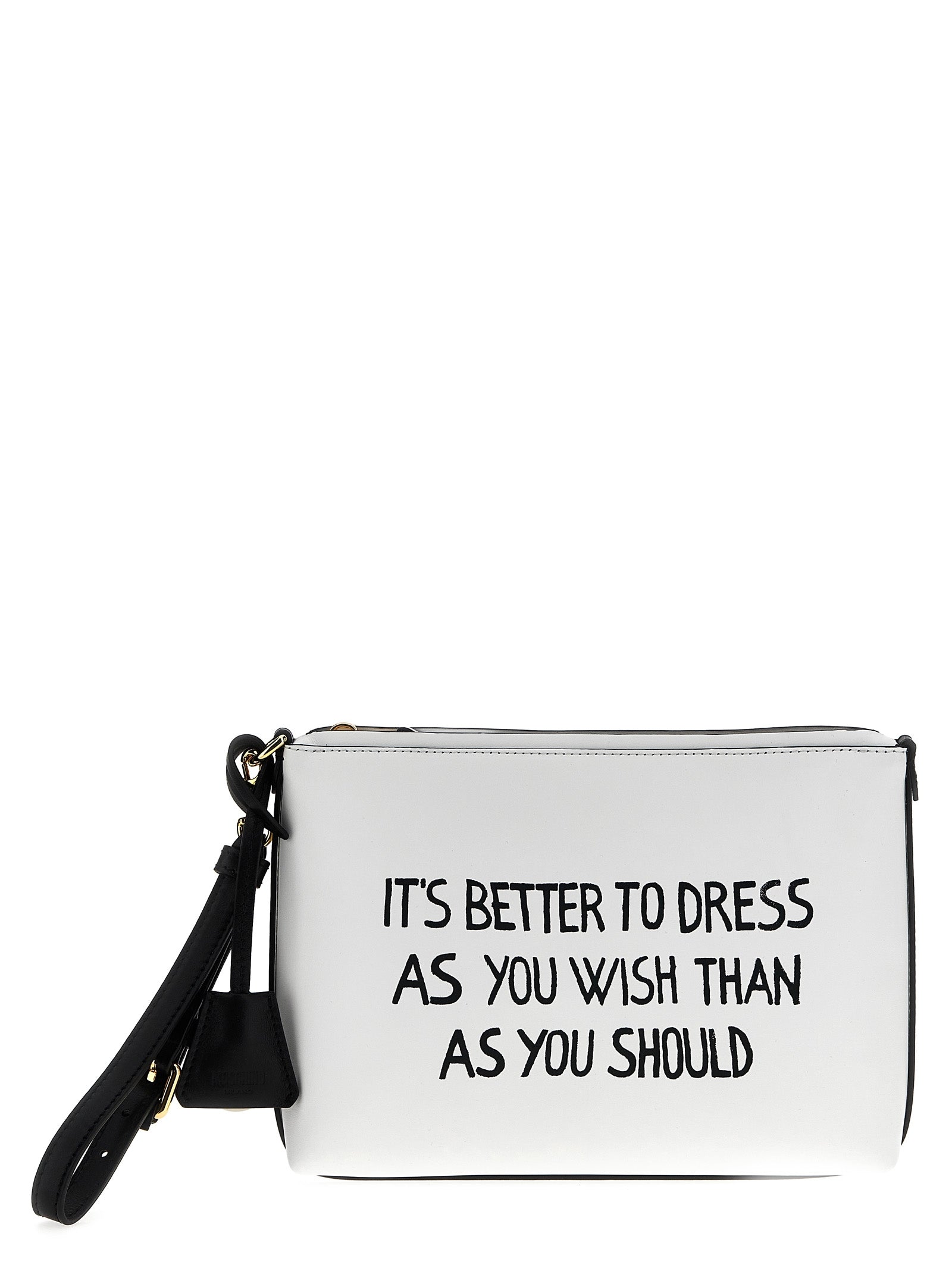 Sac d'embrayage en cuir 'Bustina' avec imprimé de logo avant, fermeture à fermeture éclair, poignée en cuir avec boucle réglable.