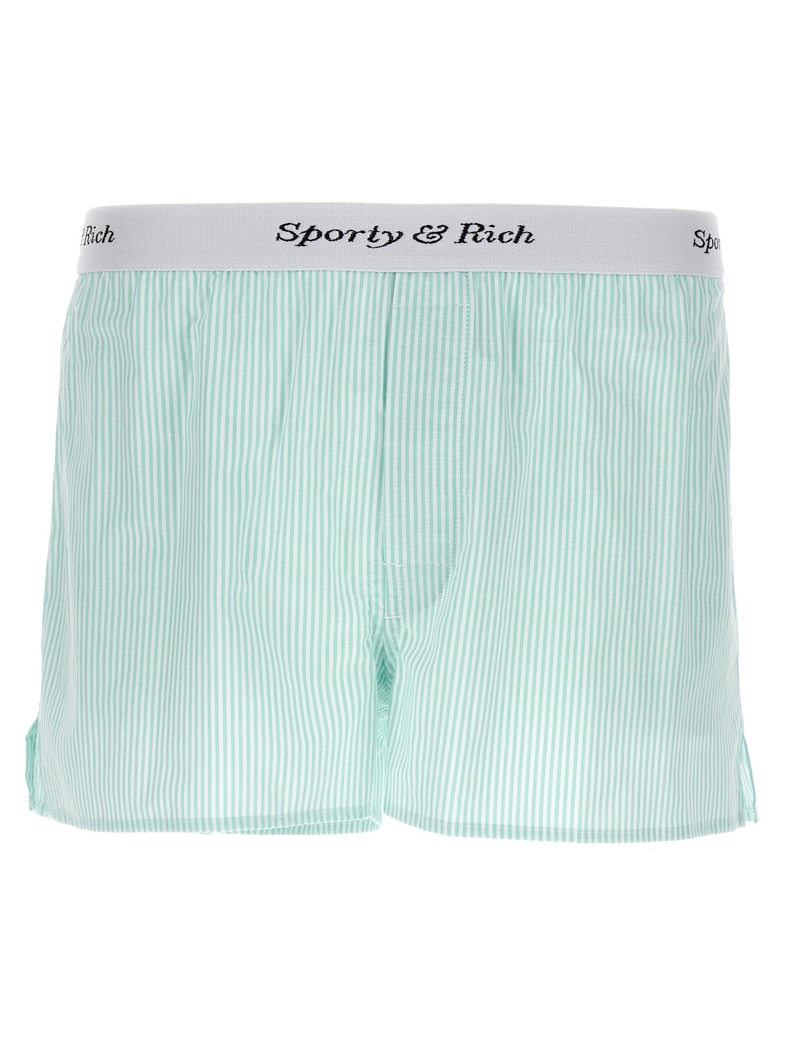 Shorts boxer en coton rayé avec logo élastique, rabat avant avec boutons.