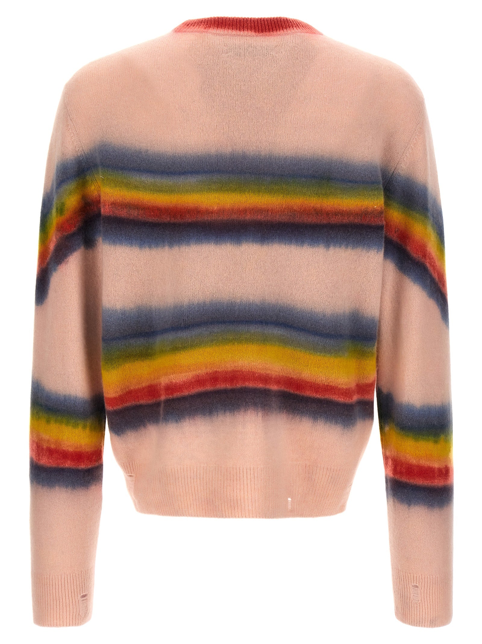 Rainbow Tie Dye 'Cashmere and Striped Wool Pull avec des détails d'effet d'occasion, de la broderie de logo, du chariot à l'équipage, des manches à revers longues.