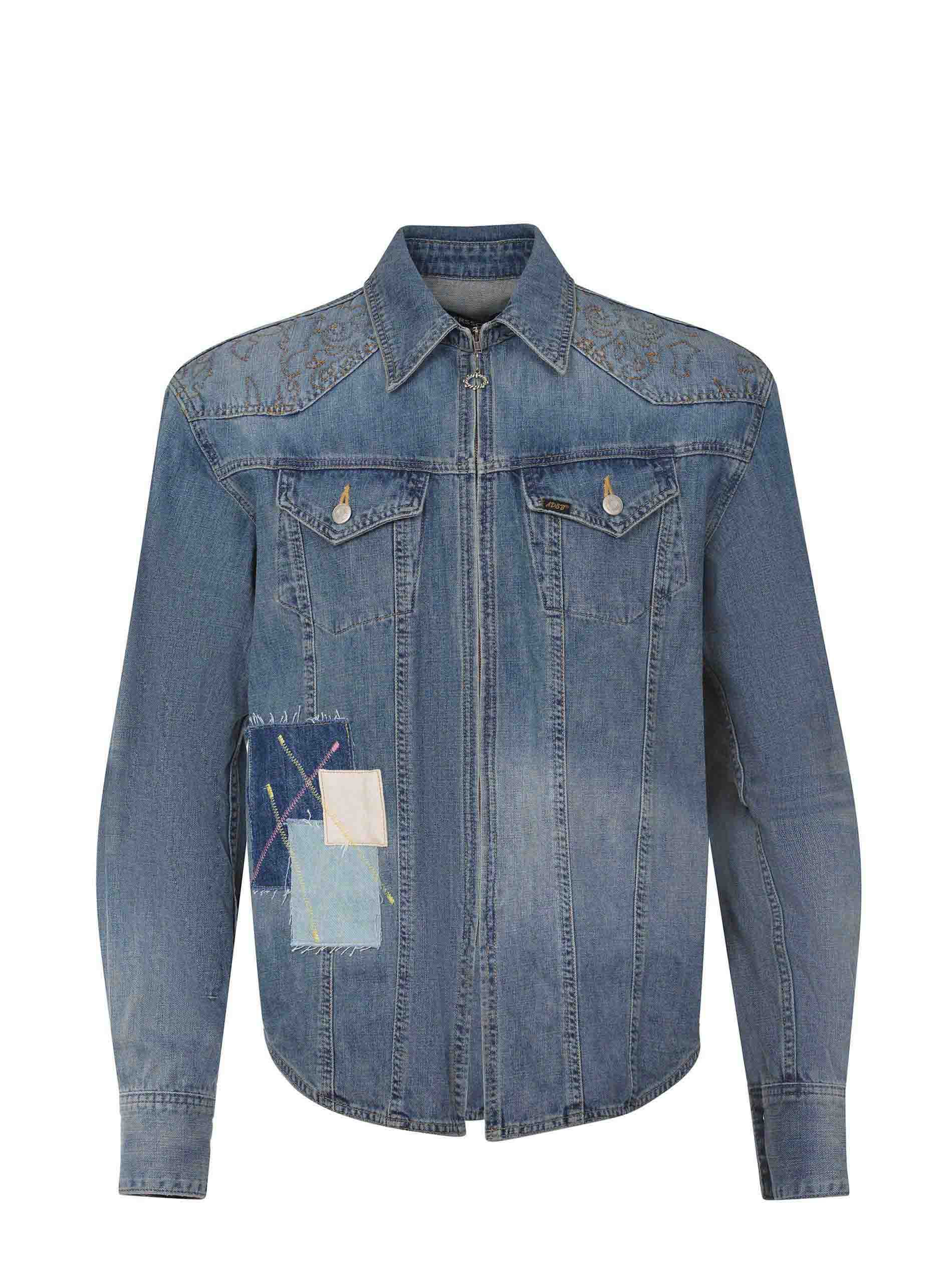Chemise Bell Andersson en denim bleu moyen. Manches. Cuffs avec boutons. Col classique. Fermeture à fermeture éclair sur le devant. Poches de poitrine avec rabat et bouton. Détails de patch brodés contrastés sur le côté. 100% coton