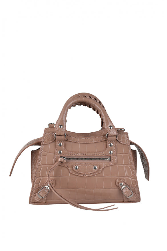 Balenciaga Mini Neo City Bag en crocodile d'imitation rose.