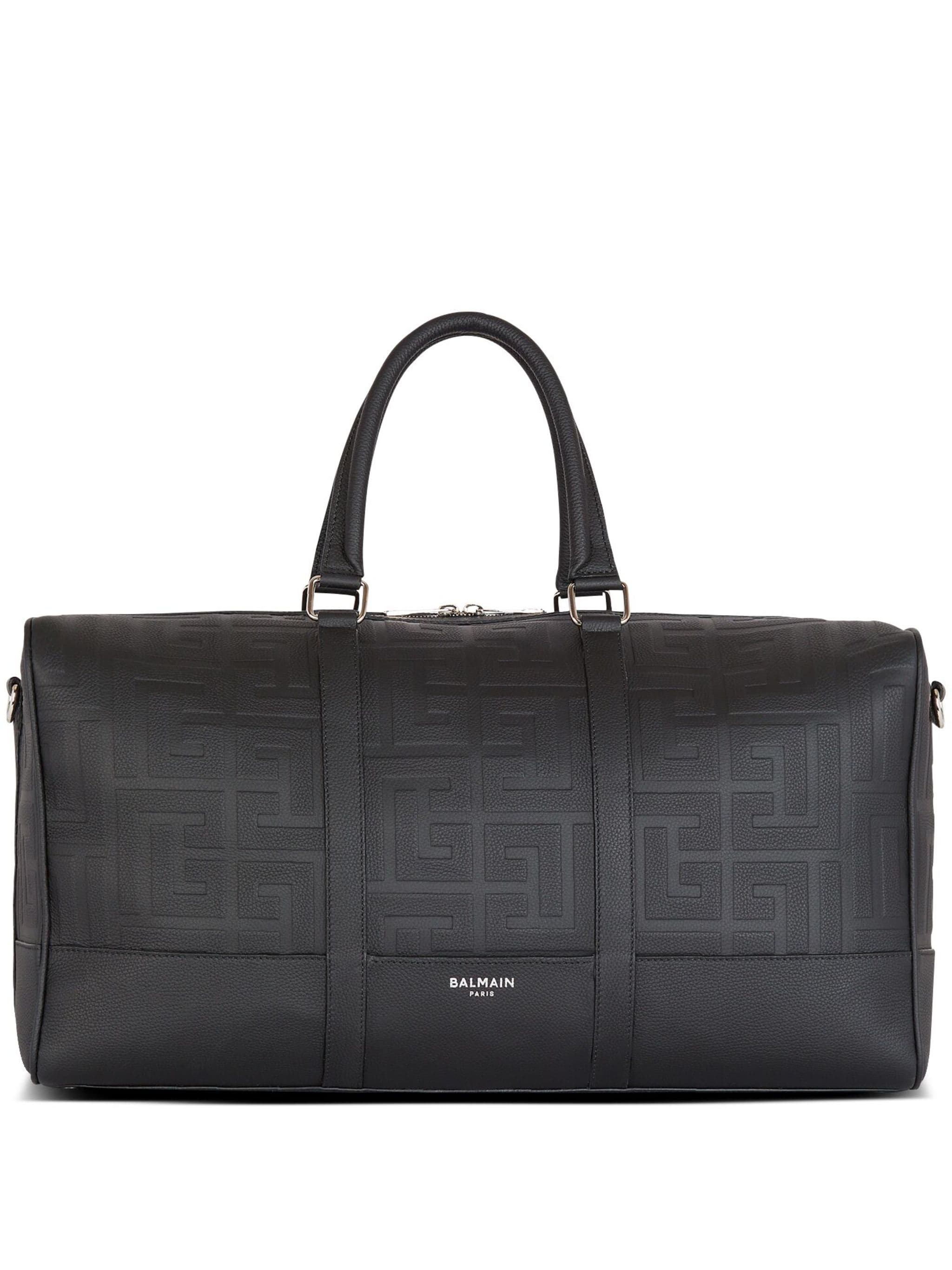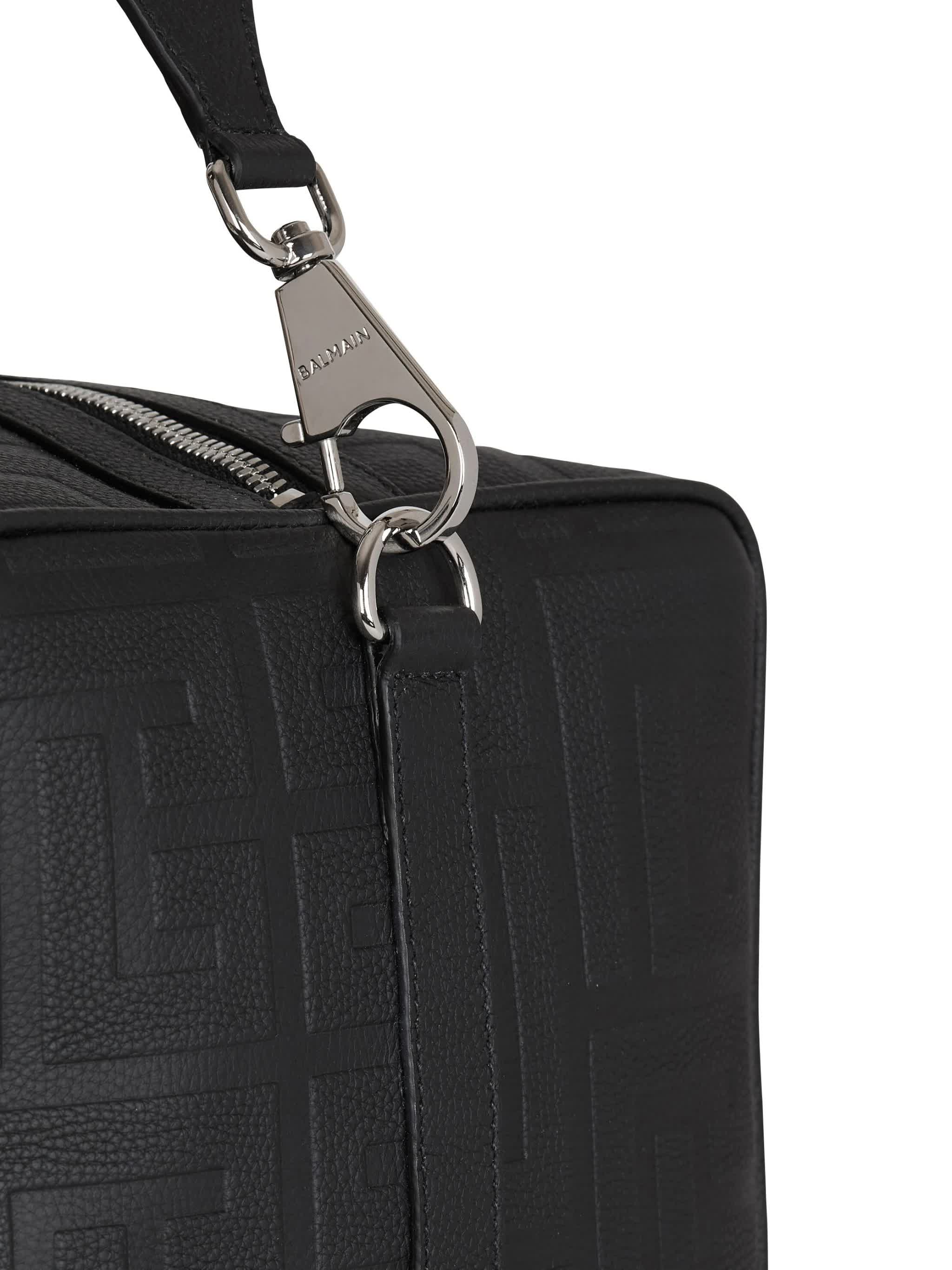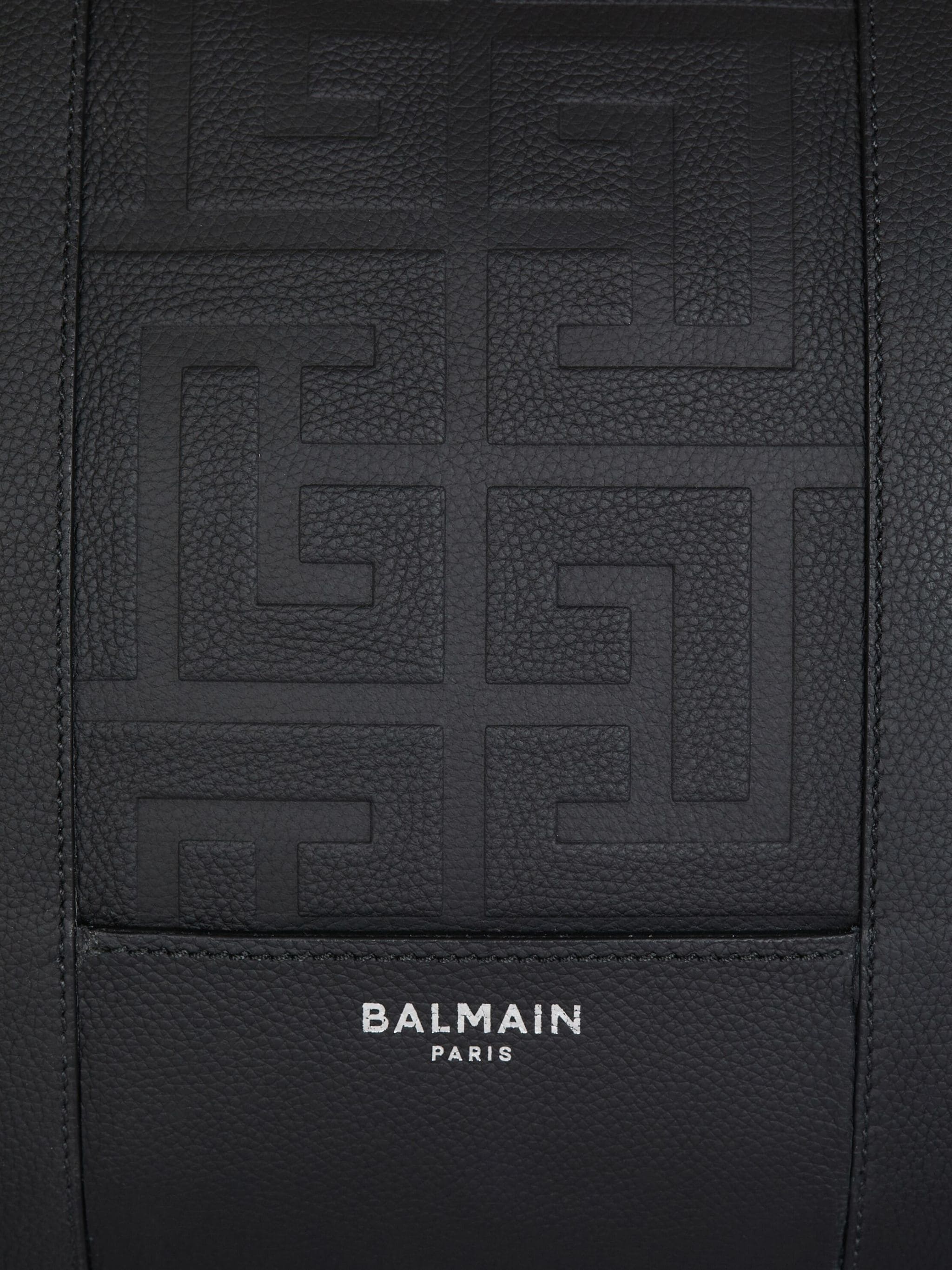 Balmain présente ce sac en cuir granulé avec un labyrinthe monogramme en relief.