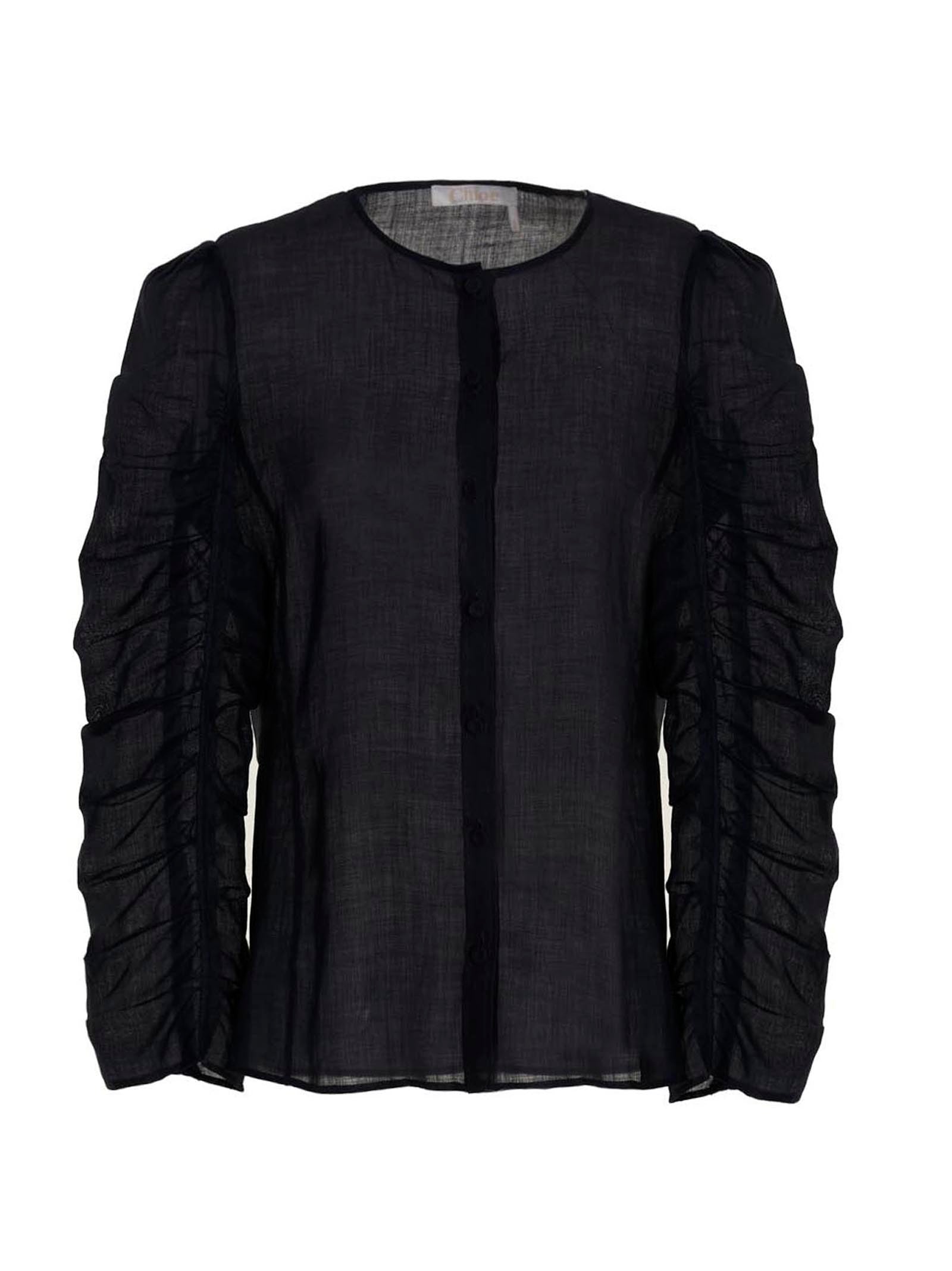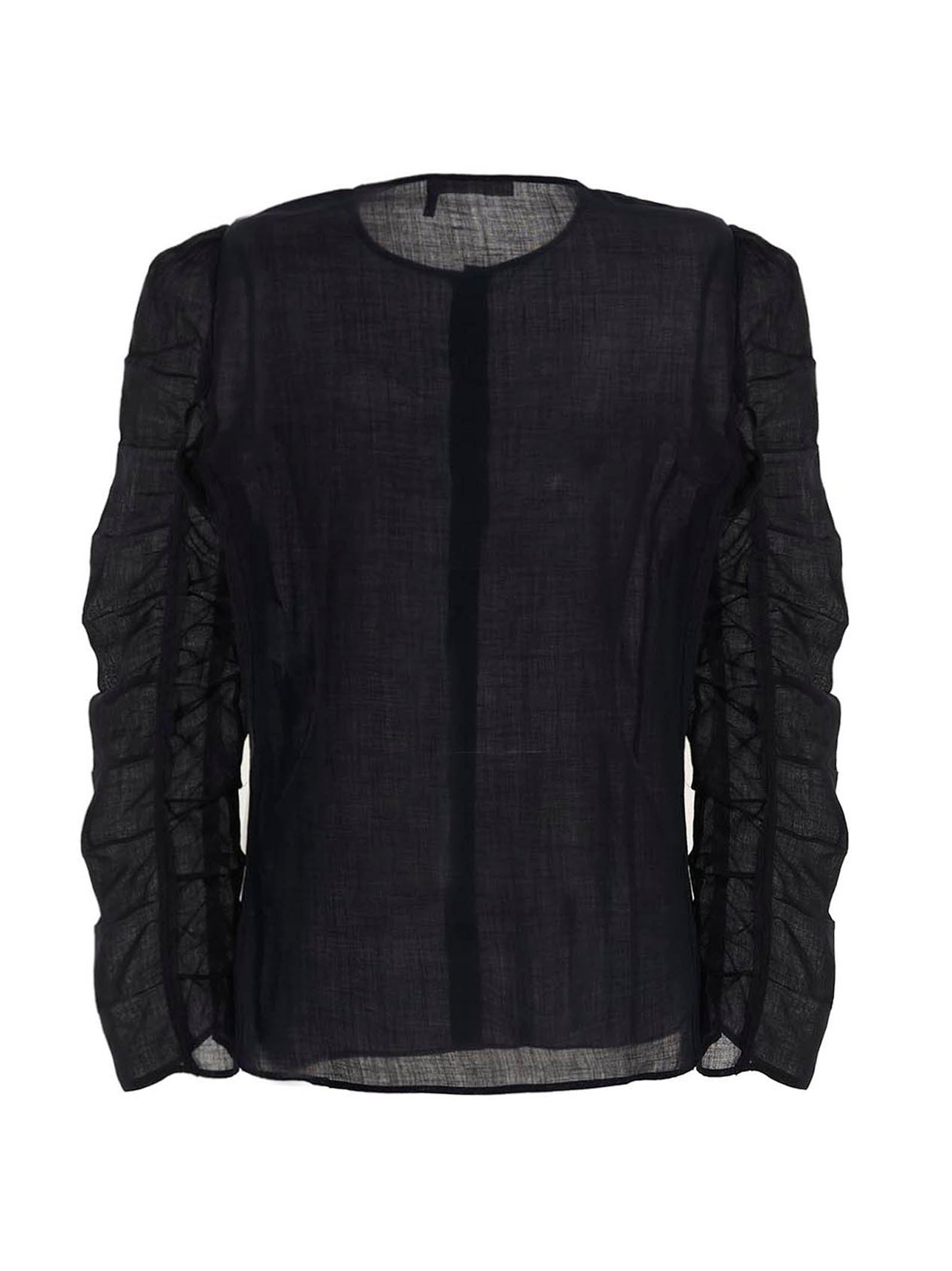 Chemisier Ramie avec manches longues, un cou d'équipage et une fermeture de bouton.