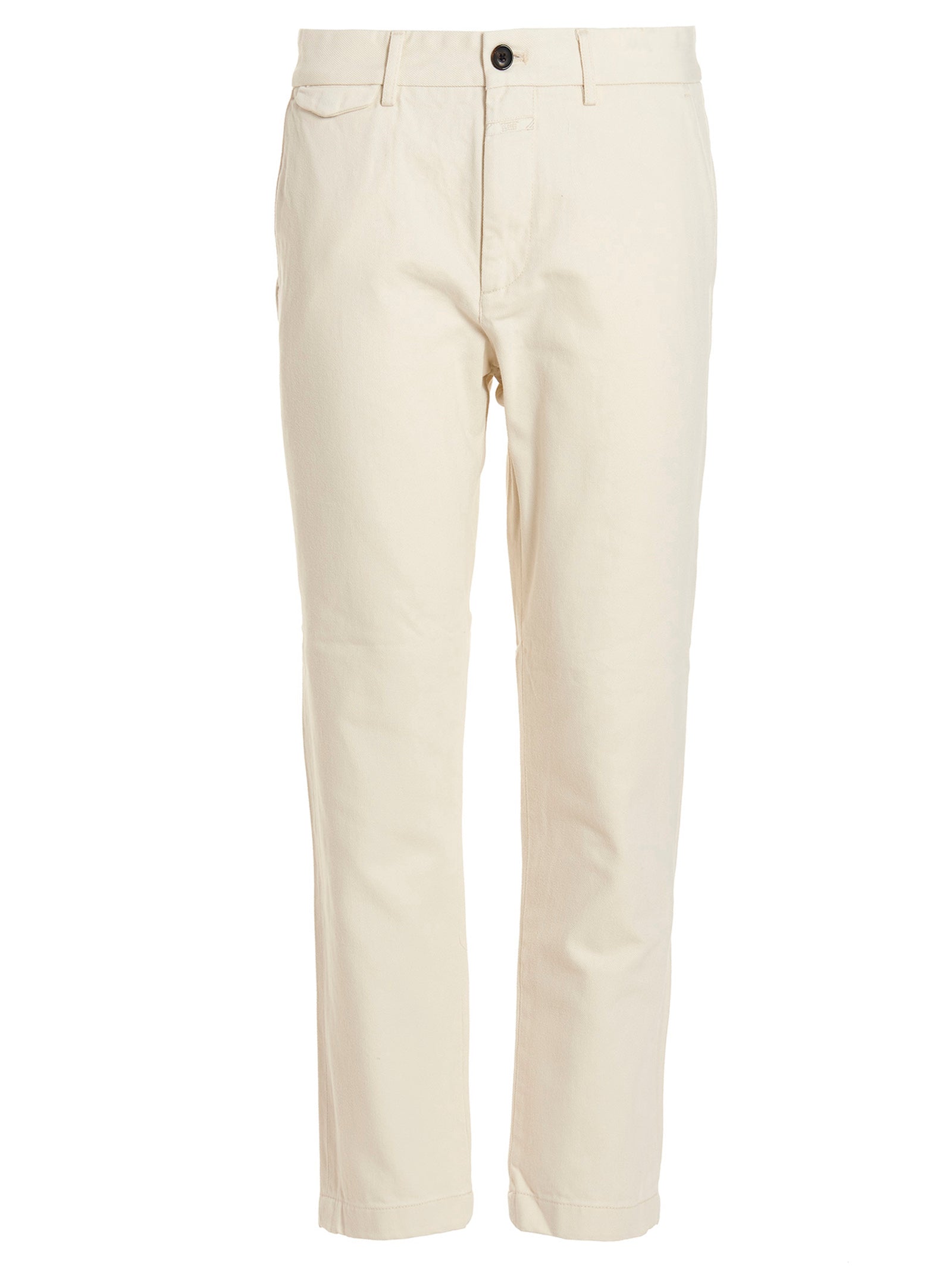 Jean en denim en coton conique à l'atelier avec fermeture éclair et bouton et poches. Julian Sustainable: Ce produit est fabriqué avec du coton biologique.