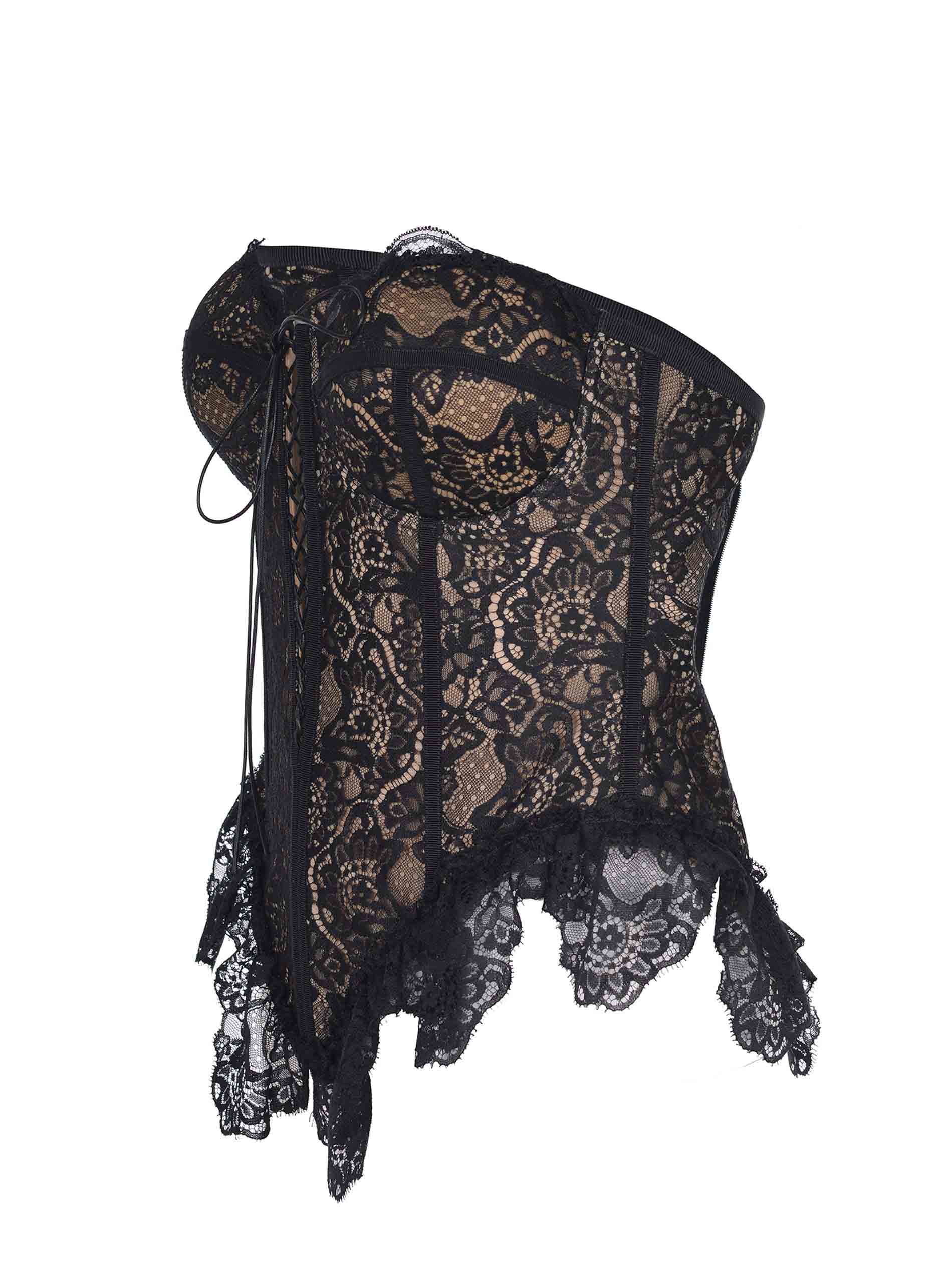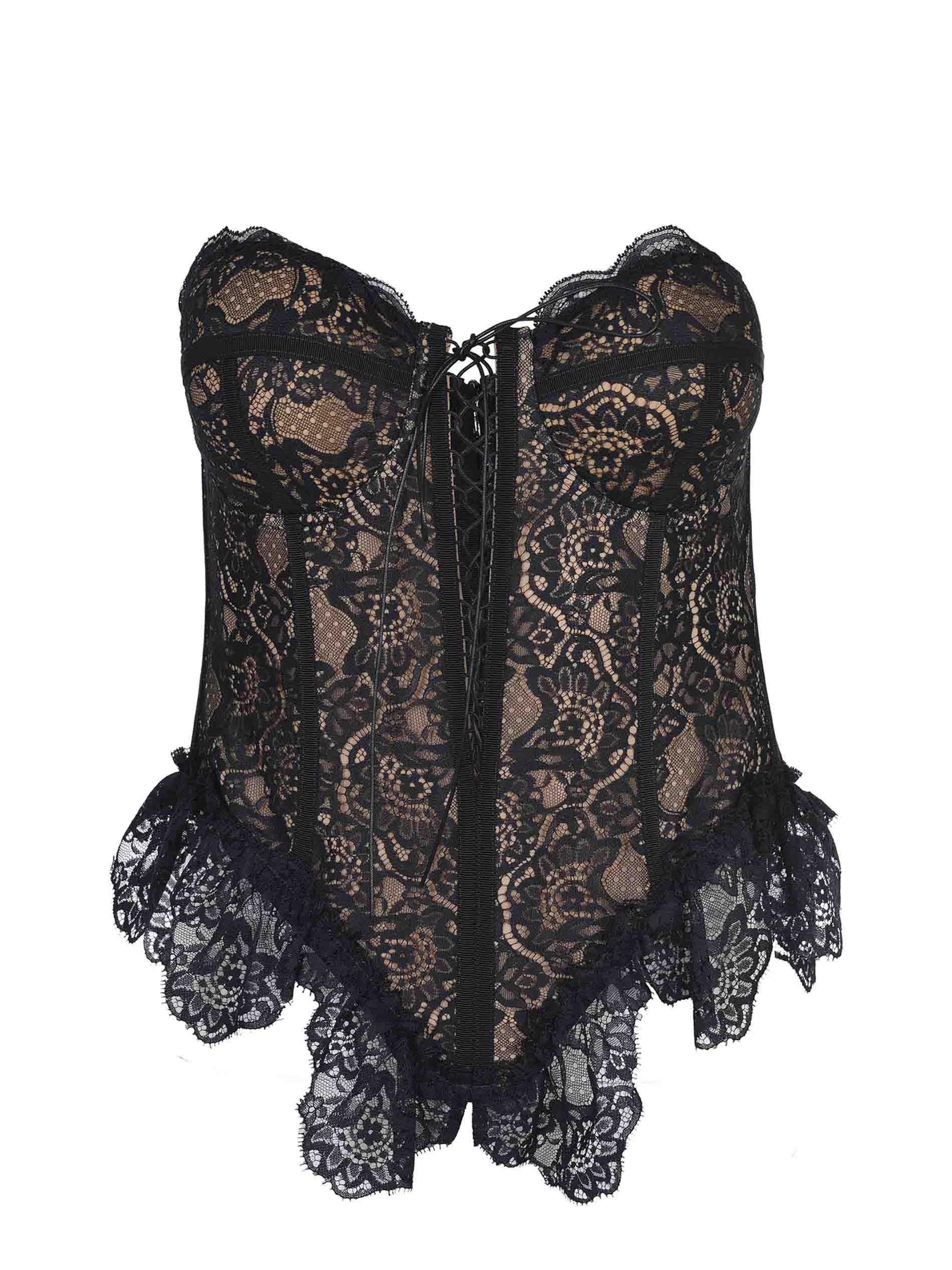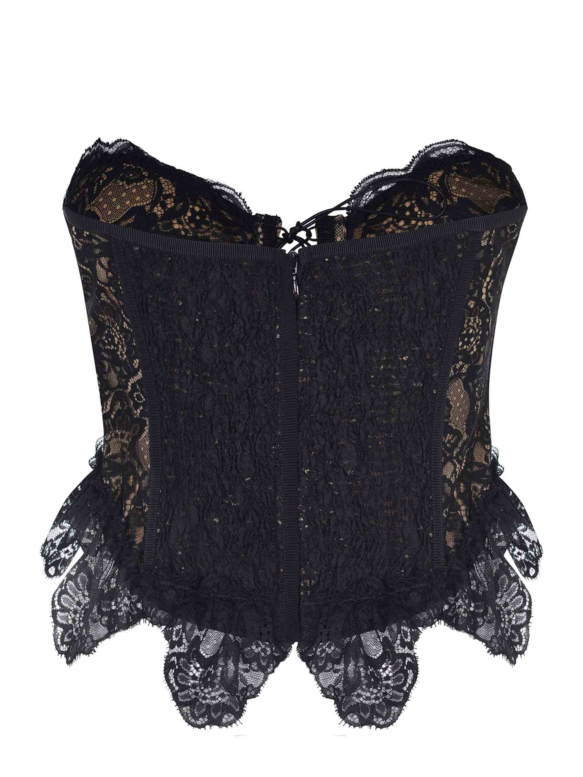 Giuseppe di Morabito Bustier en polyamide noir. Décolleté en forme de cœur. Sans manches. Entièrement en dentelle. Bottoir de chameau contrasté. Fermeture avant avec lacets croisés. Clôture avec des crochets à l'arrière. Structure interne. 100% polyamide fabriqué en Italie.