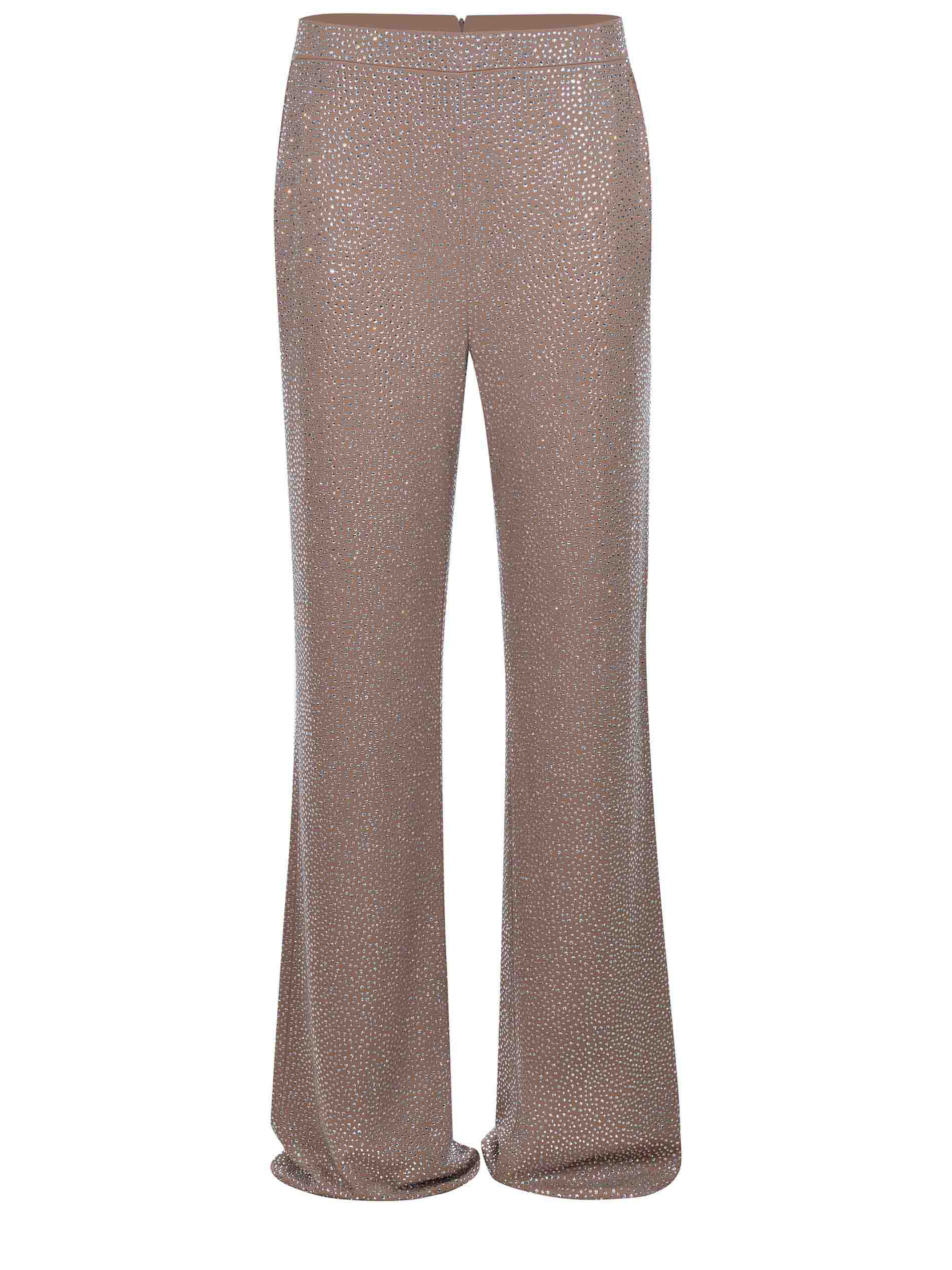 Giuseppe di Morabito pantalon en viscose de couleur chameau. Entièrement recouvert de strass d'argent. Poches latérales. Fermeture à l'arrière avec une fermeture éclair. Doublure de couleur chameau. 100% visqueux fabriqué en Italie.